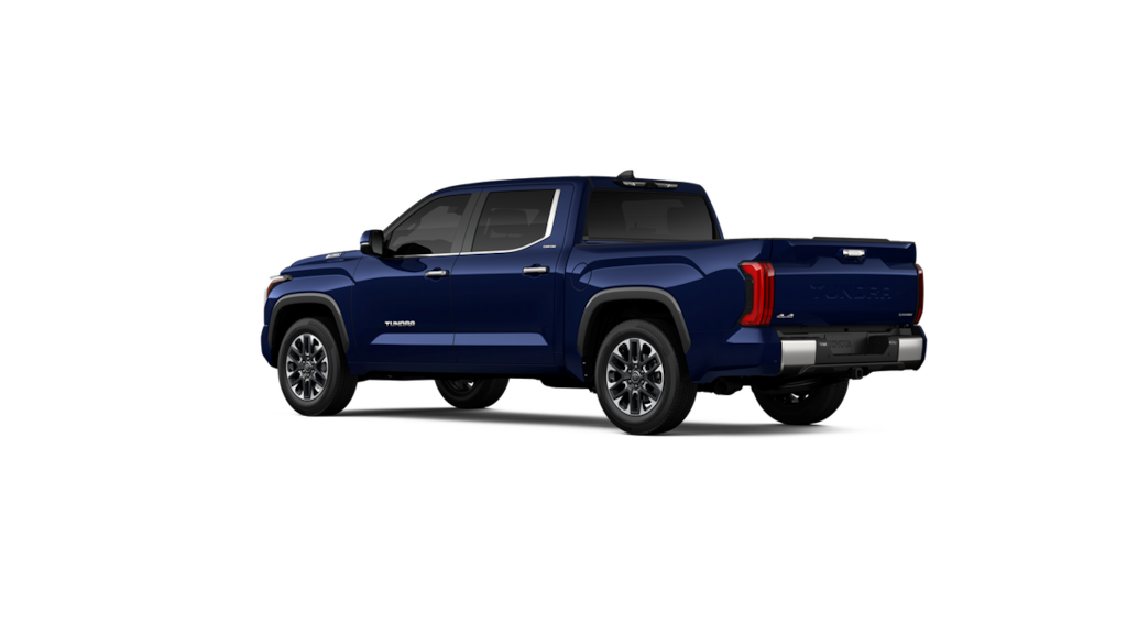 - Chrome 'TUNDRA' and 'LIMITED' door badges, door handles and window molding color-keyed mirror caps and tailgate spoiler gray-painted overfenders