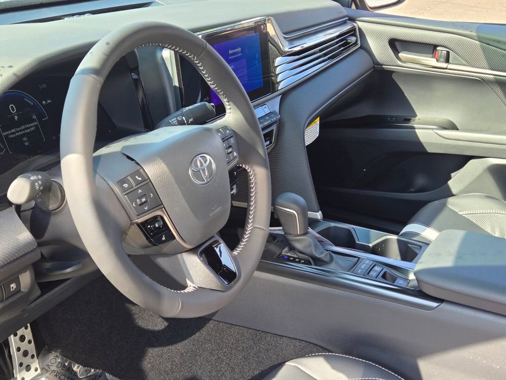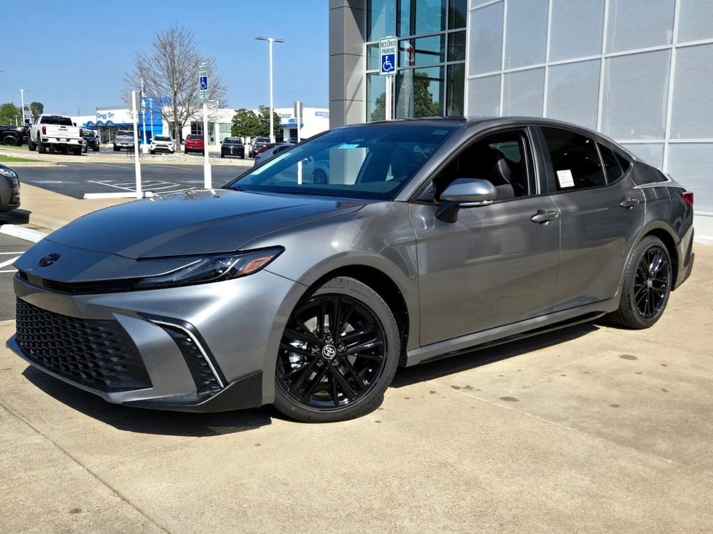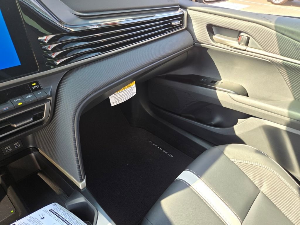 Heavy Metal This 2026 Toyota Camry comes equipped with, Blk & Fabric Artificial Leather, 4-Wheel Disc Brakes, 6 Speakers, ABS brakes, Air Conditioning, Alloy wheels, AM/FM radio: SiriusXM, Apple CarPlay/Android Auto, Auto High-beam Headlights, Automatic temperature control, Brake assist, Bumpers: body-color, Delay-off headlights, Driver door bin, Driver vanity mirror, Dual front impact airbags, Dual front side impact airbags, Electronic Stability Control, Emergency communication system: Safety Connect (5-year trial), Exterior Parking Camera Rear, Four wheel independent suspension, Front anti-roll bar, Front Bucket Seats, Front Center Armrest, Front dual zone A/C, Front reading lights, Front Seats, Fully automatic headlights, Heated door mirrors, Heated Front Seats, Illuminated entry, Knee airbag, Leather Shift Knob, Leather steering wheel, Low tire pressure warning, Occupant sensing airbag, Outside temperature display, Overhead airbag, Overhead console, Panic alarm, Passenger door bin, Passenger vanity mirror, Power door mirrors, Power driver seat, Power steering, Power windows, Radio data system, Radio: 12.3" Toyota Multimedia Audio, Radio: 8" Toyota Audio Multimedia, Rear anti-roll bar, Rear reading lights, Rear seat center armrest, Rear window defroster, Remote keyless entry, Security system, SofTex and Fabric Seat Trim, Speed control, Speed-sensing steering, Split folding rear seat, Spoiler, Steering wheel mounted audio controls, Telescoping steering wheel, Tilt steering wheel, Traction control, Trip computer, Turn signal indicator mirrors, Variably intermittent wipers, Wheels: 18" Multi-Spoke Black-Finished Alloy, Blk & Fabric Artificial Leather. 48/47 City/Highway MPG