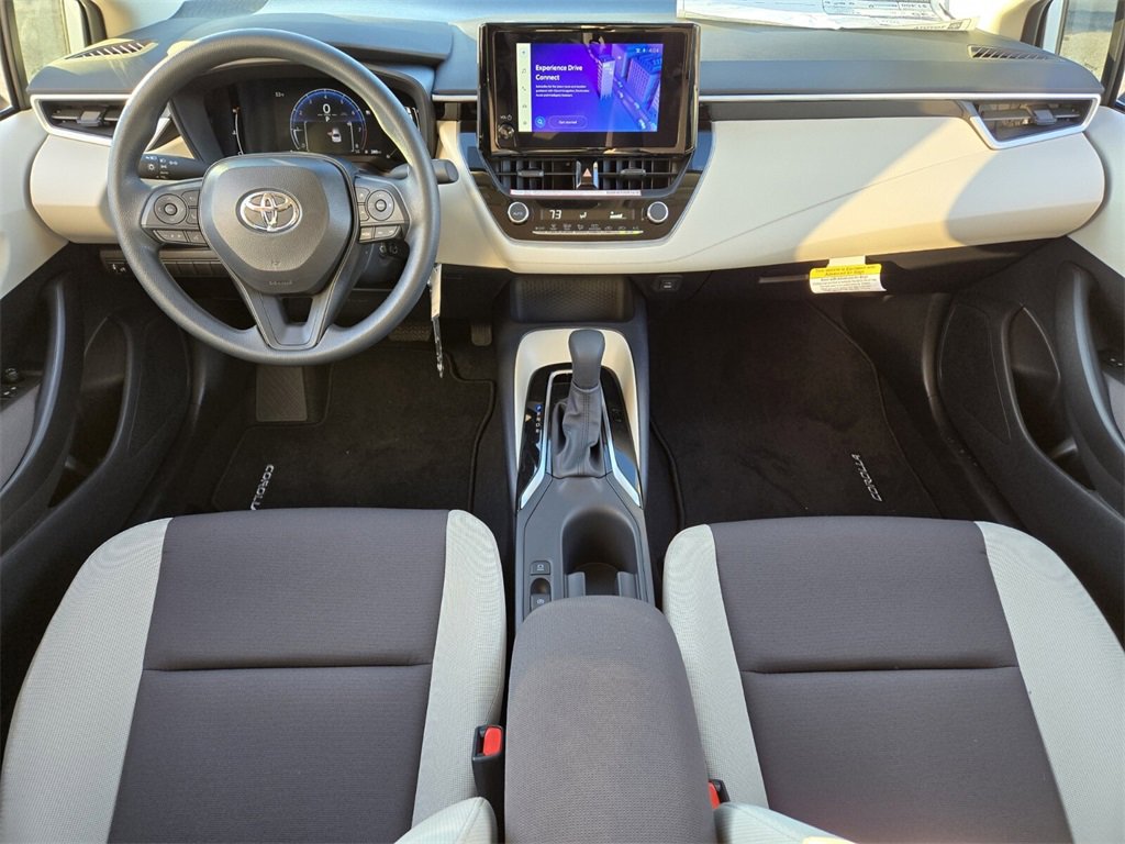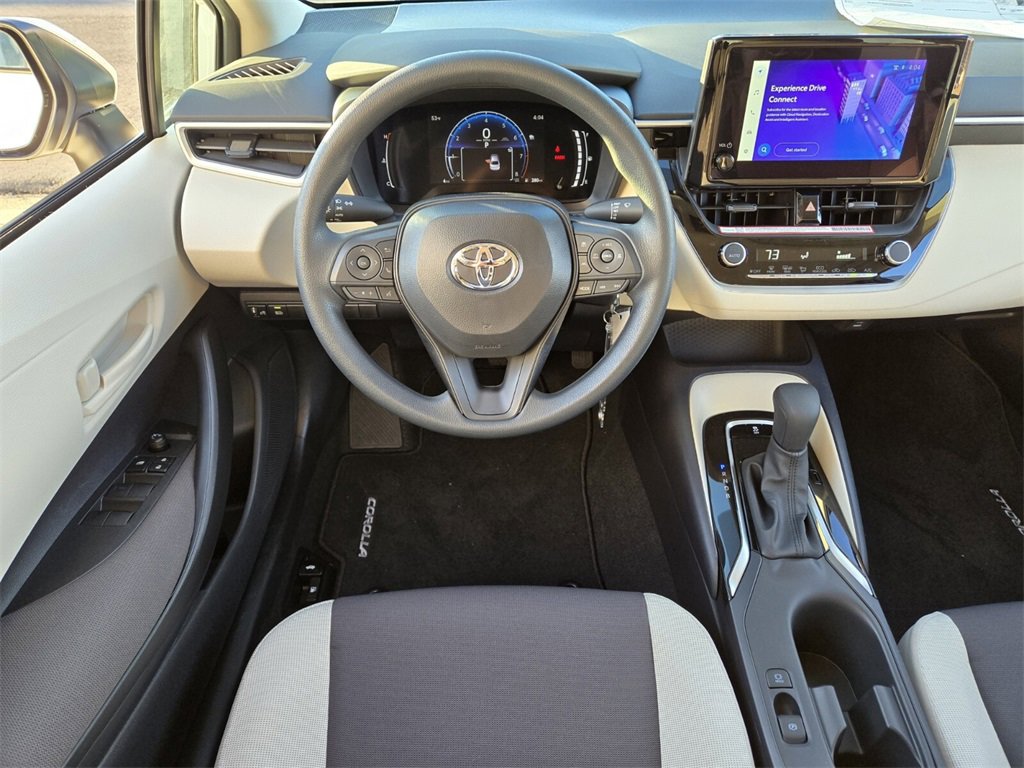 Ice This 2026 Toyota Corolla comes equipped with, 16" Steel Wheels w/Covers, 4-Wheel Disc Brakes, 6 Speakers, ABS brakes, Air Conditioning, AM/FM radio: SiriusXM, Apple CarPlay/Android Auto, Auto High-beam Headlights, Automatic temperature control, Brake assist, Bumpers: body-color, Delay-off headlights, Driver door bin, Driver vanity mirror, Dual front impact airbags, Dual front side impact airbags, Electronic Stability Control, Emergency communication system: Safety Connect (up to 10-year trial subscription), Exterior Parking Camera Rear, Fabric Seat Trim, Front anti-roll bar, Front Bucket Seats, Front Center Armrest, Front reading lights, Front wheel independent suspension, Fully automatic headlights, Heated door mirrors, Illuminated entry, Knee airbag, Low tire pressure warning, Occupant sensing airbag, Outside temperature display, Overhead airbag, Panic alarm, Passenger door bin, Passenger vanity mirror, Power door mirrors, Power steering, Power windows, Radio data system, Radio: 8" Toyota Audio Multimedia, Rear anti-roll bar, Rear seat center armrest, Rear side impact airbag, Rear window defroster, Remote keyless entry, Speed control, Split folding rear seat, Steering wheel mounted audio controls, Tachometer, Telescoping steering wheel, Tilt steering wheel, Traction control, Trip computer. 32/41 City/Highway MPG