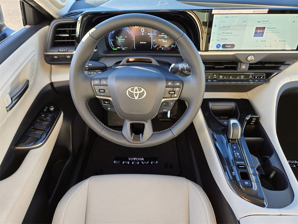 Heavy Metal This 2026 Toyota Crown comes equipped with, 11 Speakers, 4-Wheel Disc Brakes, 8-Way Adjustable Heated/Ventilated Front Seats, ABS brakes, Advanced Technology Package, Air Conditioning, Alloy wheels, AM/FM radio: SiriusXM, Apple CarPlay/Android Auto, Auto High-beam Headlights, Auto-dimming Rear-View mirror, Automatic temperature control, Bodyside moldings, Brake assist, Bumpers: body-color, Compass, Delay-off headlights, Digital Key Capability, Driver door bin, Driver vanity mirror, Dual front impact airbags, Dual front side impact airbags, Electronic Stability Control, Emergency communication system: Safety Connect (5-year minimum), Exterior Parking Camera Rear, Four wheel independent suspension, Front anti-roll bar, Front Bucket Seats, Front Center Armrest, Front Cross-Traffic Alert, Front dual zone A/C, Front reading lights, Fully automatic headlights, Garage door transmitter: HomeLink, Heated door mirrors, Heated front seats, Heated rear seats, Heated steering wheel, Illuminated entry, Knee airbag, Lane Change Assist, Leather Seat Trim, Leather Shift Knob, Leather steering wheel, Limited Package, Low tire pressure warning, Memory seat, Navigation system: Dynamic Navigation (3-year trial), Occupant sensing airbag, Outside temperature display, Overhead airbag, Overhead console, Panic alarm, Panoramic View Monitor, Passenger door bin, Passenger vanity mirror, Power door mirrors, Power driver seat, Power passenger seat, Power steering, Power windows, Radio data system, Radio: 12.3" Toyota Audio Multimedia, Rain sensing wipers, Rear anti-roll bar, Rear reading lights, Rear seat center armrest, Rear window defroster, Remote keyless entry, Security system, Speed control, Speed-sensing steering, Split folding rear seat, Steering wheel mounted audio controls, Tachometer, Telescoping steering wheel, Tilt steering wheel, Traction control, Traffic Jam Assist, Trip computer, Turn signal indicator mirrors, Variably intermittent wipers, Ventilated front seats, Wheels: 19" Multi-Spoke Machined-Finish Two-Tone Alloy, Wheels: 21" 10-Spoke Dark Metallic Alloy. 42/41 City/Highway MPG