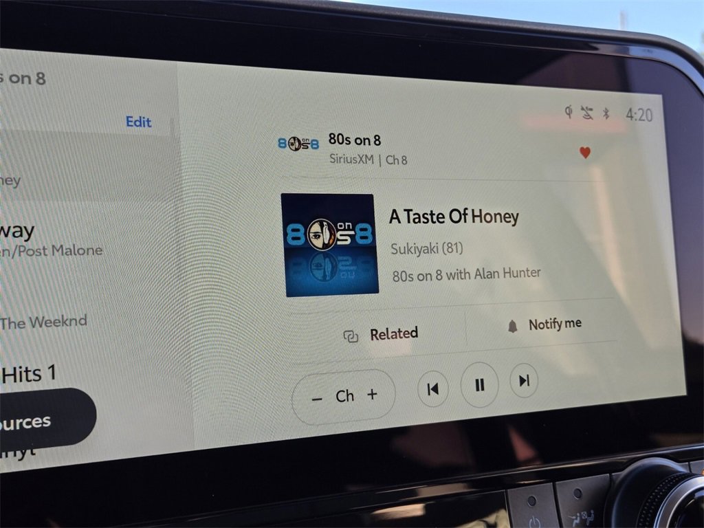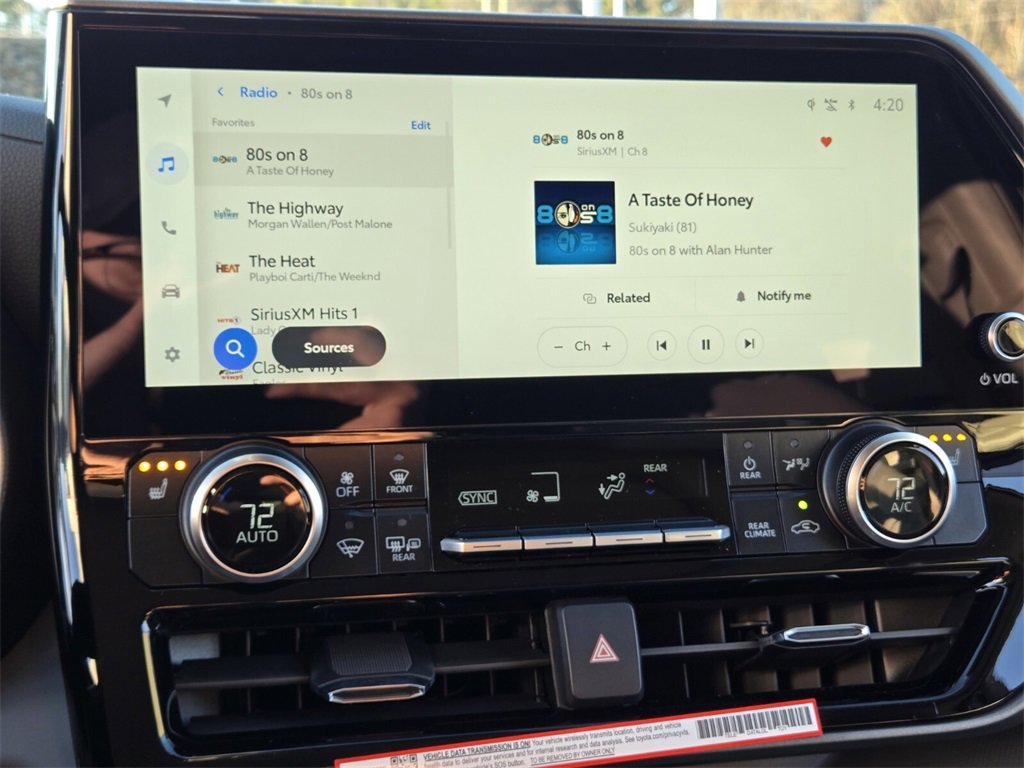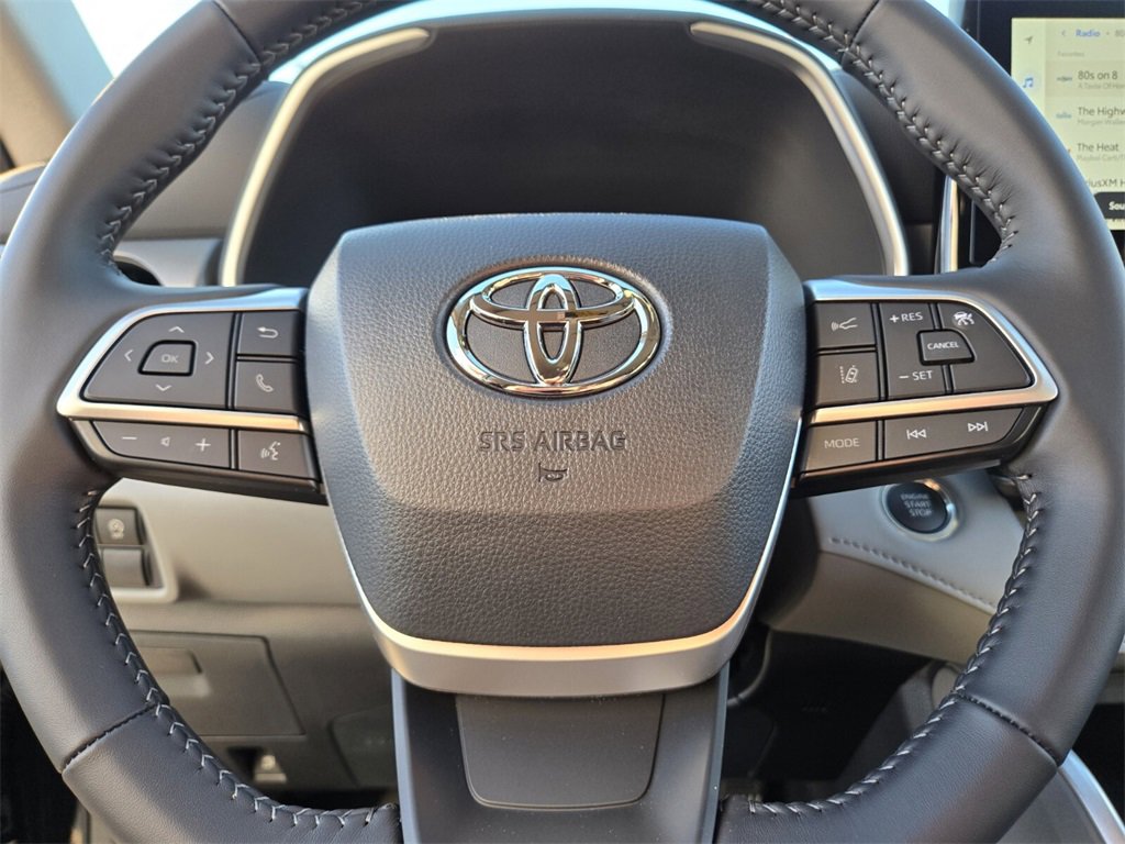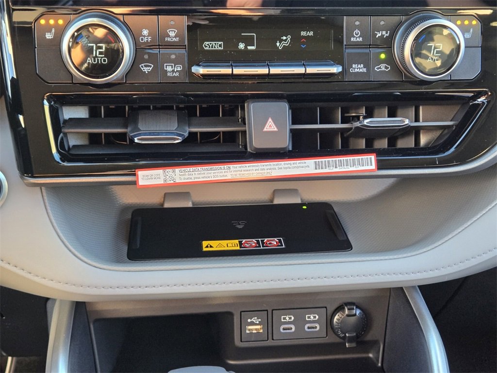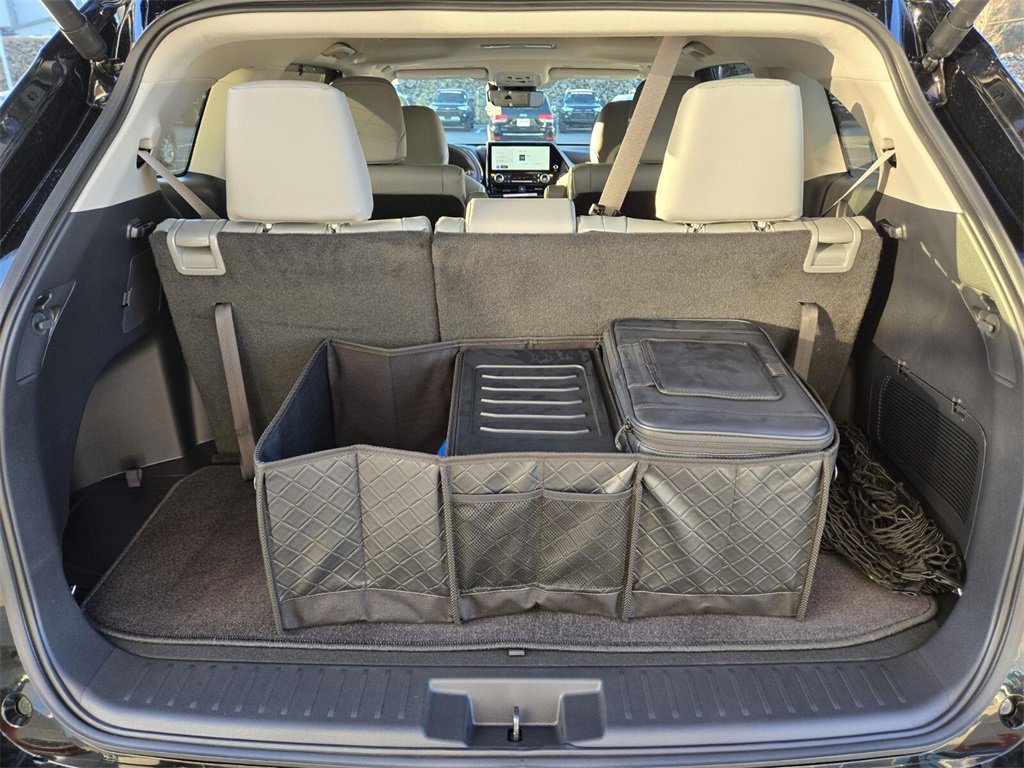 Included Features: AWD, 3rd row seats: split-bench, 4-Wheel Disc Brakes, 6 Speakers, ABS brakes, Air Conditioning, Alloy wheels, AM/FM radio: SiriusXM, Apple CarPlay/Android Auto, Auto High-beam Headlights, Auto-dimming Rear-View mirror, Automatic temperature control, Brake assist, Bumpers: body-color, Carpeted Floor Mats/Carpet Cargo Mat (TMS), Delay-off headlights, Driver door bin, Driver vanity mirror, Dual front impact airbags, Dual front side impact airbags, Electronic Stability Control, Emergency communication system: Safety Connect (up to 10-year trial subscription), Exterior Parking Camera Rear, Four wheel independent suspension, Front anti-roll bar, Front Bucket Seats, Front Center Armrest, Front dual zone A/C, Front fog lights, Front reading lights, Fully automatic headlights, Garage door transmitter: HomeLink, Heated door mirrors, Heated Front Bucket Seats, Heated front seats, Illuminated entry, Knee airbag, Leather Shift Knob, Leather steering wheel, Low tire pressure warning, Occupant sensing airbag, Outside temperature display, Overhead airbag, Overhead console, Panic alarm, Passenger door bin, Passenger vanity mirror, Power door mirrors, Power driver seat, Power Liftgate, Power moonroof, Power passenger seat, Power steering, Power windows, Radio: 12.3" Toyota Audio Multimedia, Radio: 8" Toyota Audio Multimedia, Rear air conditioning, Rear anti-roll bar, Rear reading lights, Rear window defroster, Rear window wiper, Reclining 3rd row seat, Remote keyless entry, Security system, SofTex Seat Trim, Speed control, Speed-sensing steering, Split folding rear seat, Spoiler, Steering wheel mounted audio controls, Tachometer, Telescoping steering wheel, Tilt steering wheel, Traction control, Trip computer, Turn signal indicator mirrors, Variably intermittent wipers, and Wheels: 18" Machined-Finish Alloy.