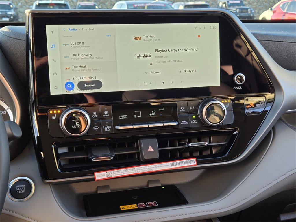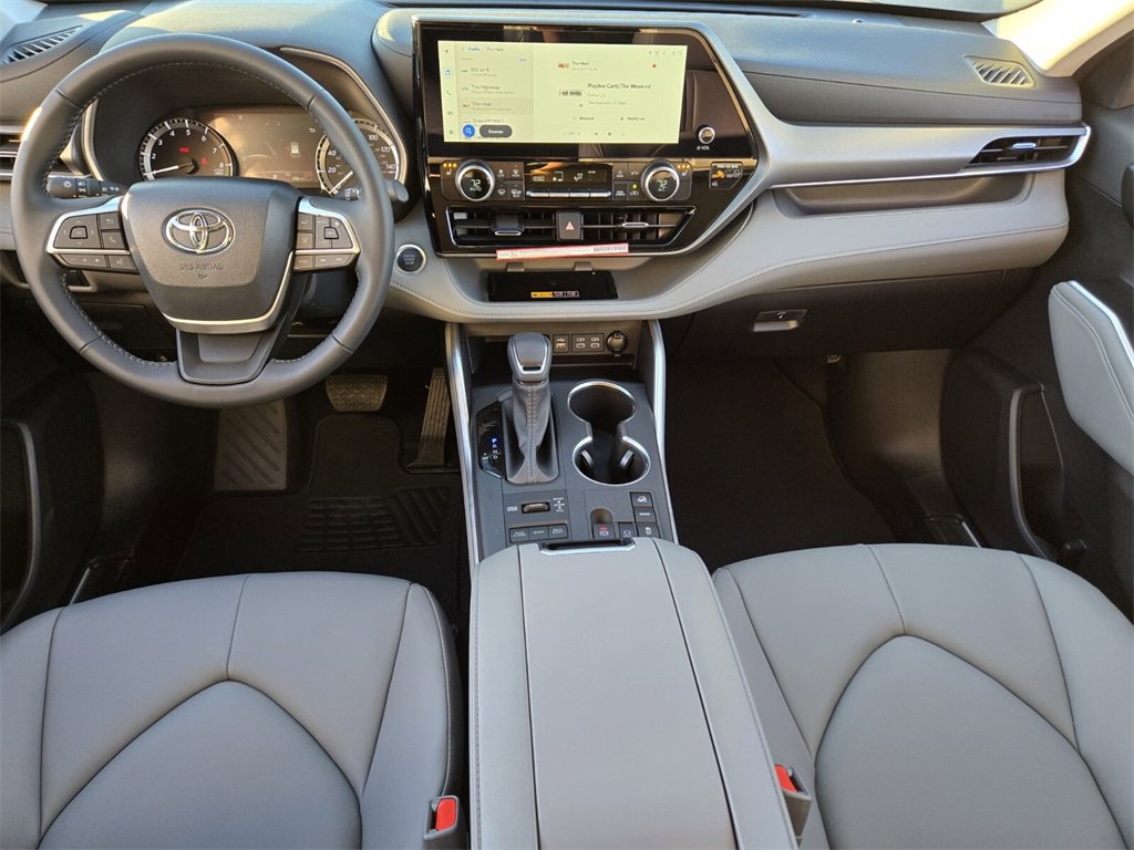 Black This 2026 Toyota Highlander comes equipped with, AWD, 3rd row seats: split-bench, 4-Wheel Disc Brakes, 6 Speakers, ABS brakes, Air Conditioning, Alloy wheels, AM/FM radio: SiriusXM, Apple CarPlay/Android Auto, Auto High-beam Headlights, Auto-dimming Rear-View mirror, Automatic temperature control, Brake assist, Bumpers: body-color, Carpeted Floor Mats/Carpet Cargo Mat (TMS), Delay-off headlights, Driver door bin, Driver vanity mirror, Dual front impact airbags, Dual front side impact airbags, Electronic Stability Control, Emergency communication system: Safety Connect (up to 10-year trial subscription), Exterior Parking Camera Rear, Four wheel independent suspension, Front anti-roll bar, Front Bucket Seats, Front Center Armrest, Front dual zone A/C, Front fog lights, Front reading lights, Fully automatic headlights, Garage door transmitter: HomeLink, Heated door mirrors, Heated Front Bucket Seats, Heated front seats, Illuminated entry, Knee airbag, Leather Shift Knob, Leather steering wheel, Low tire pressure warning, Occupant sensing airbag, Outside temperature display, Overhead airbag, Overhead console, Panic alarm, Passenger door bin, Passenger vanity mirror, Power door mirrors, Power driver seat, Power Liftgate, Power moonroof, Power passenger seat, Power steering, Power windows, Radio: 12.3" Toyota Audio Multimedia, Radio: 8" Toyota Audio Multimedia, Rear air conditioning, Rear anti-roll bar, Rear reading lights, Rear window defroster, Rear window wiper, Reclining 3rd row seat, Remote keyless entry, Security system, SofTex Seat Trim, Speed control, Speed-sensing steering, Split folding rear seat, Spoiler, Steering wheel mounted audio controls, Tachometer, Telescoping steering wheel, Tilt steering wheel, Traction control, Trip computer, Turn signal indicator mirrors, Variably intermittent wipers, Wheels: 18" Machined-Finish Alloy, AWD. 21/28 City/Highway MPG