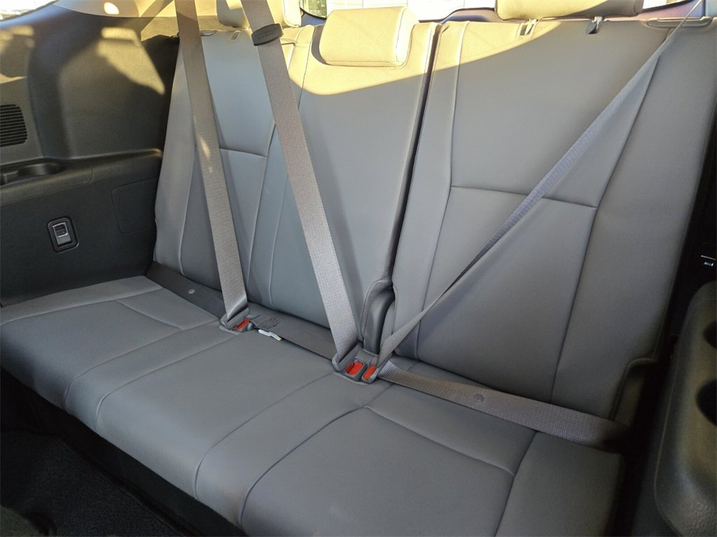 - 7-passenger seating with second-row fold-down captain's chairs and fold-down inboard armrests, adjustable headrests and two cup holders mounted on the floor and 60/40 split, fold-flat third-row seats with sliding headrests and recline function