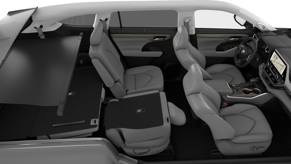 - 7-passenger seating with second-row fold-down captain's chairs and fold-down inboard armrests, adjustable headrests and two cup holders mounted on the floor and 60/40 split, fold-flat third-row seats with sliding headrests and recline function