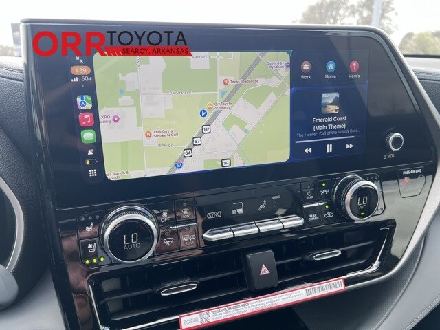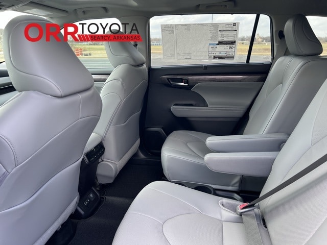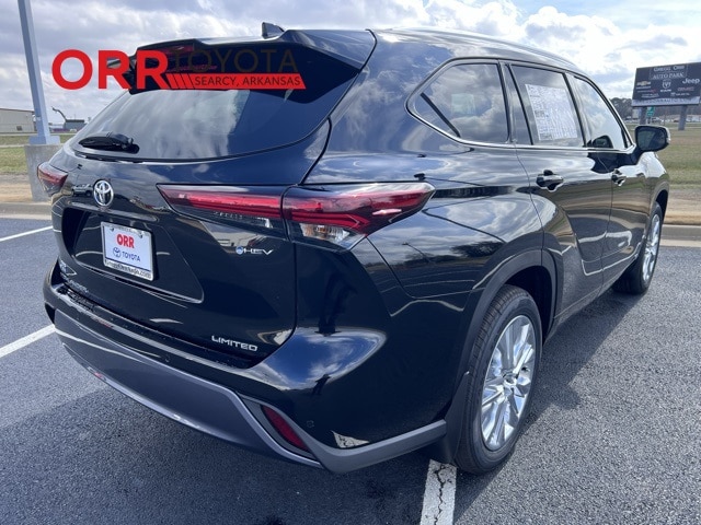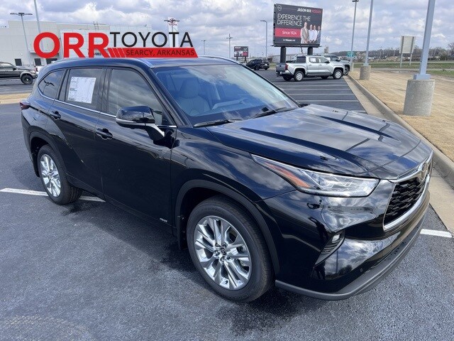 Black 2026 Toyota Highlander Hybrid Limited AWD CVT 2.5L I4 PDI Hybrid DOHC 16V LEV3-SULEV30 This Highlander Hybrid Limited is nicely equipped with 2.5L I4 PDI Hybrid DOHC 16V LEV3-SULEV30, 11 Speakers, 3rd row seats: split-bench, 4-Wheel Disc Brakes, ABS brakes, Air Conditioning, Alloy wheels, AM/FM radio: SiriusXM, Apple CarPlay/Android Auto, Auto High-beam Headlights, Auto-dimming Rear-View mirror, Automatic temperature control, Brake assist, Bumpers: body-color, Chrome wheels, Delay-off headlights, Driver door bin, Driver vanity mirror, Dual front impact airbags, Dual front side impact airbags, Electronic Stability Control, Emergency communication system: Safety Connect (up to 10-year trial subscription), Exterior Parking Camera Rear, Four wheel independent suspension, Front anti-roll bar, Front Bucket Seats, Front Center Armrest, Front dual zone A/C, Front fog lights, Front reading lights, Fully automatic headlights, Garage door transmitter: HomeLink, Heated and Ventilated Front Bucket Seats, Heated door mirrors, Heated front seats, Heated steering wheel, Illuminated entry, Knee airbag, Leather Seat Trim, Leather Shift Knob, Leather steering wheel, Low tire pressure warning, Memory seat, Navigation system: Drive Connect Cloud Navigation (1-year trial subscription), Occupant sensing airbag, Outside temperature display, Overhead airbag, Overhead console, Panic alarm, Panoramic View Monitor, Passenger door bin, Passenger vanity mirror, Power door mirrors, Power driver seat, Power Liftgate, Power moonroof, Power passenger seat, Power steering, Power windows, Radio: 12.3" Toyota Audio Multimedia with JBL Premium Audio, Rear air conditioning, Rear anti-roll bar, Rear reading lights, Rear window defroster, Rear window wiper, Reclining 3rd row seat, Remote keyless entry, Security system, Speed control, Speed-sensing steering, Split folding rear seat, Spoiler, Steering wheel mounted audio controls, Telescoping steering wheel, Tilt steering wheel, Traction control, Trip computer, Turn signal indicator mirrors, Variably intermittent wipers, Ventilated front seats, and Wheels: 20" Chrome-Finished Alloy. 2.5L I4 PDI Hybrid DOHC 16V LEV3-SULEV30.