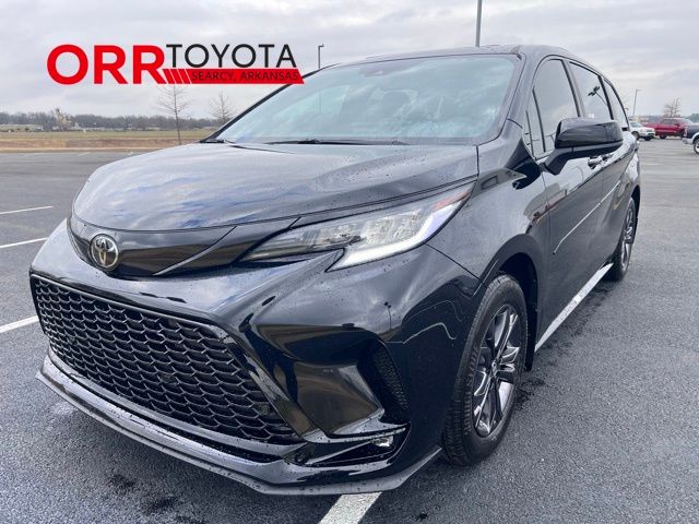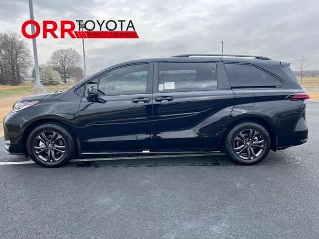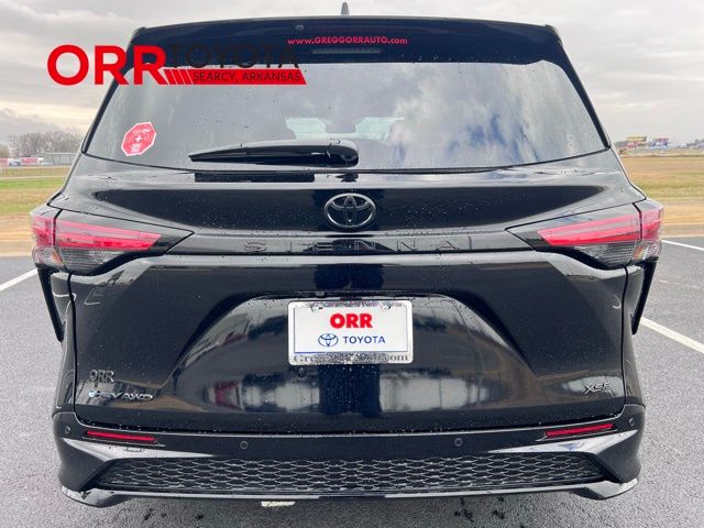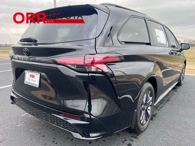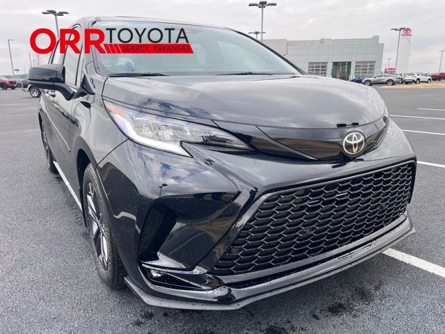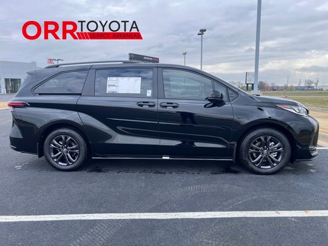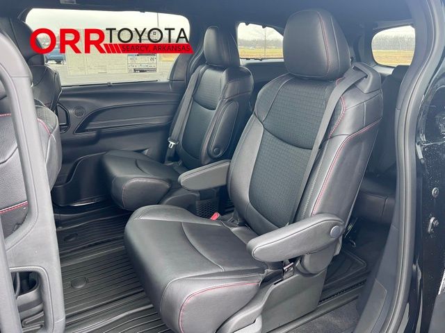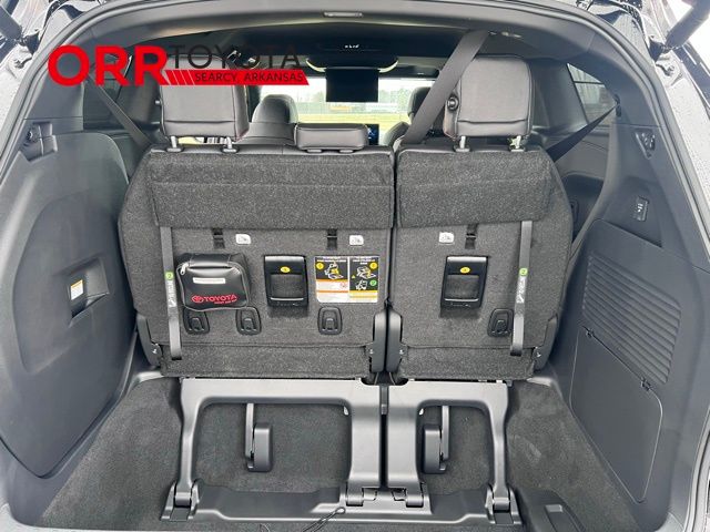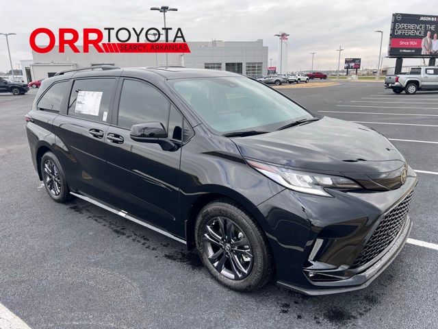 Black 2026 Toyota Sienna XSE 7 Passenger AWD CVT 2.5L I4 This Sienna XSE is nicely equipped with AWD, 12 Speakers, 1500 Watt Inverter Output, 3rd row seats: split-bench, 4-Wheel Disc Brakes, ABS brakes, Air Conditioning, Alloy wheels, AM/FM radio: SiriusXM, Apple CarPlay/Android Auto, Auto High-beam Headlights, Auto-dimming door mirrors, Auto-dimming Rear-View mirror, Automatic temperature control, Brake assist, Bumpers: body-color, Compass, Delay-off headlights, Driver door bin, Driver vanity mirror, Driver's Seat Mounted Armrest, Dual front impact airbags, Dual front side impact airbags, Electronic Stability Control, Emergency communication system: Safety Connect (3-year trial), Exterior Parking Camera Rear, Four wheel independent suspension, Front anti-roll bar, Front Bucket Seats, Front dual zone A/C, Front fog lights, Front Heated Bucket Seats, Front reading lights, Fully automatic headlights, Garage door transmitter: HomeLink, Heated door mirrors, Heated front seats, Illuminated entry, Knee airbag, Lane Departure Warning System, Leather Shift Knob, Leather steering wheel, Low tire pressure warning, Navigation System, Occupant sensing airbag, Outside temperature display, Overhead airbag, Overhead console, Panic alarm, Passenger door bin, Passenger seat mounted armrest, Passenger vanity mirror, Power door mirrors, Power driver seat, Power Liftgate, Power moonroof, Power passenger seat, Power steering, Power windows, Radio data system, Radio: Toyota JBL Audio Multimedia System, Rear air conditioning, Rear anti-roll bar, Rear dual zone A/C, Rear reading lights, Rear side impact airbag, Rear window defroster, Rear window wiper, Rear-Seat Entertainment, Reclining 3rd row seat, Remote keyless entry, SofTex Seat Trim, Speed control, Speed-sensing steering, Split folding rear seat, Spoiler, Steering wheel mounted audio controls, Tachometer, TBD Axle Ratio, Telescoping steering wheel, Tilt steering wheel, Traction control, Trip computer, Turn signal indicator mirrors, Variably intermittent wipers, and Wheels: 18" Dark Alloy. AWD.