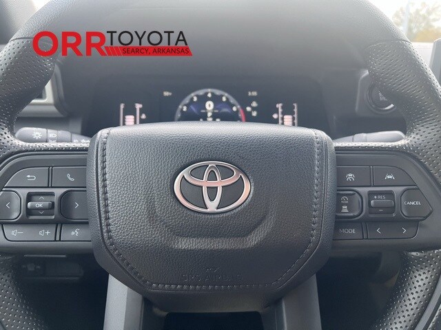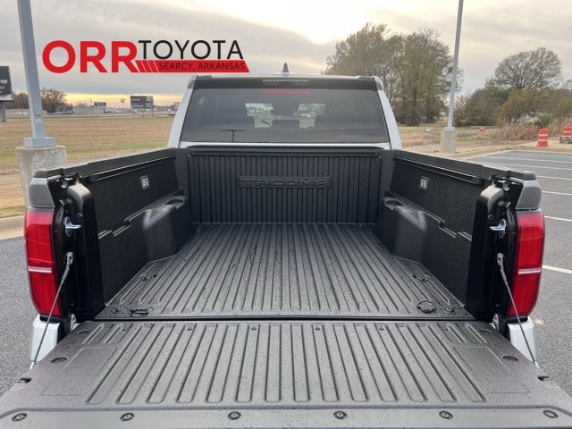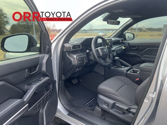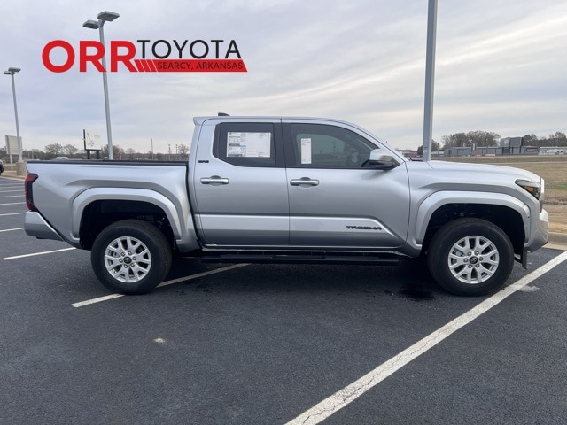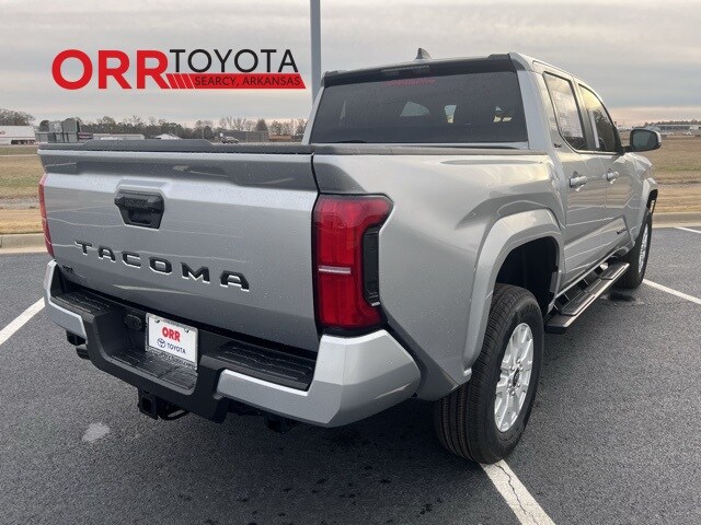 Silver 2026 Toyota Tacoma SR5 RWD 8-Speed Automatic 2.4L 4-Cylinder This Tacoma SR5 is nicely equipped with 3.583 Axle Ratio, 4-Wheel Disc Brakes, 6 Speakers, ABS brakes, Air Conditioning, Alloy wheels, AM/FM radio: SiriusXM, Anti-whiplash front head restraints, Apple CarPlay/Android Auto, Auto High-beam Headlights, Auto-dimming Rear-View mirror, Bed Front and Side Molle Panels, Brake assist, Bumpers: body-color, Carpeted Floor Mats, Driver door bin, Dual front impact airbags, Dual front side impact airbags, Electronic Stability Control, Emergency communication system: Safety Connect (up to 10-year trial subscription), Exterior Parking Camera Rear, Fabric Seat Trim, Four wheel independent suspension, Front anti-roll bar, Front Bucket Seats, Front Center Armrest, Front fog lights, Front reading lights, Fully automatic headlights, Heated door mirrors, Illuminated entry, Knee airbag, Low tire pressure warning, Occupant sensing airbag, Outside temperature display, Overhead airbag, Overhead console, Panic alarm, Passenger door bin, Power door mirrors, Power steering, Power windows, Radio: 8" Toyota Audio Multimedia, Rear step bumper, Rear window defroster, Remote keyless entry, Speed control, Speed-sensing steering, Split folding rear seat, Spray-on Bed Liner, Steering wheel mounted audio controls, Tachometer, Telescoping steering wheel, Tilt steering wheel, Traction control, Trip computer, Variably intermittent wipers, and Wheels: 17" Styled Alloy.