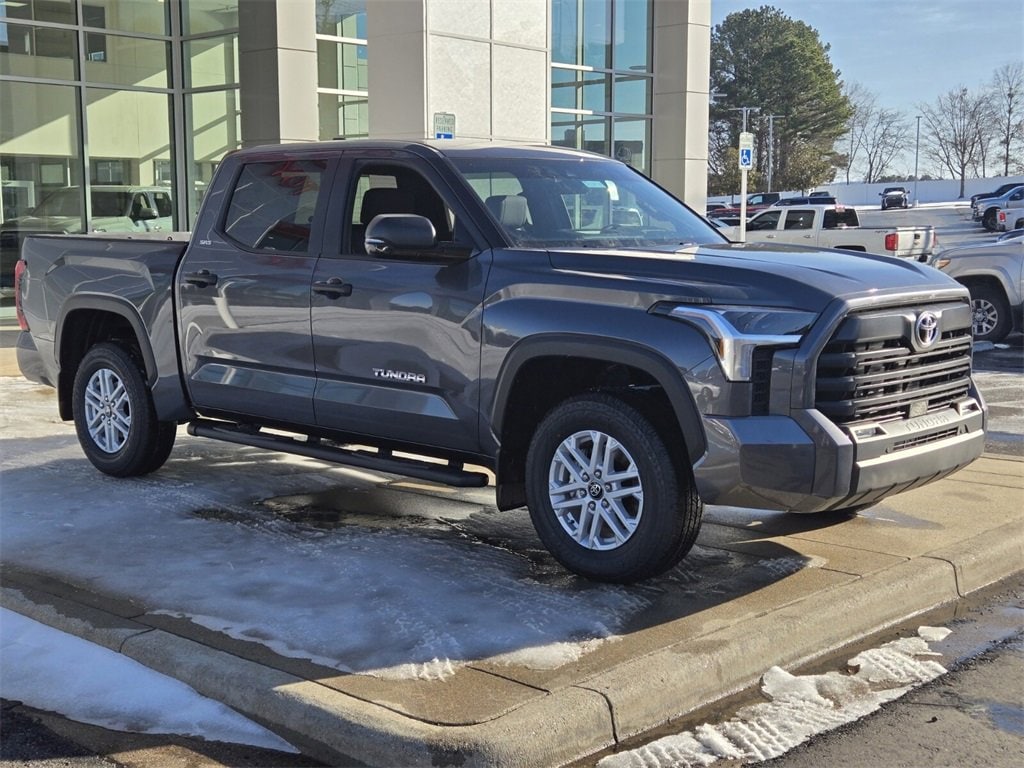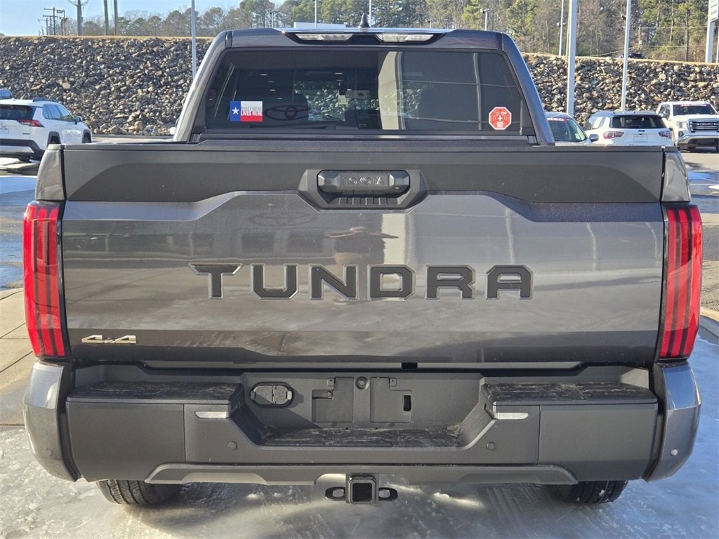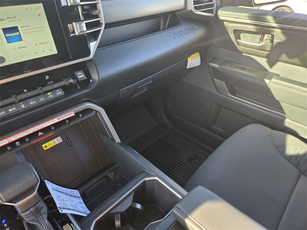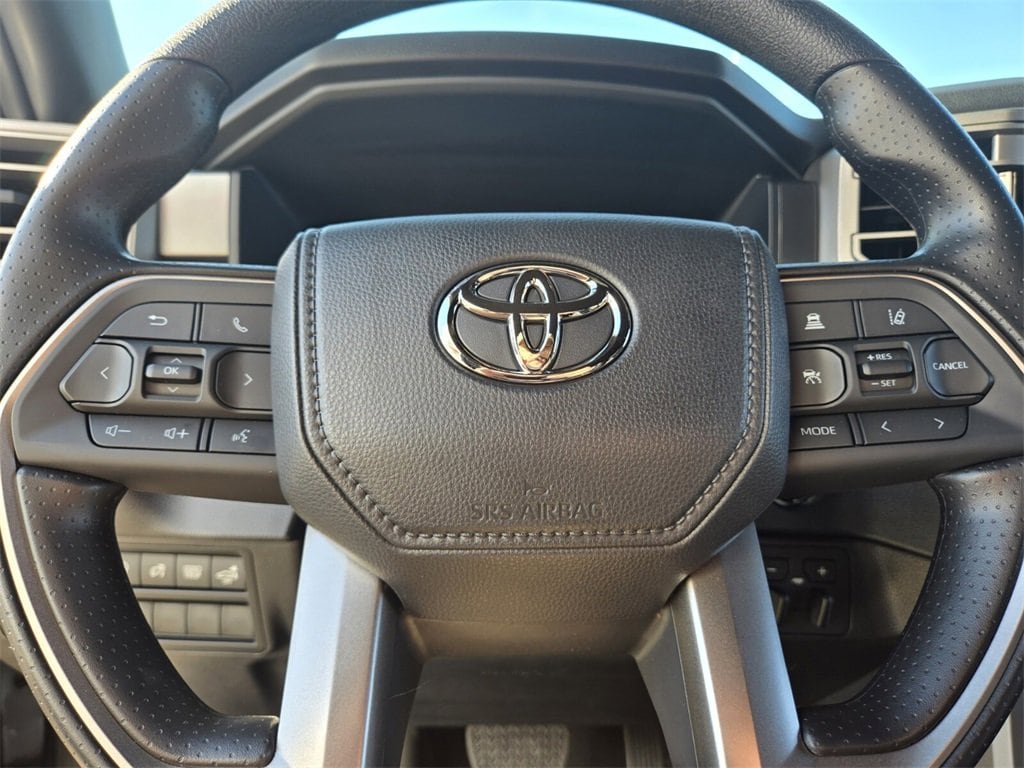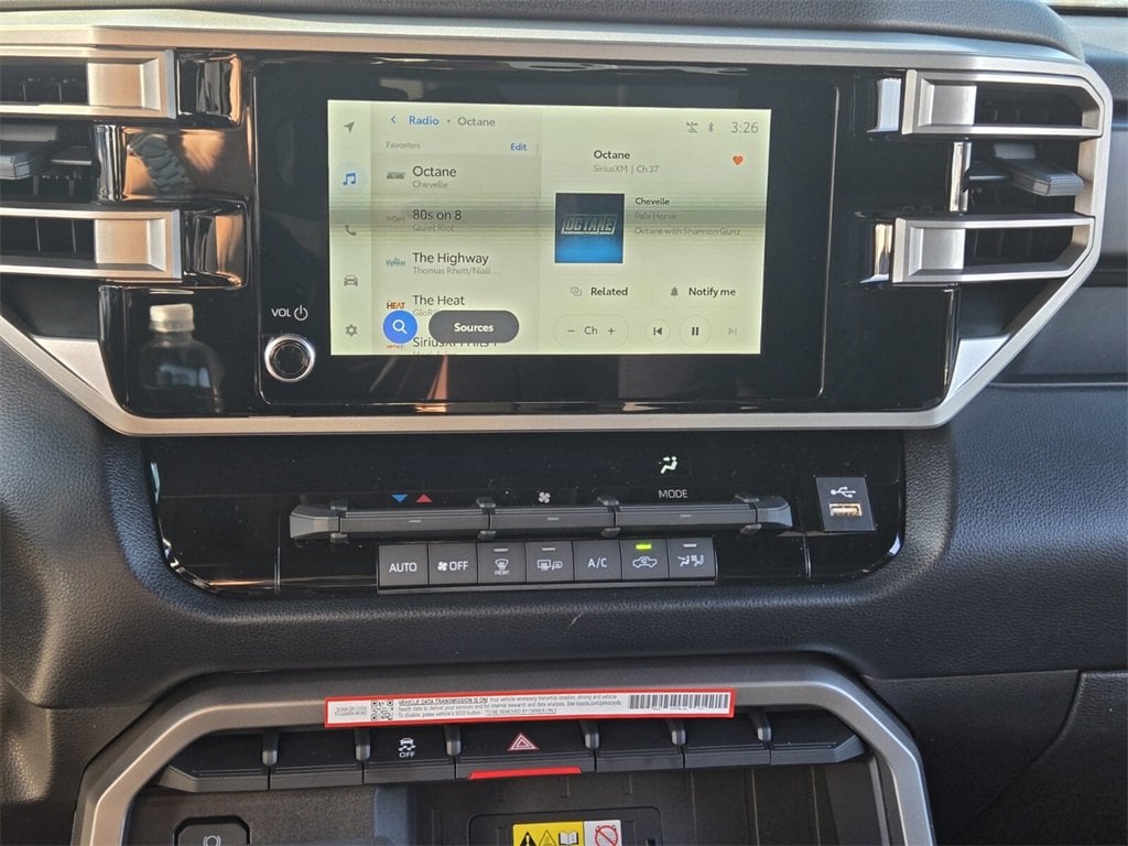 Gray This 2026 Toyota Tundra comes equipped with, 4WD, 21, 18" Alloy Wheels, 3.31 Axle Ratio, 4-Way Manual Front Seats, 4-Wheel Disc Brakes, 9 Speakers, ABS brakes, Air Conditioning, Alloy wheels, AM/FM radio: SiriusXM, Apple CarPlay/Android Auto, Auto High-beam Headlights, Automatic temperature control, Blind Spot Monitor, Blind Spot Monitor with Lane Change Assist, Brake assist, Bumpers: body-color, Delay-off headlights, Driver door bin, Driver vanity mirror, Dual front impact airbags, Dual front side impact airbags, Electronic Stability Control, Emergency communication system: Safety Connect (up to 10-year trial subscription), Exterior Parking Camera Rear, Fabric Seat Trim (FB), Front anti-roll bar, Front Bucket Seats, Front Center Armrest, Front fog lights, Front reading lights, Front wheel independent suspension, Fully automatic headlights, Heated door mirrors, Heated Power Black Outside Mirrors, Illuminated entry, Knee airbag, Leather Seat Trim, Low tire pressure warning, Occupant sensing airbag, Outside temperature display, Overhead airbag, Overhead console, Panic alarm, Parking Support Alert/Brake, Passenger door bin, Passenger vanity mirror, Power door mirrors, Power driver seat, Power steering, Power windows, Radio data system, Radio: Audio Multimedia System, Radio: Audio Plus, Rear reading lights, Rear step bumper, Rear window defroster, Remote keyless entry, Safety Connect, Security system, Speed control, Speed-sensing steering, Split folding rear seat, SR5 Convenience Package, Steering wheel mounted audio controls, Tachometer, Telescoping steering wheel, Tilt steering wheel, Traction control, Trip computer, Variably intermittent wipers, Voltmeter, 4WD, 21.