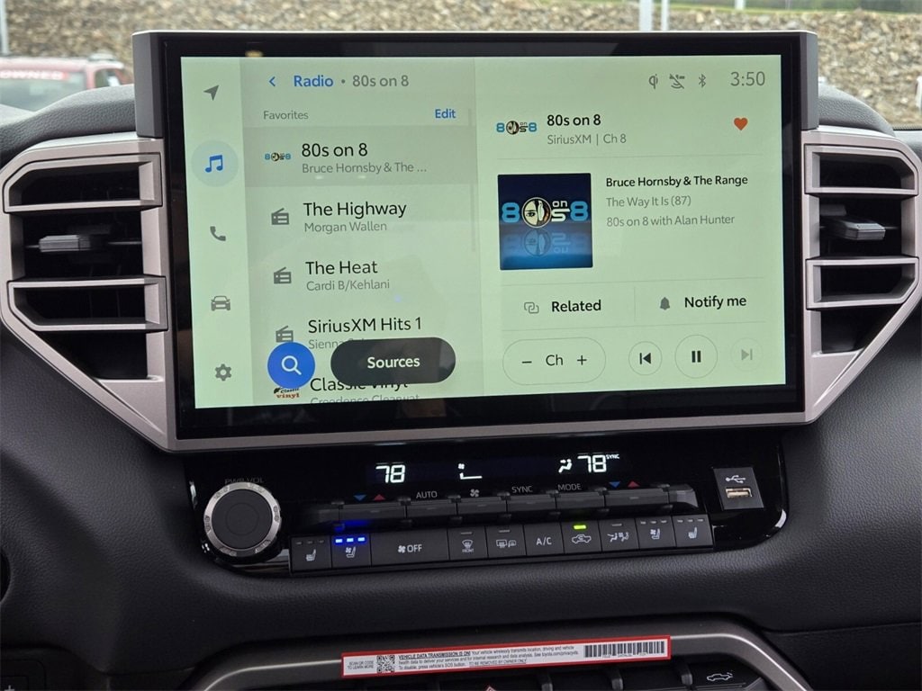 Lunar This 2026 Toyota Tundra comes equipped with, 21 Leather, 12 JBL Speakers, 20" x 8J Alloy Wheels, 3.31 Axle Ratio, 4-Wheel Disc Brakes, 400W/120V AC Deck and Cabin Power Supply, 9 Speakers, ABS brakes, Air Conditioning, Alloy wheels, AM/FM Radio, AM/FM radio: SiriusXM, Apple CarPlay/Android Auto, Auto High-beam Headlights, Auto-dimming door mirrors, Auto-dimming Rear-View mirror, Automatic temperature control, Bed Step, Black Dual-Step Running Board, Blind Spot Monitor, Brake assist, Bumpers: body-color, Delay-off headlights, Driver door bin, Driver vanity mirror, Dual front impact airbags, Dual front side impact airbags, Electronic Stability Control, Emergency communication system: Safety Connect (up to 10-year trial subscription), Exterior Parking Camera Rear, Front anti-roll bar, Front Bucket Seats, Front Center Armrest, Front dual zone A/C, Front fog lights, Front reading lights, Front wheel independent suspension, Fully automatic headlights, Garage door transmitter: HomeLink, Heated and Ventilated Front Bucket Seats, Heated Color-Keyed Outside Mirrors, Heated door mirrors, Heated front seats, Heated Leather Steering Wheel, High Grade Full LED Headlamp, Illuminated entry, Knee airbag, Leather Seat Trim, Leather Shift Knob, Leather steering wheel, Limited Premium Package, Low tire pressure warning, Memory seat, Navigation system: Drive Connect Cloud Navigation (1-year trial subscription), Occupant sensing airbag, Outside temperature display, Overhead airbag, Overhead console, Panic alarm, Panoramic Sunroof and Moonroof, Panoramic View Back Monitor, Panoramic View Monitor Package, Passenger door bin, Passenger vanity mirror, Power door mirrors, Power driver seat, Power Folding Color-Keyed Outside Mirrors, Power Package, Power passenger seat, Power steering, Power windows, Qi-Compatible Wireless Charger, Radio data system, Rear reading lights, Rear seat center armrest, Rear step bumper, Rear window defroster, Remote keyless entry, Security system, Speed control, Speed-sensing steering, Split folding rear seat, Steering wheel mounted audio controls, Tachometer, Telescoping steering wheel, Tilt steering wheel, Towing Package, Traction control, Trip computer, Turn signal indicator mirrors, Variably intermittent wipers, Ventilated front seats, Voltmeter, 21 Leather.