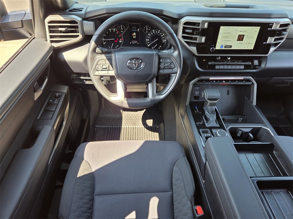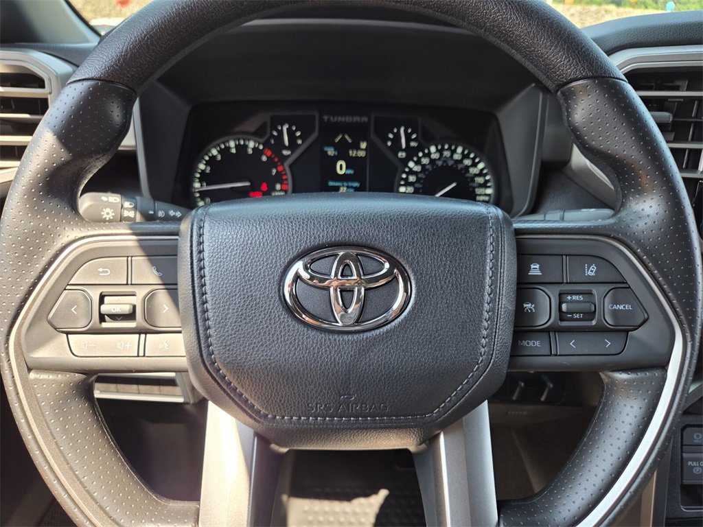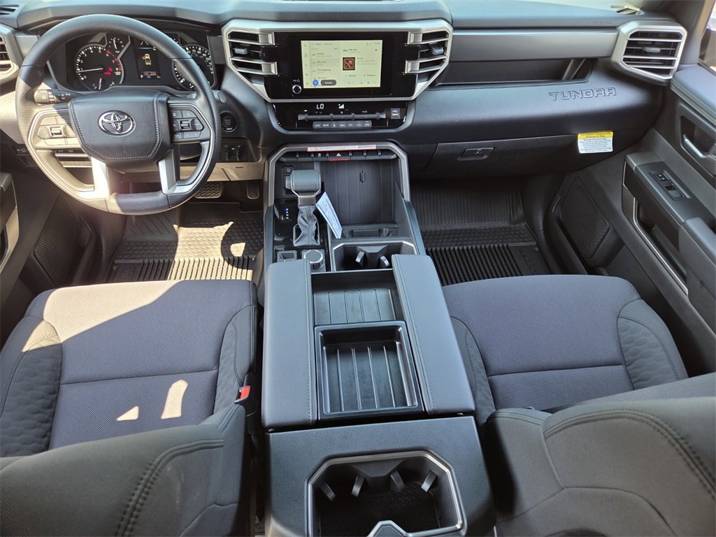 Bluprint This 2026 Toyota Tundra comes equipped with, 4WD, 21 Cloth, 18" Alloy Wheels, 3.31 Axle Ratio, 4-Way Manual Front Seats, 4-Wheel Disc Brakes, 9 Speakers, ABS brakes, Air Conditioning, Alloy wheels, AM/FM radio: SiriusXM, Apple CarPlay/Android Auto, Auto High-beam Headlights, Automatic temperature control, Bed Step (TMS), Brake assist, Bumpers: body-color, Delay-off headlights, Driver door bin, Driver vanity mirror, Dual front impact airbags, Dual front side impact airbags, Electronic Stability Control, Emergency communication system: Safety Connect (up to 10-year trial subscription), Exterior Parking Camera Rear, Fabric Seat Trim (FB), Front anti-roll bar, Front Bucket Seats, Front Center Armrest, Front fog lights, Front reading lights, Front wheel independent suspension, Fully automatic headlights, Heated door mirrors, Illuminated entry, Knee airbag, Low tire pressure warning, Occupant sensing airbag, Outside temperature display, Overhead airbag, Overhead console, Panic alarm, Passenger door bin, Passenger vanity mirror, Power door mirrors, Power driver seat, Power steering, Power windows, Radio data system, Radio: Audio Multimedia System, Rear reading lights, Rear step bumper, Rear window defroster, Remote keyless entry, Safety Connect, Security system, Speed control, Speed-sensing steering, Split folding rear seat, Steering wheel mounted audio controls, Tachometer, Telescoping steering wheel, Tilt steering wheel, Traction control, Trip computer, Variably intermittent wipers, Voltmeter, 4WD, 21 Cloth.
