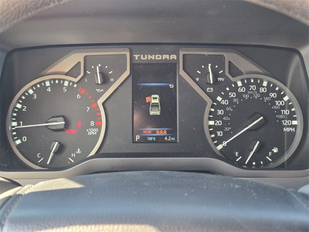 Ice This 2026 Toyota Tundra comes equipped with, 21 Cloth, 18" x 7.5J Alloy Wheels, 3.31 Axle Ratio, 4-Wheel Disc Brakes, 9 Speakers, ABS brakes, Air Conditioning, Alloy wheels, AM/FM Radio, AM/FM radio: SiriusXM, Apple CarPlay/Android Auto, Auto High-beam Headlights, Automatic temperature control, Bed Step (TMS), Brake assist, Bumpers: body-color, Delay-off headlights, Driver door bin, Driver vanity mirror, Dual front impact airbags, Dual front side impact airbags, Electronic Stability Control, Emergency communication system: Safety Connect (up to 10-year trial subscription), Exterior Parking Camera Rear, Fabric Seat Trim, Front anti-roll bar, Front Bucket Seats, Front Center Armrest, Front fog lights, Front reading lights, Front wheel independent suspension, Fully automatic headlights, Heated door mirrors, Illuminated entry, Knee airbag, Low tire pressure warning, Occupant sensing airbag, Outside temperature display, Overhead airbag, Overhead console, Panic alarm, Passenger door bin, Passenger vanity mirror, Power door mirrors, Power driver seat, Power steering, Power windows, Radio data system, Rear reading lights, Rear step bumper, Rear window defroster, Remote keyless entry, Security system, Speed control, Speed-sensing steering, Split folding rear seat, Steering wheel mounted audio controls, Tachometer, Telescoping steering wheel, Tilt steering wheel, Traction control, Trip computer, Variably intermittent wipers, Voltmeter, 21 Cloth.