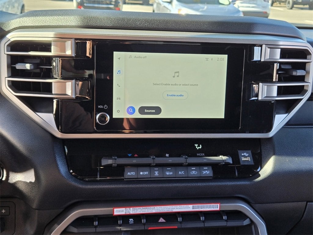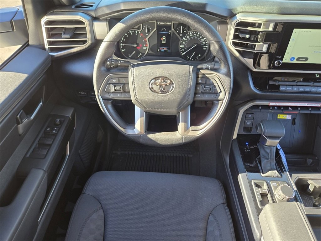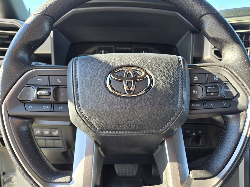 Ice This 2026 Toyota Tundra comes equipped with, 4WD, 21, 18" Alloy Wheels, 3.31 Axle Ratio, 4-Way Manual Front Seats, 4-Wheel Disc Brakes, 9 Speakers, ABS brakes, Air Conditioning, Alloy wheels, AM/FM radio: SiriusXM, Apple CarPlay/Android Auto, Auto High-beam Headlights, Automatic temperature control, Brake assist, Bumpers: body-color, Delay-off headlights, Driver door bin, Driver vanity mirror, Dual front impact airbags, Dual front side impact airbags, Electronic Stability Control, Emergency communication system: Safety Connect (up to 10-year trial subscription), Exterior Parking Camera Rear, Fabric Seat Trim, Front anti-roll bar, Front Bucket Seats, Front Center Armrest, Front fog lights, Front reading lights, Front wheel independent suspension, Fully automatic headlights, Heated door mirrors, Illuminated entry, Knee airbag, Leather Seat Trim, Low tire pressure warning, Occupant sensing airbag, Outside temperature display, Overhead airbag, Overhead console, Panic alarm, Passenger door bin, Passenger vanity mirror, Power door mirrors, Power driver seat, Power steering, Power windows, Radio data system, Radio: Audio Multimedia System, Rear reading lights, Rear step bumper, Rear window defroster, Remote keyless entry, Safety Connect, Security system, Speed control, Speed-sensing steering, Split folding rear seat, Steering wheel mounted audio controls, Tachometer, Telescoping steering wheel, Tilt steering wheel, Traction control, Trip computer, Variably intermittent wipers, Voltmeter, 4WD, 21.