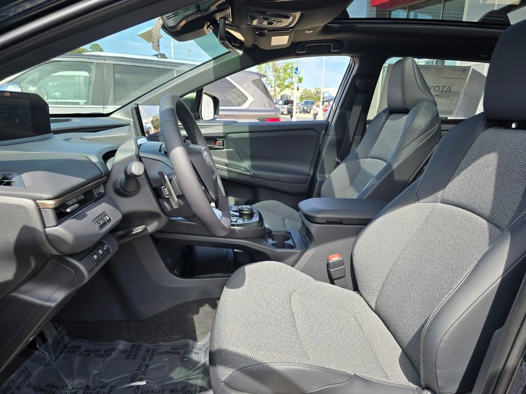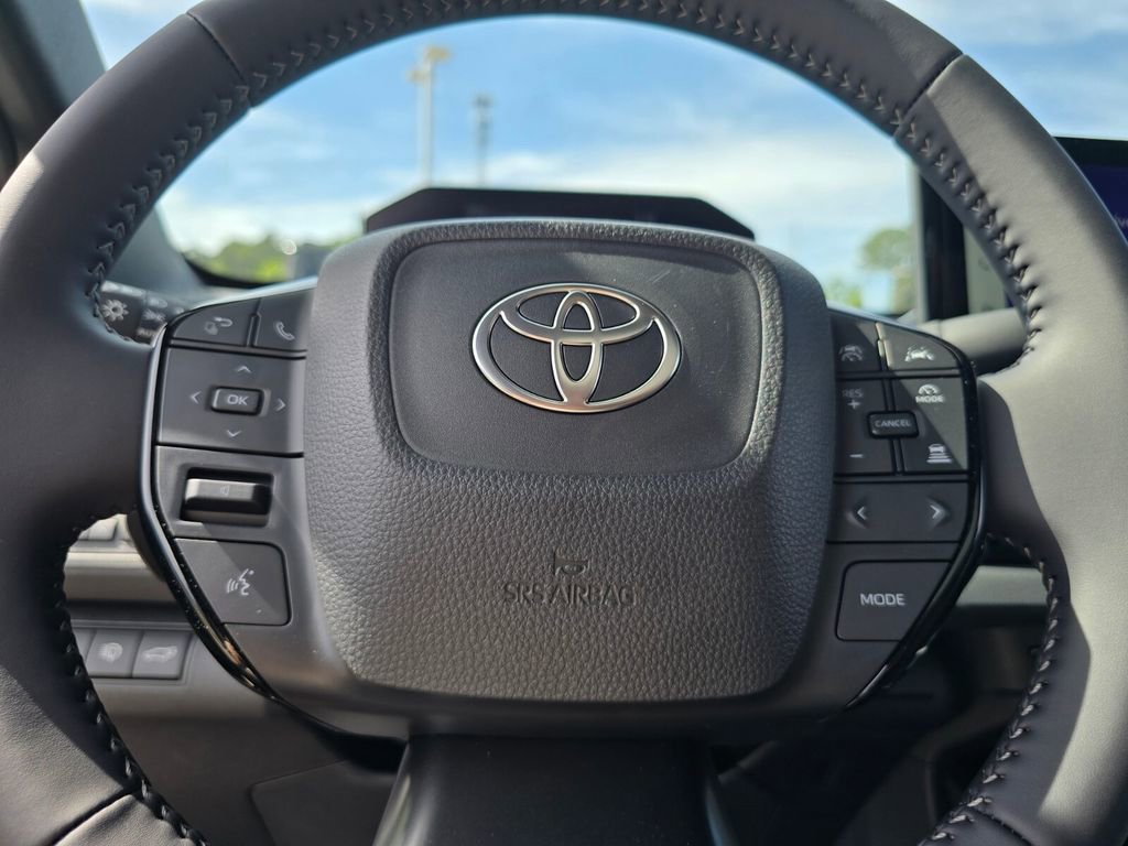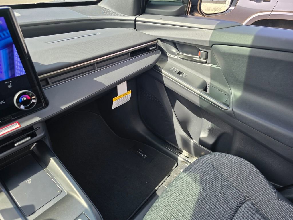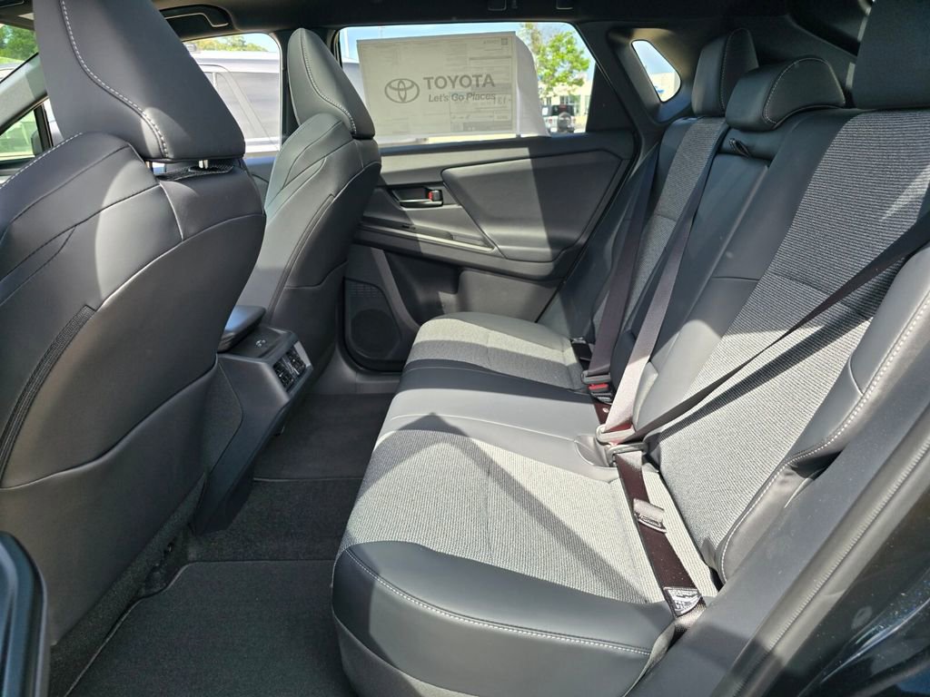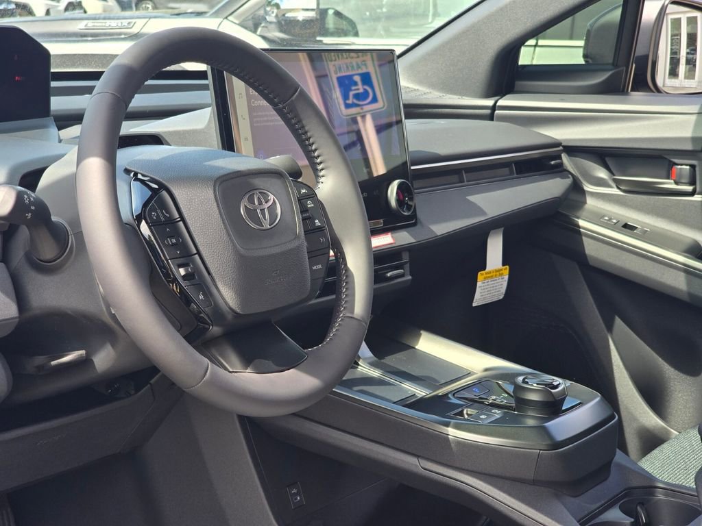 Midnight Black This 2026 Toyota bZ comes equipped with, 4-Wheel Disc Brakes, 6 Speakers, ABS brakes, Air Conditioning, Alloy wheels, AM/FM radio: SiriusXM, Apple CarPlay/Android Auto, Auto High-beam Headlights, Auto-dimming Rear-View mirror, Automatic temperature control, Brake assist, Bumpers: body-color, Delay-off headlights, Driver door bin, Driver vanity mirror, Dual front impact airbags, Dual front side impact airbags, Electronic Stability Control, Emergency communication system: Safety Connect (10-year trial), Exterior Parking Camera Rear, Fabric/SofTex Seat Trim, Four wheel independent suspension, Front anti-roll bar, Front Bucket Seats, Front Center Armrest, Front dual zone A/C, Front reading lights, Fully automatic headlights, Garage door transmitter: HomeLink, Heated door mirrors, Heated Front Seats, Heated front seats, Heated steering wheel, Illuminated entry, Knee airbag, Leather steering wheel, Low tire pressure warning, Navigation system: Drive Connect (3 year trial) includes Cloud Navigation with real time traffic and Google POI, Occupant sensing airbag, Outside temperature display, Overhead airbag, Overhead console, Panic alarm, Passenger door bin, Passenger vanity mirror, Power door mirrors, Power driver seat, Power Liftgate, Power steering, Power windows, Radio data system, Radio: 14" Toyota Audio Multimedia, Rain sensing wipers, Rear anti-roll bar, Rear seat center armrest, Rear window defroster, Remote keyless entry, Security system, Speed control, Speed-sensing steering, Split folding rear seat, Spoiler, Steering wheel mounted audio controls, Telescoping steering wheel, Tilt steering wheel, Traction control, Trip computer, Turn signal indicator mirrors, Variably intermittent wipers, Wheels: 18" Alloy with Covers. 143/119 City/Highway MPG