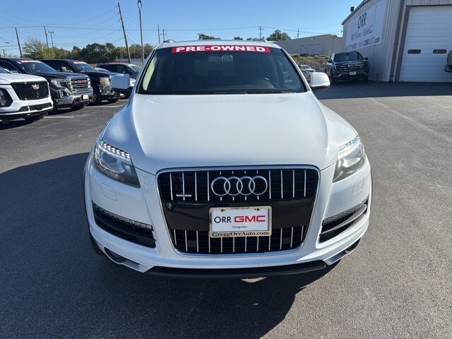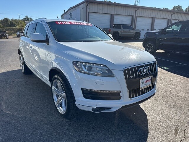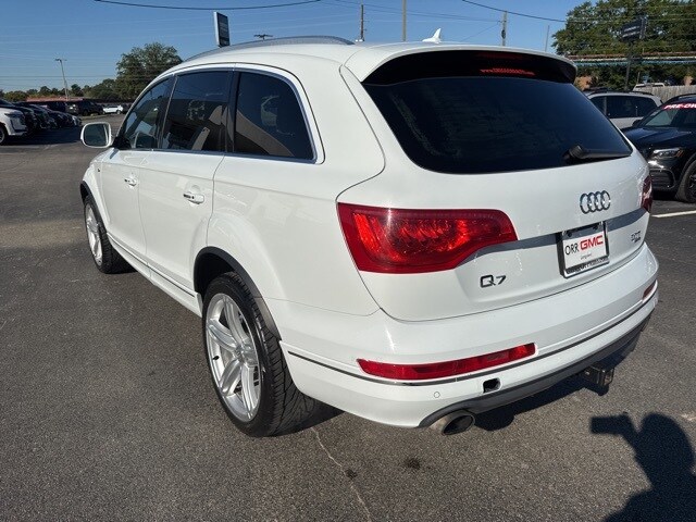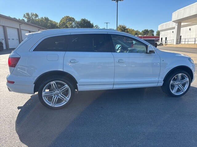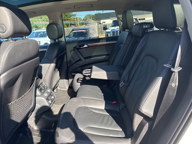 This 2015 Audi Q7 comes equipped with Premium Plus Package (Audi Advanced Key, Audi MMI Navigation Plus w/Voice Control, Auto-Dimming Power-Folding Exterior Mirrors, Electrically Adjustable Steering Column, Front & Rear Acoustic Parking Sensors, Memory Function for Driver, and Panoramic Sunroof), Technology Package (Audi Connect w/Online Services, Audi Parking System Plus w/Rearview Camera, Audi Side Assist, Driver Information System w/Trip Computer, HDD Navigation w/Voice Control, MMI High Control Panel, and Radio: In-Dash Single CD/DVD Player & HD Radio), Warm Weather Plus Package (4-Zone Climate Control, Manual Window Shades For Rear Doors & Tailgate, and Wheels: 21" 5-Segment-Spoke Silver Finish), 11 Speakers, 3.70 Axle Ratio, 3rd row seats: bench, 4-Wheel Disc Brakes, ABS brakes, Air Conditioning, Alloy wheels, AM/FM radio: SiriusXM, Audi First Aid Kit, Audi Guard All-Weather Floor Mats, Auto-dimming Rear-View mirror, Automatic temperature control, Brake assist, Bumpers: body-color, CD player, Compass, Delay-off headlights, Driver door bin, Driver vanity mirror, Driver's Seat Mounted Armrest, Dual front impact airbags, Dual front side impact airbags, Electronic Stability Control, Four wheel independent suspension, Front anti-roll bar, Front Bucket Seats, Front dual zone A/C, Front fog lights, Front reading lights, Fully automatic headlights, Garage door transmitter: HomeLink, Genuine wood console insert, Genuine wood dashboard insert, Genuine wood door panel insert, Heated door mirrors, Heated Front Bucket Seats, Heated front seats, High intensity discharge headlights: Xenon plus, Illuminated entry, Leather Seating Surfaces, Leather Shift Knob, Leather steering wheel, Low tire pressure warning, Occupant sensing airbag, Outside temperature display, Overhead airbag, Overhead console, Panic alarm, Passenger door bin, Passenger seat mounted armrest, Passenger vanity mirror, Power door mirrors, Power driver seat, Power Liftgate, Power passenger seat, Power steering, Power windows, Radio data system, Radio: Audi Music Interface w/iPod Cable, Rain sensing wipers, Rear anti-roll bar, Rear fog lights, Rear reading lights, Rear seat center armrest, Rear window defroster, Rear window wiper, Remote keyless entry, Roof rack: rails only, Security system, Speed control, Speed-sensing steering, Split folding rear seat, Spoiler, Steering wheel mounted audio controls, Supercharged Badge, Tachometer, Telescoping steering wheel, Tilt steering wheel, Traction control, Trip computer, Turn signal indicator mirrors, Variably intermittent wipers, and Wheels: 8.0J x 18" 6-Spoke-Design.