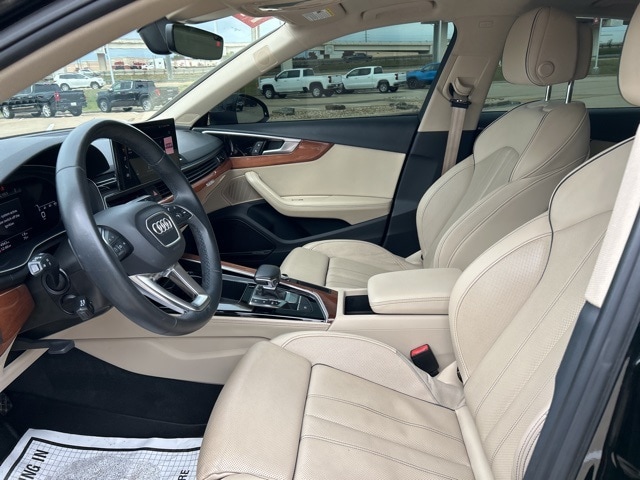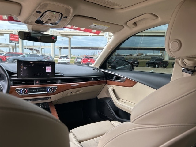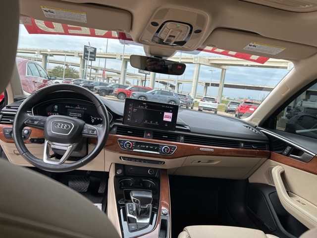 This 2022 Audi A4 comes equipped with the following features 18" Wheel Package (Wheels: 18" 10-Spoke-Dynamic Design Bi-Color Finish), Convenience Package (Alarm System w/Motion Sensor, Audi Advanced Key, Audi Side Assist w/pre sense Rear, Heated Steering Wheel, Memory for Driver's Seat, Parking System Plus, and SiriusXM All Access Service), Interior Lighting Plus Package, Navigation Package (Audi Connect PRIME & PLUS and MMI Navigation Plus), Prestige Package (2 Rear USB Charge Ports, Adaptive Cruise Control w/Traffic Jam Assist, Animation for Headlights & Taillights, Audi Active Lane Assist, Audi Phone Box, Audi Virtual Cockpit Plus, Bang & Olufsen Sound System w/3D Sound, Dual Pane Acoustic Glass for Front Side Windows, Hands-On Detection Steering Wheel, Head-Up Display, Heated Rear Seats, Leatherette Covered Center Console & Door Armrests, LED Headlights w/DRL Signature, Matrix-Design LED Headlights w/Washers, Park Assist, Power Folding Exterior Mirrors, Top View Camera System, and Traffic Sign Recognition), Warm Weather Package (Ventilated Front Sport Seats), 7-Speed Automatic S tronic, quattro, Atlas Beige w/Leather Seating Surfaces, 10 Speakers, 4-Wheel Disc Brakes, ABS brakes, Air Conditioning, Alloy wheels, AM/FM radio, Anti-whiplash front head restraints, Audi Beam-Rings, Audi Guard All-Weather Mats, Audi smartphone interface (Apple CarPlay/Android Auto), Auto High-beam Headlights, Auto-dimming Rear-View mirror, Automatic temperature control, Brake assist, Bumpers: body-color, Compass, Delay-off headlights, Driver door bin, Driver vanity mirror, Dual front impact airbags, Dual front side impact airbags, Electronic Stability Control, Emergency communication system: Audi connect CARE, Exterior Parking Camera Rear, Four wheel independent suspension, Front anti-roll bar, Front Bucket Seats, Front Center Armrest, Front dual zone A/C, Front fog lights, Front reading lights, Garage door transmitter: HomeLink, Genuine wood dashboard insert, Genuine wood door panel insert, Heated door mirrors, Heated Front Bucket Seats, Heated front seats, Illuminated entry, Knee airbag, Leather Seating Surfaces, Leather Shift Knob, Leather steering wheel, Low tire pressure warning, Occupant sensing airbag, Outside temperature display, Overhead airbag, Overhead console, Panic alarm, Passenger door bin, Passenger vanity mirror, Power door mirrors, Power driver seat, Power moonroof, Power passenger seat, Power steering, Power windows, Radio data system, Radio: Audi Sound System, Rain sensing wipers, Rear air conditioning, Rear anti-roll bar, Rear reading lights, Rear seat center armrest, Rear window defroster, Remote keyless entry, Speed control, Speed-sensing steering, Speed-Sensitive Wipers, Split folding rear seat, Steering wheel mounted audio controls, Tachometer, Telescoping steering wheel, Tilt steering wheel, Traction control, Trip computer, Turn signal indicator mirrors, Variably intermittent wipers, and Wheels: 17" 10-Spoke Design Forged. 7-Speed Automatic S tronic, quattro, Atlas Beige w/Leather Seating Surfaces. Clean CARFAX. 2022 Audi A4 40 Prestige quattro quattro 2.0L TFSI