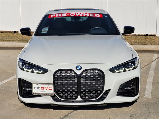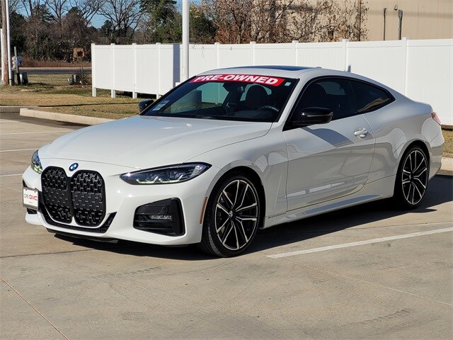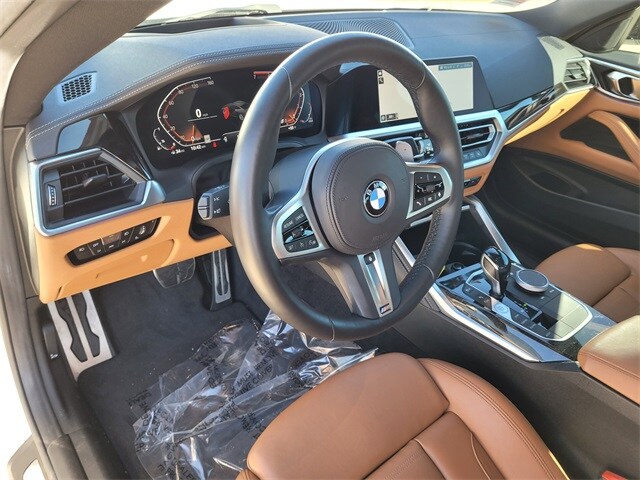 This 2021 BMW 4 Series comes equipped with Connected Package Pro, M Sport Package (Aerodynamic Kit, M Sport Suspension, M Steering Wheel, SensaTec Dashboard, Variable Sport Steering, Wheels: 19" x 8" Fr & 19" x 8.5" Rr M Double-Spoke, Without Lines Designation Outside, and Increased Top Speed Limiter), M Sport Package (337), Premium Package (Ambient Lighting, Comfort Access Keyless Entry, Head-Up Display, Heated Front Seats, Heated Steering Wheel, Live Cockpit Pro w/Navi, and Lumbar Support), Shadowline Package (Black Mirror Caps and Extended Shadowline Trim), Navigation, Navigation System, 10 Speakers, 4-Wheel Disc Brakes, ABS brakes, Adjustable Seat Width, Air Conditioning, Alloy wheels, AM/FM Radio, AM/FM radio: SiriusXM with 360L, Apple CarPlay & Android Auto Compatibility, Apple CarPlay Compatibility, Auto High-beam Headlights, Auto-dimming door mirrors, Auto-dimming Rear-View mirror, Automatic temperature control, BMW Assist eCall, BMW TeleServices, Brake assist, Bumpers: body-color, Compass, ConnectedDrive Services, Delay-off headlights, Driver door bin, Driver vanity mirror, Dual front impact airbags, Dual front side impact airbags, Electronic Stability Control, Emergency communication system: BMW Assist eCall, Exterior Parking Camera Rear, Four wheel independent suspension, Front anti-roll bar, Front Bucket Seats, Front Center Armrest, Front dual zone A/C, Front reading lights, Fully automatic headlights, Garage door transmitter, Genuine wood console insert, Genuine wood dashboard insert, Heated door mirrors, Hi-Fi Sound System, Illuminated entry, Knee airbag, Low tire pressure warning, Memory seat, Occupant sensing airbag, Outside temperature display, Overhead airbag, Overhead console, Panic alarm, Passenger door bin, Passenger vanity mirror, Power door mirrors, Power driver seat, Power Front Seats, Power moonroof, Power passenger seat, Power steering, Power windows, Radio Control US, Radio data system, Rain sensing wipers, Rear air conditioning, Rear anti-roll bar, Rear reading lights, Rear seat center armrest, Rear window defroster, Remote keyless entry, Security system, SensaTec Upholstery, SiriusXM w/360L, Speed control, Speed-sensing steering, Speed-Sensitive Wipers, Split folding rear seat, Sport Seats, Sport steering wheel, Steering wheel mounted audio controls, Tachometer, Telescoping steering wheel, Tilt steering wheel, Traction control, Trip computer, Turn signal indicator mirrors, Variably intermittent wipers, Wheels: 18" x 7.5" V-Spoke Bi-Color Orbit Grey, and Wheels: 19" x 8" M Double-Spoke Bicolor. 26/34 City/Highway MPG Carfax no accidents, Aerodynamic Kit, Ambient Lighting, Black Mirror Caps, Comfort Access Keyless Entry, Connected Package Pro, Extended Shadowline Trim, Head-Up Display, Heated Front Seats, Heated Steering Wheel, Live Cockpit Pro w/Navi, Lumbar Support, M Sport Package, M Sport Package (337), M Sport Suspension, M Steering Wheel, Navigation, Navigation System, Premium Package, SensaTec Dashboard, Shadowline Package, Variable Sport Steering, Wheels: 19" x 8" Fr & 19" x 8.5" Rr M Double-Spoke, Without Lines Designation Outside.