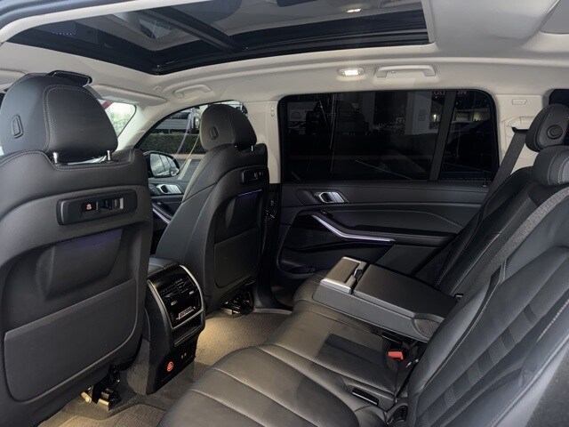 This 2021 BMW X7 comes equipped with Connected Package Pro, Parking Assistance Package (Drive Recorder, Parking Assistant Plus, Rear-View Camera, and Surround View w/3D View), 10 Speakers, 3.64 Axle Ratio, 3rd row seats: split-bench, 4-Wheel Disc Brakes, ABS brakes, Air Conditioning, Alloy wheels, Aluminum Running Boards, AM/FM radio: SiriusXM with 360L, AM/FM Stereo, Apple CarPlay & Android Auto Compatibility, Apple CarPlay Compatibility, Auto High-beam Headlights, Auto tilt-away steering wheel, Auto-dimming door mirrors, Auto-dimming Rear-View mirror, Auto-leveling suspension, Automatic temperature control, BMW Assist eCall, BMW TeleServices, Brake assist, Bumpers: body-color, Compass, ConnectedDrive Services, Delay-off headlights, Driver door bin, Driver vanity mirror, Dual front impact airbags, Dual front side impact airbags, Electronic Stability Control, Emergency communication system: BMW Assist eCall, Exterior Parking Camera Rear, Four wheel independent suspension, Front anti-roll bar, Front Bucket Seats, Front Center Armrest, Front dual zone A/C, Front fog lights, Front reading lights, Fully automatic headlights, Garage door transmitter, Genuine wood console insert, Genuine wood dashboard insert, Genuine wood door panel insert, Head restraints memory, Heated door mirrors, Heated front seats, Heated Sport Seats, Heated steering wheel, Hi-Fi Sound System, Illuminated entry, Knee airbag, Leather Shift Knob, Live Cockpit Pro w/Navi, Low tire pressure warning, Lumbar Support, Memory seat, Navigation System, Occupant sensing airbag, Outside temperature display, Overhead airbag, Panic alarm, Passenger door bin, Passenger vanity mirror, Power adjustable front head restraints, Power door mirrors, Power driver seat, Power Front Seats, Power moonroof, Power passenger seat, Power steering, Power windows, Radio data system, Rain sensing wipers, Rear air conditioning, Rear anti-roll bar, Rear dual zone A/C, Rear reading lights, Rear seat center armrest, Rear window defroster, Rear window wiper, Reclining 3rd row seat, Remote keyless entry, Roof rack: rails only, Security system, SensaTec Upholstery, SiriusXM w/360L, Speed control, Speed-sensing steering, Speed-Sensitive Wipers, Split folding rear seat, Spoiler, Sport steering wheel, Steering wheel memory, Steering wheel mounted audio controls, Tachometer, Telescoping steering wheel, Tilt steering wheel, Traction control, Trip computer, Turn signal indicator mirrors, Variably intermittent wipers, and Wheels: 21" x 9.5" Y-Spoke Bi-Color. Clean CARFAX.