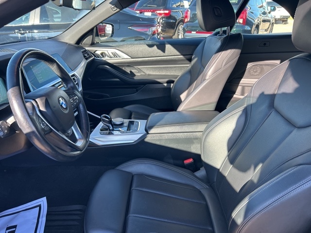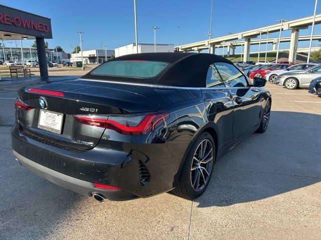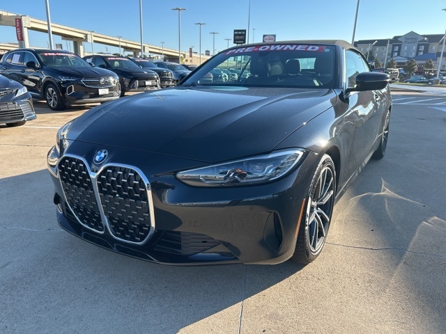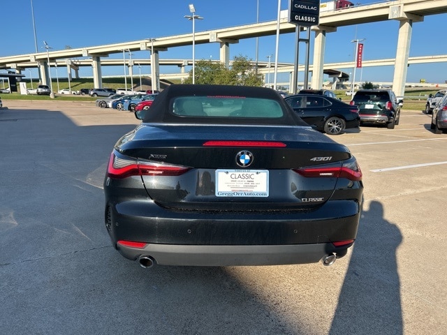 This 2023 BMW 4 Series comes equipped with the following features Connected Package Pro, 10 Speakers, 4-Wheel Disc Brakes, ABS brakes, Air Conditioning, Alloy wheels, AM/FM Radio, AM/FM radio: SiriusXM, Apple CarPlay & Android Auto Compatibility, Apple CarPlay Compatibility, Auto High-beam Headlights, Auto-dimming door mirrors, Auto-dimming Rear-View mirror, Automatic temperature control, BMW Assist eCall, BMW TeleServices, Brake assist, Bumpers: body-color, Comfort Access Keyless Entry, Compass, ConnectedDrive Services, Convertible roof lining, Convertible roof wind blocker, Delay-off headlights, Driver door bin, Driver Lumbar Support, Driver vanity mirror, Dual front impact airbags, Dual front side impact airbags, Electronic Stability Control, Emergency communication system: BMW Assist eCall, Enhanced USB & Bluetooth w/Smartphone Integration, Exterior Parking Camera Rear, Four wheel independent suspension, Front anti-roll bar, Front Bucket Seats, Front Center Armrest, Front dual zone A/C, Front reading lights, Fully automatic headlights, Garage door transmitter, Genuine wood console insert, Genuine wood dashboard insert, Glass rear window, Heated door mirrors, Heated Front Seats, Heated Steering Wheel, Hi-Fi Sound System, Illuminated entry, Integrated roll-over protection, Knee airbag, Low tire pressure warning, Memory seat, Navigation, Navigation System, Occupant sensing airbag, Outside temperature display, Overhead console, Panic alarm, Passenger door bin, Passenger vanity mirror, Perforated Sensatec Upholstery, Power convertible roof, Power door mirrors, Power driver seat, Power Front Seats, Power passenger seat, Power steering, Power windows, Radio data system, Rain sensing wipers, Rear air conditioning, Rear anti-roll bar, Rear reading lights, Rear seat center armrest, Rear window defroster, Remote Engine Start, Remote keyless entry, Security system, SiriusXM Satellite Radio, Speed control, Speed-sensing steering, Speed-Sensitive Wipers, Sport Seats, Sport steering wheel, Steering wheel mounted audio controls, Tachometer, Telescoping steering wheel, Tilt steering wheel, Traction control, Trip computer, Turn signal indicator mirrors, Variably intermittent wipers, and Wheels: 18" x 7.5" V-Spoke Bi-Color Orbit Grey. Clean CARFAX. 2023 BMW 4 Series 430i xDrive AWD 2.0L 4-Cylinder TwinPower Turbo