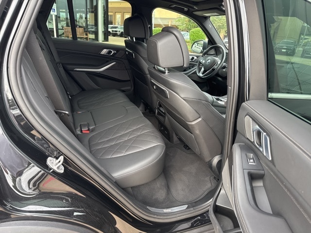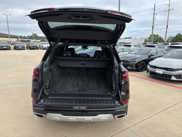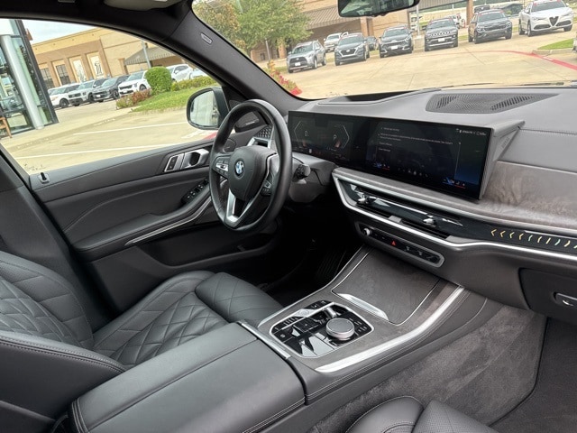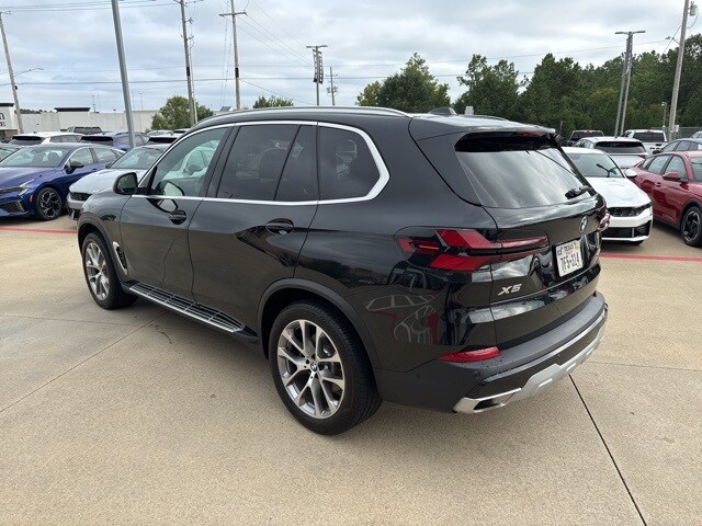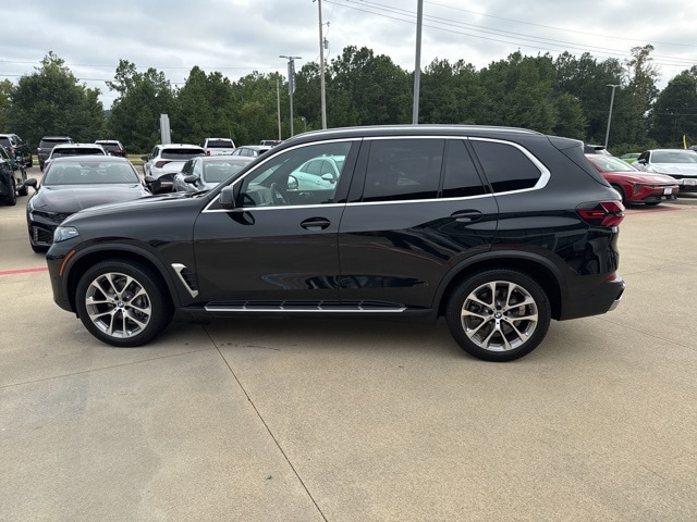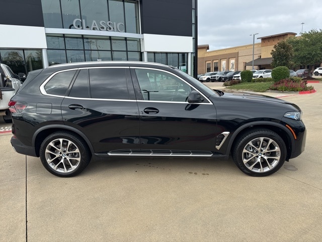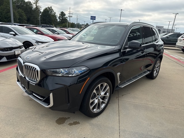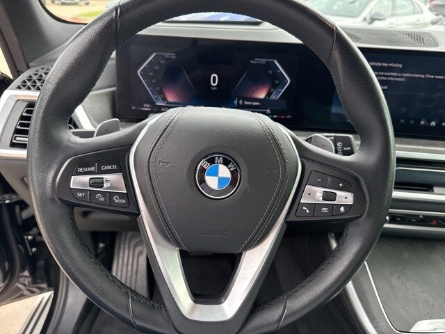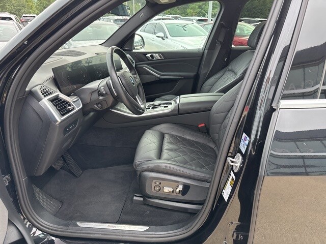 The 2025 BMW X5 comes with the following features; Connected Package Pro, Black Leather, 10 Speakers, 4-Wheel Disc Brakes, ABS brakes, Air Conditioning, Alloy wheels, AM/FM radio: SiriusXM with 360L, AM/FM Stereo, Apple CarPlay & Android Auto Compatibility, Apple CarPlay Compatibility, Auto High-beam Headlights, Auto tilt-away steering wheel, Auto-dimming door mirrors, Auto-dimming Rear-View mirror, Automatic temperature control, BMW Assist eCall, BMW TeleServices, Brake assist, Bumpers: body-color, Compass, ConnectedDrive Services, Delay-off headlights, Driver door bin, Driver vanity mirror, Dual front impact airbags, Dual front side impact airbags, Electronic Stability Control, Emergency communication system: BMW Assist eCall, Exterior Parking Camera Rear, Four wheel independent suspension, Front anti-roll bar, Front Bucket Seats, Front Center Armrest, Front dual zone A/C, Front reading lights, Fully automatic headlights, Garage door transmitter, Genuine wood console insert, Genuine wood dashboard insert, Genuine wood door panel insert, Head restraints memory, Heated door mirrors, Heated Front Seats, Heated front seats, Hi-Fi Sound System, Illuminated entry, Knee airbag, Leather Shift Knob, Leather steering wheel, Low tire pressure warning, Lumbar Support, Memory seat, Navigation, Navigation System, Occupant sensing airbag, Outside temperature display, Overhead airbag, Panic alarm, Passenger door bin, Passenger vanity mirror, Personal eSIM 5G, Power adjustable front head restraints, Power door mirrors, Power driver seat, Power Front Seats, Power moonroof, Power passenger seat, Power steering, Power windows, Radio data system, Rain sensing wipers, Rear anti-roll bar, Rear reading lights, Rear seat center armrest, Rear window defroster, Rear window wiper, Remote keyless entry, Security system, Sensafin Upholstery, SiriusXM Satellite Radio, Speed control, Speed-sensing steering, Speed-Sensitive Wipers, Split folding rear seat, Spoiler, Sport Seats, Sport steering wheel, Steering wheel memory, Steering wheel mounted audio controls, Tachometer, Telescoping steering wheel, Tilt steering wheel, Traction control, Trip computer, Turn signal indicator mirrors, Variably intermittent wipers, Wheels: 20" x 9" V-Spoke (Style 738), and Wireless Device Charging. Black Leather.