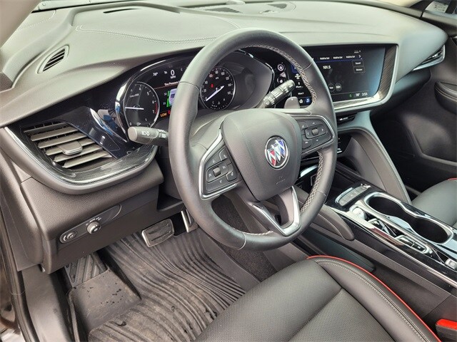 This 2022 Buick Envision comes equipped with Preferred Equipment Group 1SL (Heated Driver & Front Passenger Seats and Heated Steering Wheel), Safety Package (Lane Change Alert w/Side Blind Zone Alert and Rear Cross Traffic Alert), Sport Touring Package (Black Roof Rails, Body-Color Door Handles, Carpeted Front & Rear Floor Mats, Lower Trim/Wheel Arch Moldings, Rear Cargo Compartment Cover, Sport Alloy Pedals, and Wheels: 20" Aluminum w/Dark Finish), 3.47 Final Drive Axle Ratio, 4-Wheel Disc Brakes, 7 Speakers, 7-Speaker Audio System Feature w/Amplifier, 8-Way Power Driver Seat Adjuster, ABS brakes, Air Conditioning, Alloy wheels, AM/FM radio: SiriusXM, Apple CarPlay/Android Auto, Auto High-beam Headlights, Auto-dimming door mirrors, Auto-dimming Rear-View mirror, Automatic temperature control, Brake assist, Bumpers: body-color, Compass, Delay-off headlights, Driver door bin, Driver vanity mirror, Dual front impact airbags, Dual front side impact airbags, Electronic Stability Control, Emergency communication system: OnStar and Buick connected services capable, Four wheel independent suspension, Front anti-roll bar, Front Bin Center Console USB Ports, Front Bucket Seats, Front Center Armrest, Front dual zone A/C, Front Passenger 8-Way Power Seat Adjuster, Front reading lights, Fully automatic headlights, Heated door mirrors, Heated front seats, Heated steering wheel, Illuminated entry, Knee airbag, Low tire pressure warning, Memory seat, Not Equipped w/Driver & Fr Passenger Heated Seats, Not Equipped w/Heated Steering Wheel, Occupant sensing airbag, Outside temperature display, Overhead airbag, Overhead console, Panic alarm, Passenger door bin, Passenger vanity mirror, Perforated Leather-Appointed Seat Trim, Power door mirrors, Power driver seat, Power Liftgate, Power Panoramic Tilt-Sliding Moonroof, Power passenger seat, Power steering, Power windows, Premium audio system: Buick Infotainment System, Radio data system, Radio: Buick Infotainment System AM/FM Stereo, Rear anti-roll bar, Rear reading lights, Rear seat center armrest, Rear window defroster, Rear window wiper, Remote keyless entry, Roof rack: rails only, Security system, SiriusXM Radio, Speed control, Split folding rear seat, Spoiler, Steering wheel mounted audio controls, Telescoping steering wheel, Tilt steering wheel, Traction control, Trip computer, USB Charging-Only Ports, Variably intermittent wipers, Wheels: 18" Machined Aluminum w/Light Silver Met, and Wireless Apple CarPlay/Wireless Android Auto. CARFAX One-Owner. Clean CARFAX. 24/31 City/Highway MPG One Owner Carfax, Black Roof Rails, Body-Color Door Handles, Carpeted Front & Rear Floor Mats, Heated Driver & Front Passenger Seats, Heated Steering Wheel, Lane Change Alert w/Side Blind Zone Alert, Lower Trim/Wheel Arch Moldings, Preferred Equipment Group 1SL, Rear Cargo Compartment Cover, Rear Cross Traffic Alert, Safety Package, Sport Alloy Pedals, Sport Touring Package, Wheels: 20" Aluminum w/Dark Finish.