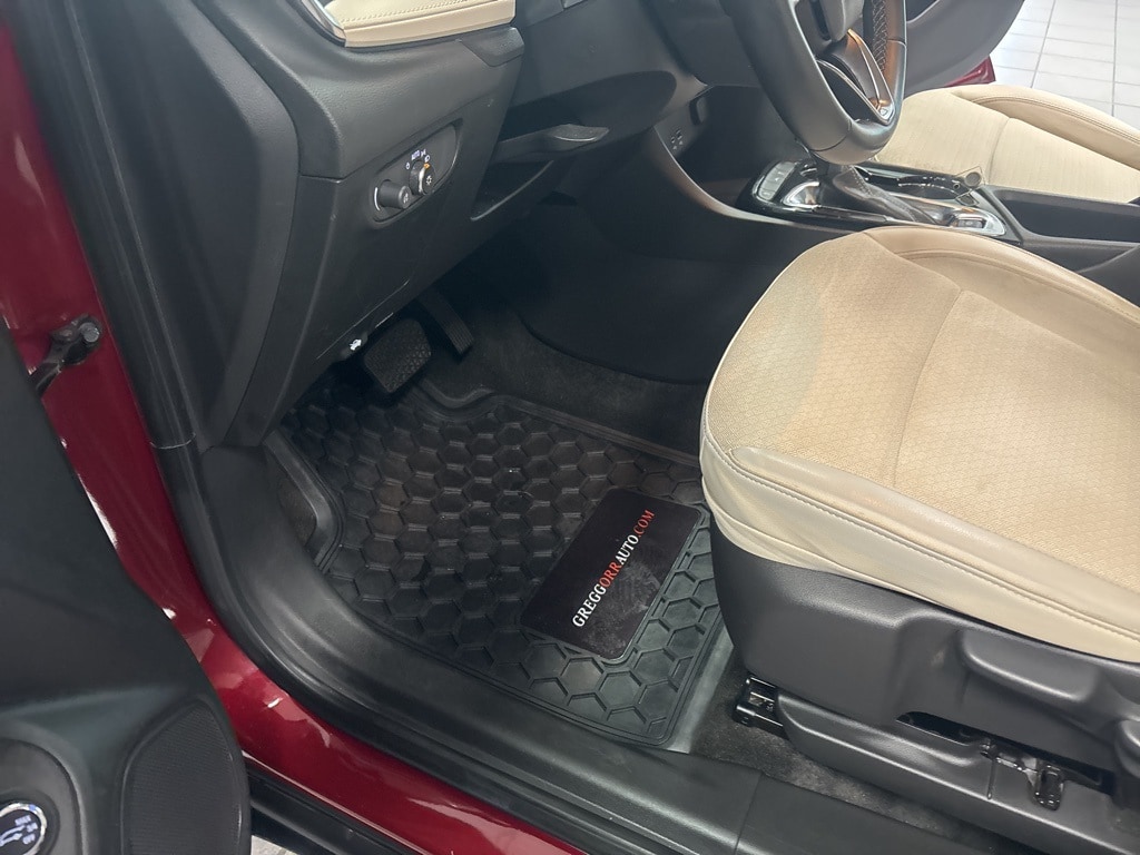 CARFAX One-Owner. Cinnabar Metallic Preferred FWD CVT ECOTEC 1.2L Turbo **LOCAL TRADE**, **NON SMOKER**, **KEYLESS ENTRY**, **REMOTE START**, **WE DELIVER ANYWHERE**, **REAR VIEW CAMERA**, 2 USB Ports (1 Type-A, 1 Type-C), 4-Wheel Disc Brakes, 6-Way Manual Driver Seat Adjuster, Air Conditioning, Alloy wheels, AM/FM radio: SiriusXM, Auto High-beam Headlights, Automatic temperature control, Brake assist, Bumpers: body-color, Delay-off headlights, Driver door bin, Driver vanity mirror, Front Bucket Seats, Fully automatic headlights, Heated door mirrors, Illuminated entry, Knee airbag, Low tire pressure warning, Outside temperature display, Overhead airbag, Panic alarm, Passenger door bin, Passenger vanity mirror, Power door mirrors, Power Liftgate, Power steering, Preferred Equipment Group 1SB, Radio: Audio System w/AM/FM, Rear side impact airbag, Rear window defroster, Remote keyless entry, Ride & Handling Suspension, Security system, SiriusXM, Speed control, Speed-sensing steering, Split folding rear seat, Spoiler, Steering wheel mounted audio controls, Tachometer, Telescoping steering wheel, Tilt steering wheel, Traction control, Variably intermittent wipers, Wireless Apple CarPlay/Wireless Android Auto.