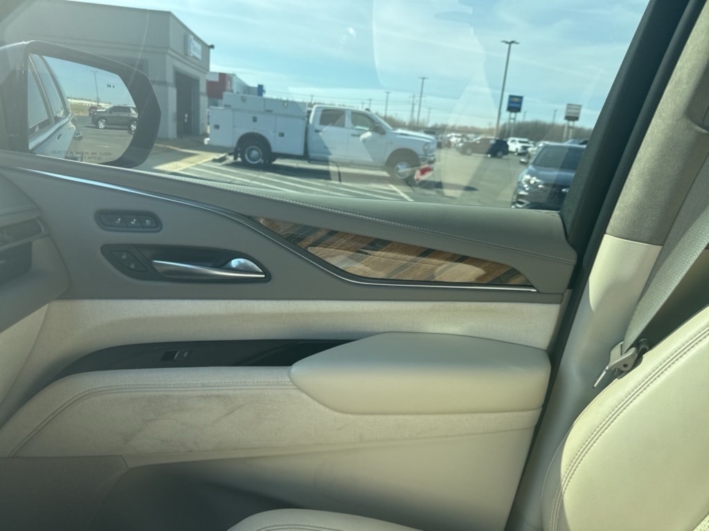 Black Raven Premium Luxury Platinum 4WD 10-Speed Automatic with Overdrive 6.2L V8 **NAVIGATION**, **LOCAL TRADE**, **NON SMOKER**, **LEATHER INTERIOR**, **KEYLESS ENTRY**, **REMOTE START**, **HEATED / COOLED SEATS**, **ADAPTIVE CRUISE CONTROL**, **WE DELIVER ANYWHERE**, **PANORAMIC MOONROOF**, **REAR VIEW CAMERA**, **REAR ENTERTAINMENT CENTER**, **BLUETOOTH HANDES FREE CALLING**, **LOCAL TRADE IN - NEVER A RENTAL**, **CHROME WHEELS**, 4WD, 16.9" Diagonal OLED Infotainment Screen, 2-Presets Memory For Driver Seat Adjuster, 3.23 Axle Ratio, 3rd row seats: split-bench, 4-Way Power Driver Lumbar Seat Adjuster, 4-Way Power Front Passenger Lumbar Seat Adjuster, 4-Wheel Disc Brakes, 8-Way Power Driver Seat Adjuster, 8-Way Power Front Passenger Seat Adjuster, A/V remote, ABS brakes, Adaptive Cruise Control, Adaptive suspension, Air Conditioning, Air Ride Adaptive Suspension, AKG Studio Reference 36-Speaker Audio System, Alloy wheels, AM/FM radio: SiriusXM with 360L, Apple CarPlay/Android Auto, Audio memory, Auto High-beam Headlights, Auto tilt-away steering wheel, Auto-dimming door mirrors, Automatic Seat Belt Tightening, Automatic Stop/Start, Automatic temperature control, Brake assist, Bumpers: body-color, Compass, Cooled Console w/Covered Storage, Delay-off headlights, Door auto-latch, Door Lock & Latch Shields, Driver door bin, Driver vanity mirror, Dual front impact airbags, Dual front side impact airbags, Electronic Limited-Slip Differential, Electronic Stability Control, Emergency communication system: OnStar and Cadillac connected services capable, Enhanced Automatic Emergency Braking, Enhanced Automatic Parking Assist, Floor Console w/Covered Storage, Four wheel independent suspension, Front anti-roll bar, Front Auxiliary 12-volt Power Outlet, Front Bucket Seats, Front Center Armrest w/Storage, Front dual zone A/C, Front reading lights, Full Semi-Aniline Leather Seats, Fully automatic headlights, Garage door transmitter, Genuine wood console insert, Genuine wood dashboard insert, Genuine wood door panel insert, Glass Breakage Sensor, HD Radio, Headphones, Heads-Up Display, Heated & Ventilated Driver & Front Passenger Seats, Heated door mirrors, Heated Driver & Front Passenger Seats, Heated front seats, Heated rear seats, Heated steering wheel, Hitch Guidance w/Hitch View, Illuminated entry, Illuminating Front & Rear Sill Plates, Integrated Trailer Brake Controller, Leather steering wheel, Low tire pressure warning, Magnetic Ride Control Suspension, Memory seat, Navigation System, Not Equipped w/2nd Row Express-Up/Down Windows, Not Equipped w/Steering Column Lock, Not Equipped w/Super Cruise, Occupant sensing airbag, Outside temperature display, Overhead airbag, Overhead console, Panic alarm, Passenger door bin, Passenger vanity mirror, Platinum Interior Trim, Power door mirrors, Power driver seat, Power Liftgate, Power Lumbar Massage Driver Seat, Power Lumbar Massage Front Passenger Seat, Power moonroof, Power Panoramic Tilt-Sliding Sunroof, Power passenger seat, Power steering, Power windows, Power-Retractable Assist Steps, Preferred Equipment Group 1SG, Radio data system, Radio: AM/FM/SiriusXM w/Navigation, Rain sensing wipers, Rear air conditioning, Rear anti-roll bar, Rear audio controls, Rear Camera Mirror, Rear Camera Mirror Washer, Rear Cross Traffic Alert, Rear reading lights, Rear Seat Entertainment System, Rear window defroster, Rear window wiper, Reconfigurable Full-Color Head-Up Display, Remote keyless entry, Reverse Automatic Braking, Roof rack: rails only, Running Board Assist Steps, Security system, SiriusXM w/360L, Smart Trailer Integration Indicator, Soft Closing Front & Rear Doors, Speed control, Split folding rear seat, Spoiler, Start/Stop System Disable Button, Steering wheel memory, Steering wheel mounted audio controls, Super Cruise, Tachometer, Teen Driver, Telescoping steering wheel, Theft-Deterrent Alarm System, Tilt steering wheel, Touring Package, Traction control, Trailer Side Blind Zone Alert, Tri
