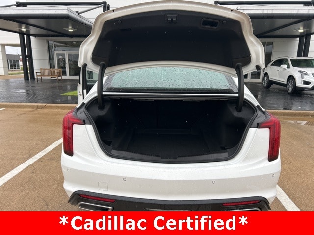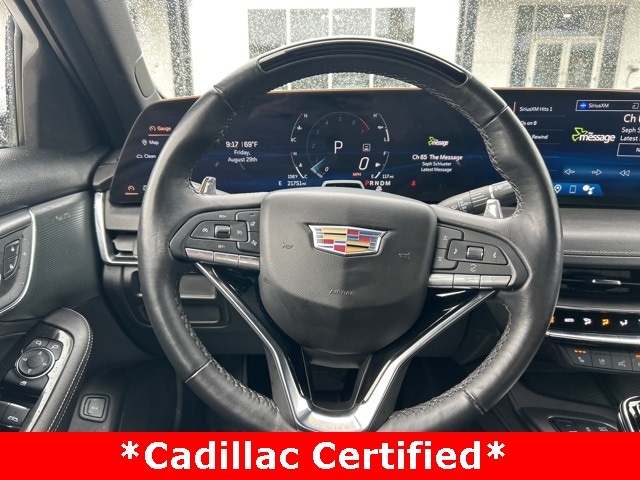 This 2025 Cadillac CT5 comes equipped with the following features Preferred Equipment Group 1SD (LED Reflective Windshield Collision Alert), Sun & Sound Package, 15 Speakers, 4-Wheel Disc Brakes, 8-Way Power Driver Seat Adjuster, 8-Way Power Front Passenger Seat Adjuster, ABS brakes, Air Conditioning, AKG 15-Speaker System, Alloy wheels, AM/FM radio: SiriusXM with 360L, Apple CarPlay/Android Auto, Auto High-beam Headlights, Auto-dimming door mirrors, Auto-dimming Rear-View mirror, Automatic Stop/Start w/Disable, Automatic temperature control, Brake assist, Bumpers: body-color, Compass, Delay-off headlights, Deleted 3 Years of OnStar Digital Services, Driver 4-Way Power Lumbar Seat Adjuster, Driver door bin, Driver Power Lumbar Massage Seat, Driver Power Seatback Bolster Adjustment, Driver vanity mirror, Dual front impact airbags, Dual front side impact airbags, Electronic Stability Control, Emergency communication system: OnStar and Cadillac connected services capable, Enhanced Automatic Parking Assist, Four wheel independent suspension, Front anti-roll bar, Front Bucket Seats, Front Center Armrest, Front dual zone A/C, Front License Plate Bracket, Front Passenger 4-Way Power Lumbar Seat Adjuster, Front Passenger Power Lumbar Massage Seat, Front Passenger Power Seatback Bolster Adjustment, Front reading lights, Fully automatic headlights, Garage door transmitter, HD Surround Vision, Heated door mirrors, Heated Driver & Front Passenger Seats, Heated front seats, Heated steering wheel, Illuminated entry, Knee airbag, Leather Seating Surfaces w/Mini-Perforated Inserts, Leather steering wheel, Low tire pressure warning, Memory seat, Navigation System, Occupant sensing airbag, Outside temperature display, Overhead airbag, Overhead console, Panic alarm, Passenger door bin, Passenger vanity mirror, Power door mirrors, Power driver seat, Power passenger seat, Power steering, Power windows, Radio data system, Radio: Google Built-In Infotainment Experience, Rain sensing wipers, Rear anti-roll bar, Rear reading lights, Rear seat center armrest, Rear window defroster, Remote keyless entry, SiriusXM w/360L Trial Subscription, Speed control, Speed-sensing steering, Split folding rear seat, Steering wheel memory, Steering wheel mounted audio controls, Tachometer, Telescoping steering wheel, Tilt steering wheel, Traction control, Trip computer, Turn signal indicator mirrors, UltraView Dual Pane Sunroof (DISC), Variably intermittent wipers, Ventilated Driver & Front Passenger Seats, Ventilated front seats, Voltmeter, and Wheels: 18" Premium Painted Alloy. CARFAX One-Owner. 2025 Cadillac CT5 Premium Luxury RWD 2.0L I4 Turbocharged DOHC 16V LEV3-SULEV30 237hp
