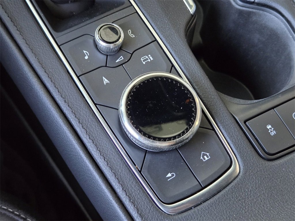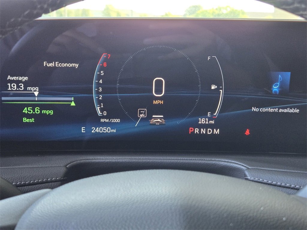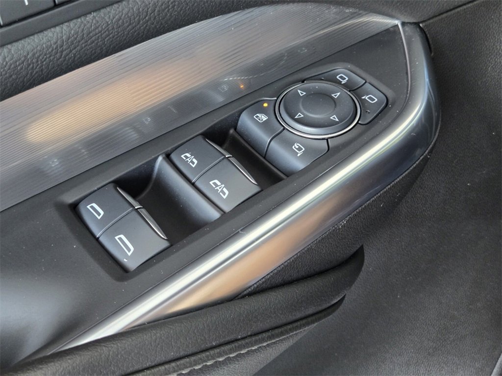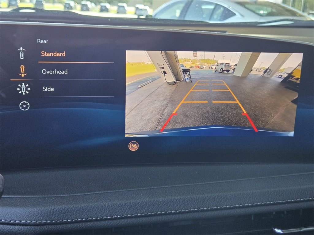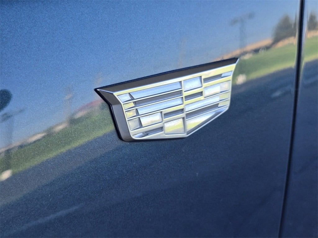 - Opens or closes when the system senses the key fob and the driver extends their foot under the left-hand side of the rear bumper over an image of the Cadillac Crest projected under the vehicle