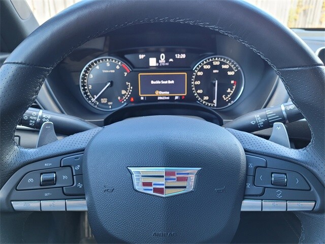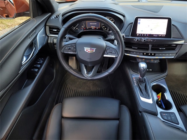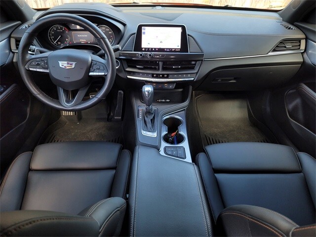 This 2022 Cadillac CT4 comes equipped with Cold Weather Package (Heated Driver & Front Passenger Seats and Heated Steering Wheel), Interior Protection Package (LPO) (All-Weather Cargo Mat (LPO) and All-Weather Floor Mats), Navigation & Bose Premium Audio Package, Preferred Equipment Group 1SE (4-Wheel Disc Antilock Brakes, Dual Digital Driver Information Center Display, HD Rear Vision Camera, Leather-Wrapped Thick Rim Steering Wheel, and LED Reflective Windshield Alert), Radio: Cadillac User Experience w/Embedded Nav (Bose Premium Surround Sound 14-Speaker System and SiriusXM w/360L), 4-Wheel Disc Brakes, 8 Speakers, ABS brakes, Air Conditioning, All-Wheel Drive Drivetrain, Alloy wheels, AM/FM radio: SiriusXM, Anti-whiplash front head restraints, Apple CarPlay/Android Auto, Auto High-beam Headlights, Auto-dimming door mirrors, Auto-dimming Rear-View mirror, Automatic Stop/Start w/Disable, Automatic temperature control, Brake assist, Brembo V Performance Front Brakes, Bumpers: body-color, Compass, Delay-off headlights, Driver 4-Way Power Lumbar Seat Adjuster, Driver door bin, Driver Seat Manual Cushion Length Adjustment, Driver Seat Power Seatback Bolster Adjustment, Driver vanity mirror, Dual front impact airbags, Dual front side impact airbags, Electronic Stability Control, Emergency communication system: OnStar and Cadillac connected services capable, Exterior Parking Camera Rear, Four wheel independent suspension, Front & Rear Blue Calipers, Front anti-roll bar, Front Bucket Seats, Front Center Armrest, Front dual zone A/C, Front License Plate Bracket, Front Passenger 4-Way Power Lumbar Seat Adjuster, Front Passenger 8-Way Power Seat Adjuster, Front Passenger Seat Manual Cushion Length Adjmt, Front reading lights, Front Seat Passenger Power Seatback Bolster Adjmt, Fully automatic headlights, Garage door transmitter, HD Radio, Heated door mirrors, Illuminated entry, Inteluxe Seats, Knee airbag, Leather Shift Knob, Leather steering wheel, Low tire pressure warning, Memory seat, Memory Settings, Not Equipped w/Fr & Rr Pk Assist/Rev Auto Braking, Occupant sensing airbag, Outside temperature display, Overhead airbag, Overhead console, Panic alarm, Passenger door bin, Passenger vanity mirror, Power door mirrors, Power driver seat, Power passenger seat, Power steering, Power windows, Premium 8-Speaker Audio System Feature, Radio data system, Radio: Cadillac User Experience, Rain sensing wipers, Rear anti-roll bar, Rear reading lights, Rear seat center armrest, Rear window defroster, Remote keyless entry, Speed control, Speed-sensing steering, Split folding rear seat, Spoiler, Sport steering wheel, Steering wheel mounted audio controls, Tachometer, Telescoping steering wheel, Tilt steering wheel, Traction control, Trip computer, Turn signal indicator mirrors, Variably intermittent wipers, Voltmeter, Wheels: 18" Alloy w/Pearl Nickel Finish, Wheels: 19" Alloy w/Gloss Black Finish (LPO), and Wheels: 19" Transit (LPO) CARFAX One-Owner. Clean CARFAX. 22/31 City/Highway MPG One Owner Carfax, 4-Wheel Disc Antilock Brakes, All-Weather Cargo Mat (LPO), All-Weather Floor Mats, Cold Weather Package, Dual Digital Driver Information Center Display, HD Rear Vision Camera, Heated Driver & Front Passenger Seats, Heated Steering Wheel, Interior Protection Package (LPO), Leather-Wrapped Thick Rim Steering Wheel, LED Reflective Windshield Alert, Navigation & Bose Premium Audio Package, Preferred Equipment Group 1SE, Radio: Cadillac User Experience w/Embedded Nav.