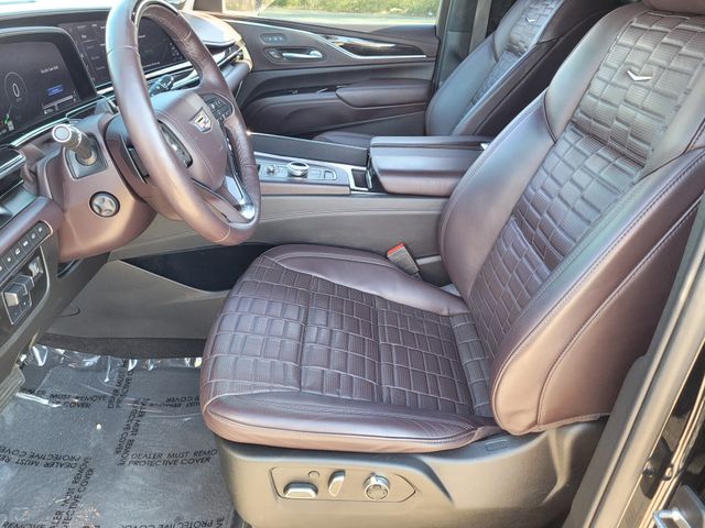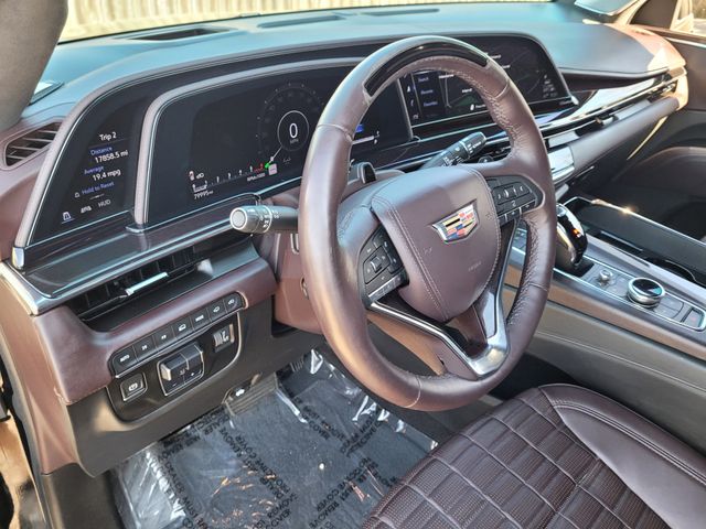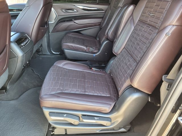 This 2022 Cadillac Escalade ESV comes equipped with Preferred Equipment Group 1SH (Adaptive Cruise Control, AKG Studio Reference 36-Speaker Audio System, Automatic Seat Belt Tightening, Automatic Stop/Start, Body-Color Door Handles, Door Lock & Latch Shields, Electronic Limited-Slip Differential, Enhanced Automatic Emergency Braking, Enhanced Automatic Parking Assist, Floor Console w/Covered Storage, Glass Breakage Sensor, Heated & Ventilated Driver & Front Passenger Seats, Hitch Guidance w/Hitch View, Integrated Trailer Brake Controller, Platinum Interior Trim, Power Lumbar Massage Driver Seat, Power Lumbar Massage Front Passenger Seat, Power Panoramic Tilt-Sliding Sunroof, Rear Camera Mirror, Rear Camera Mirror Washer, Rear Cross Traffic Alert, Rear Seat Entertainment System, Reconfigurable Full-Color Head-Up Display, Reverse Automatic Braking, Running Board Assist Steps, Smart Trailer Integration Indicator, Start/Stop System Disable Button, Theft-Deterrent Alarm System, Trailer Side Blind Zone Alert, Vehicle Inclination Sensor, Vehicle Interior Movement Sensor, and Front Auxiliary 12-volt Power Outlet), Touring Package (Air Ride Adaptive Suspension, Illuminating Front & Rear Sill Plates, and Soft Closing Front & Rear Doors), 4WD, Navigation System, 1.5 kW Heater/Defrost Air System, 16.9" Diagonal OLED Infotainment Screen, 2-Presets Memory For Driver Seat Adjuster, 3.23 Axle Ratio, 3rd row seats: split-bench, 4-Way Power Driver Lumbar Seat Adjuster, 4-Way Power Front Passenger Lumbar Seat Adjuster, 4-Wheel Disc Brakes, 8-Way Power Driver Seat Adjuster, 8-Way Power Front Passenger Seat Adjuster, A/V remote, ABS brakes, Adaptive suspension, Air Conditioning, Alloy wheels, AM/FM radio: SiriusXM with 360L, Apple CarPlay/Android Auto, Audio memory, Auto High-beam Headlights, Auto tilt-away steering wheel, Auto-dimming door mirrors, Automatic temperature control, Brake assist, Bumpers: body-color, Compass, Delay-off headlights, Door auto-latch, Driver door bin, Driver vanity mirror, Dual front impact airbags, Dual front side impact airbags, Electronic Stability Control, Emergency communication system: OnStar and Cadillac connected services capable, Engine Block Heater, Four wheel independent suspension, Front anti-roll bar, Front Bucket Seats, Front Center Armrest w/Storage, Front dual zone A/C, Front License Plate Bracket, Front reading lights, Full Semi-Aniline Leather Seats, Fully automatic headlights, Garage door transmitter, Genuine wood console insert, Genuine wood dashboard insert, Genuine wood door panel insert, HD Radio, Headphones, Heads-Up Display, Heated door mirrors, Heated Driver & Front Passenger Seats, Heated front seats, Heated rear seats, Heated steering wheel, Illuminated entry, Leather steering wheel, Low tire pressure warning, Magnetic Ride Control Suspension, Memory seat, Night Vision, Not Equipped w/Steering Column Lock, Occupant sensing airbag, Outside temperature display, Overhead airbag, Overhead console, Panic alarm, Passenger door bin, Passenger vanity mirror, Power door mirrors, Power driver seat, Power Liftgate, Power moonroof, Power passenger seat, Power steering, Power windows, Power-Retractable Assist Steps, Radio data system, Radio: AM/FM/SiriusXM w/Navigation, Rain sensing wipers, Rear air conditioning, Rear anti-roll bar, Rear audio controls, Rear reading lights, Rear window defroster, Rear window wiper, Remote keyless entry, Roof rack: rails only, Security system, SiriusXM w/360L, Speed control, Split folding rear seat, Spoiler, Steering wheel memory, Steering wheel mounted audio controls, Super Cruise, Tachometer, Teen Driver, Telescoping steering wheel, Tilt steering wheel, Traction control, Trip computer, Turn signal indicator mirrors, Variably intermittent wipers, Ventilated front seats, Voltmeter, Wheels: 22" 12-Spoke Polished Alloy, and Wireless Apple CarPlay/Wireless Android Auto. CARFAX One-Owner. Clean CARFAX. 20/26 City/Highway MPG One Owner Carfax, 4WD, Adaptive Cruise Control, AKG S