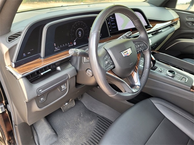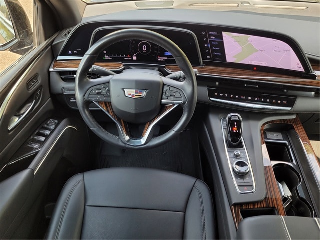 This 2022 Cadillac Escalade ESV comes equipped with All-Weather Floor Liner Package (LPO), Floor Liner Package (LPO) (All-Weather Integrated Cargo Liner (LPO)), Preferred Equipment Group 1SA (Automatic Stop/Start and Start/Stop System Disable Button), Navigation System, 16.9" Diagonal OLED Infotainment Screen, 19 Speakers, 2-Presets Memory For Driver Seat Adjuster, 3.23 Axle Ratio, 3rd row seats: split-bench, 4-Way Power Driver Lumbar Seat Adjuster, 4-Way Power Front Passenger Lumbar Seat Adjuster, 4-Wheel Disc Brakes, 8-Way Power Driver Seat Adjuster, 8-Way Power Front Passenger Seat Adjuster, ABS brakes, Air Conditioning, AKG Studio 19-Speaker Audio System, Alloy wheels, AM/FM radio: SiriusXM with 360L, Apple CarPlay/Android Auto, Audio memory, Auto High-beam Headlights, Auto tilt-away steering wheel, Auto-dimming door mirrors, Automatic temperature control, Brake assist, Bumpers: body-color, Compass, Delay-off headlights, Driver door bin, Driver vanity mirror, Dual front impact airbags, Dual front side impact airbags, Electronic Stability Control, Emergency communication system: OnStar and Cadillac connected services capable, Four wheel independent suspension, Front anti-roll bar, Front Bucket Seats, Front Center Armrest w/Storage, Front dual zone A/C, Front License Plate Bracket, Front reading lights, Fully automatic headlights, Garage door transmitter, HD Radio, Heated door mirrors, Heated Driver & Front Passenger Seats, Heated front seats, Heated rear seats, Heated steering wheel, Illuminated entry, Inteluxe Seats, Leather steering wheel, Low tire pressure warning, Memory seat, Not Equipped w/Steering Column Lock, Occupant sensing airbag, Outside temperature display, Overhead airbag, Overhead console, Panic alarm, Passenger door bin, Passenger vanity mirror, Power door mirrors, Power driver seat, Power Liftgate, Power passenger seat, Power steering, Power windows, Premium Smooth Ride Suspension, Puddle Lamps w/Cadillac Crest (LPO), Radio data system, Radio: AM/FM/SiriusXM w/Navigation, Rain sensing wipers, Rear air conditioning, Rear anti-roll bar, Rear Cargo Shade (LPO), Rear reading lights, Rear window defroster, Rear window wiper, Remote keyless entry, Roof rack: rails only, SiriusXM w/360L, Speed control, Split folding rear seat, Spoiler, Steering wheel memory, Steering wheel mounted audio controls, Tachometer, Teen Driver, Telescoping steering wheel, Tilt steering wheel, Traction control, Trip computer, Turn signal indicator mirrors, Variably intermittent wipers, Voltmeter, Wheels: 22" 14-Spoke Alloy w/Bright Silver Finish, and Wireless Apple CarPlay/Wireless Android Auto. Carfax no accidents, All-Weather Floor Liner Package (LPO), All-Weather Integrated Cargo Liner (LPO), Automatic Stop/Start, Floor Liner Package (LPO), Navigation System, Preferred Equipment Group 1SA, Start/Stop System Disable Button.