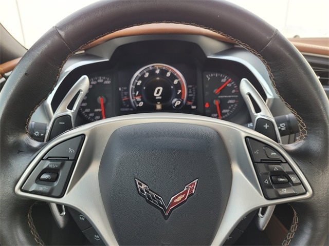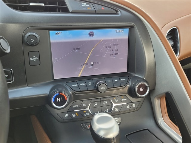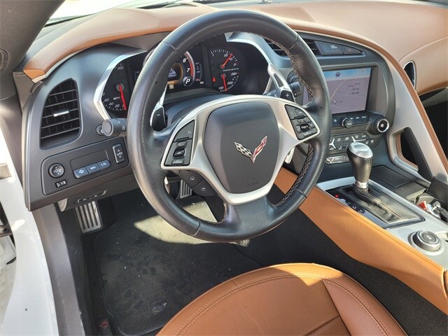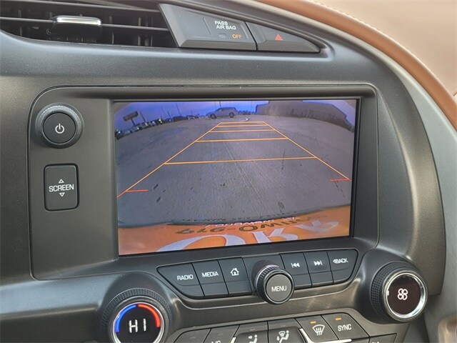 This 2014 Chevrolet Corvette Stingray comes equipped with Battery Protection Package, Custom Leather Wrapped Interior Package, Memory Package, Preferred Equipment Group 3LT (3LT Interior Trim, Auto-Dimming Inside Frameless Rearview Mirror, Body-Color Outside Heated Power-Adjustable Mirrors, Cargo Net, Head-Up Display, Heated & Vented Driver & Passenger Seats, Navigation System, Power Lumbar/Bolster Seat Adjusters, Radio: Chevrolet MyLink AM/FM Stereo, Theft Deterrent System, and Universal Home Remote), 18" x 8.5" Fr & 19" x 10" Rr 5-Spoke Wheels, 2.56 Limited Slip Rear Axle Ratio, 4-Wheel Disc Brakes, 8-Way Driver & Passenger Seat Adjusters, 9 Speakers, ABS brakes, Air Conditioning, Alloy wheels, AM/FM radio: SiriusXM, Automatic temperature control, Bose Premium 9-Speaker Audio System Feature, Bumpers: body-color, Compass, Convertible roof lining, Delay-off headlights, Driver door bin, Driver vanity mirror, Dual front impact airbags, Dual front side impact airbags, Electronic Stability Control, Emergency communication system: OnStar Directions & Connections, Exterior Parking Camera Rear, Four wheel independent suspension, Front anti-roll bar, Front Bucket Seats, Front Center Armrest, Front dual zone A/C, Front License Plate Bracket, Front reading lights, Fully automatic headlights, Glass rear window, GT Bucket Seats, Heated door mirrors, High-Intensity Discharge Headlights, Illuminated entry, Leather Shift Knob, Leather steering wheel, Low tire pressure warning, Mulan Perforated Leather Seating Surfaces, Occupant sensing airbag, Outside temperature display, Panic alarm, Passenger door bin, Passenger vanity mirror, Performance Exhaust, Power convertible roof, Power door mirrors, Power driver seat, Power passenger seat, Power steering, Power windows, Premium audio system: Chevrolet MyLink, Radio data system, Rear anti-roll bar, Rear window defroster, Remote keyless entry, Remote Vehicle Starter System, SiriusXM Satellite Radio, Speed control, Speed-sensing steering, Spoiler, Sport steering wheel, Steering wheel mounted audio controls, Tachometer, Telescoping steering wheel, Tilt steering wheel, Traction control, Trip computer, Variably intermittent wipers, and Voltmeter. 16/28 City/Highway MPG 3LT Interior Trim, Auto-Dimming Inside Frameless Rearview Mirror, Battery Protection Package, Body-Color Outside Heated Power-Adjustable Mirrors, Cargo Net, Custom Leather Wrapped Interior Package, Head-Up Display, Heated & Vented Driver & Passenger Seats, Memory Package, Navigation System, Power Lumbar/Bolster Seat Adjusters, Preferred Equipment Group 3LT, Radio: Chevrolet MyLink AM/FM Stereo, Theft Deterrent System, Universal Home Remote.
