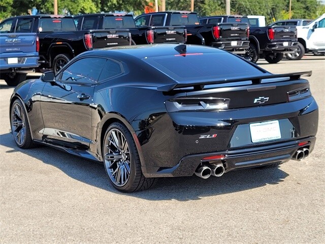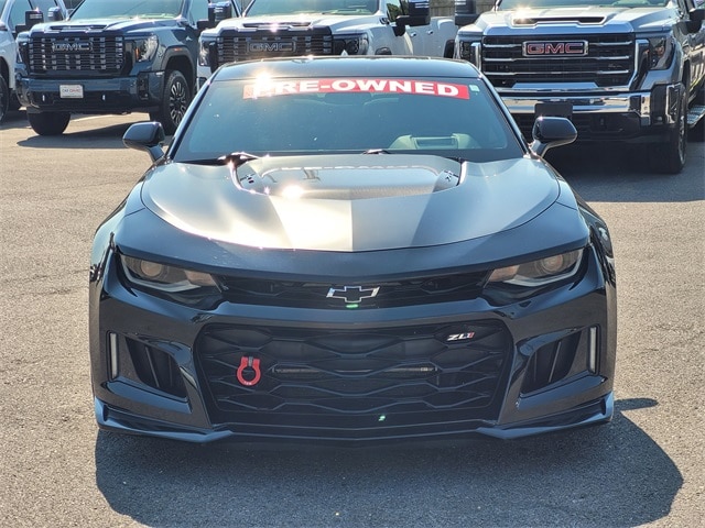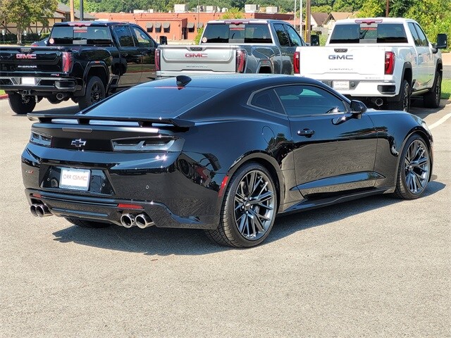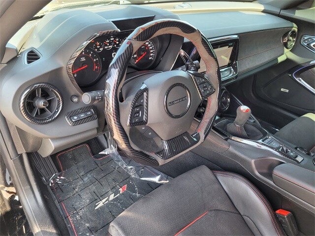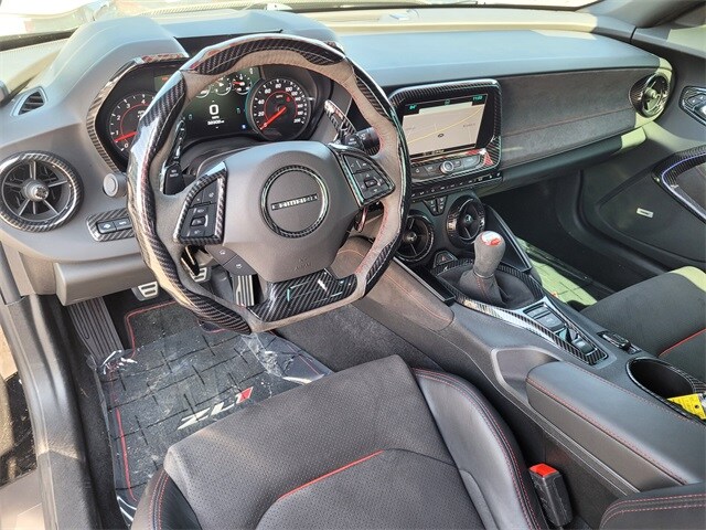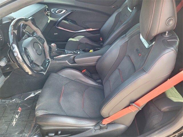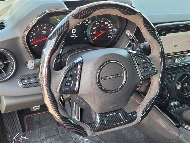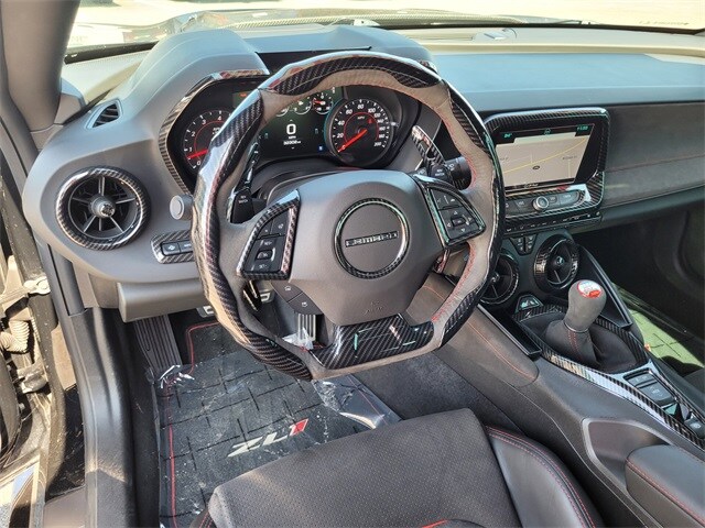 This 2018 Chevrolet Camaro comes equipped with Preferred Equipment Group ZL1, 2 USB Ports & Auxiliary Input Jack, 4-Wheel Disc Brakes, 6-Way Power Front Passenger Seat Adjuster, 8-Way Power Driver Seat Adjuster, 9 Speakers, ABS brakes, Adaptive suspension, Air Conditioning, Alloy wheels, AM/FM radio: SiriusXM, Apple CarPlay/Android Auto, Auto-dimming door mirrors, Auto-dimming Rear-View mirror, Automatic temperature control, Bose Premium 9-Speaker Audio System Feature, Brake assist, Bumpers: body-color, Compass, Delay-off headlights, Driver door bin, Driver vanity mirror, Dual front impact airbags, Dual front side impact airbags, Electronic Stability Control, Emergency communication system: OnStar Guidance, Exposed Carbon Fiber Weave Hood Insert, Exterior Parking Camera Rear, Four wheel independent suspension, Front anti-roll bar, Front Bucket Seats, Front Center Armrest, Front dual zone A/C, Front fog lights, Front reading lights, Fully automatic headlights, Garage door transmitter, Heads-Up Display, Heated door mirrors, Heated Driver & Front Passenger Seats, Heated front seats, Heated steering wheel, High-Intensity Discharge Headlights, Illuminated entry, Knee airbag, Leather-Trimmed Seat Trim w/Sueded Inserts, Low tire pressure warning, Memory seat, Occupant sensing airbag, Outside temperature display, Overhead airbag, Panic alarm, Passenger door bin, Passenger vanity mirror, Power door mirrors, Power driver seat, Power passenger seat, Power steering, Power Sunroof, Power windows, Premium audio system: Chevrolet MyLink, Radio data system, Radio: Chevrolet MyLink Audio System, Radio: Chevrolet MyLink w/Navigation, Rear anti-roll bar, Rear window defroster, RECARO Performance Front Bucket Seats, Remote keyless entry, Security system, SiriusXM Satellite Radio, Speed control, Speed-sensing steering, Spoiler, Sport steering wheel, Steering wheel mounted audio controls, Tachometer, Telescoping steering wheel, Tilt steering wheel, Traction control, Trip computer, Variably intermittent wipers, Ventilated Driver & Front Passenger Seats, Ventilated front seats, Voltmeter, and Wheels: 20" x 10" Fr & 20" x 11" Rr Dark Graphite. Clean CARFAX. Carfax no accidents, Preferred Equipment Group ZL1.