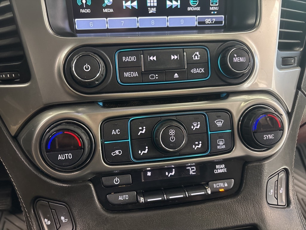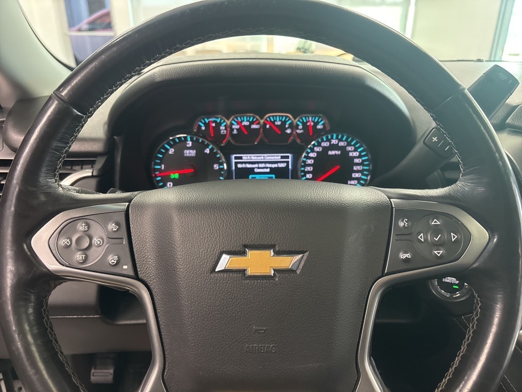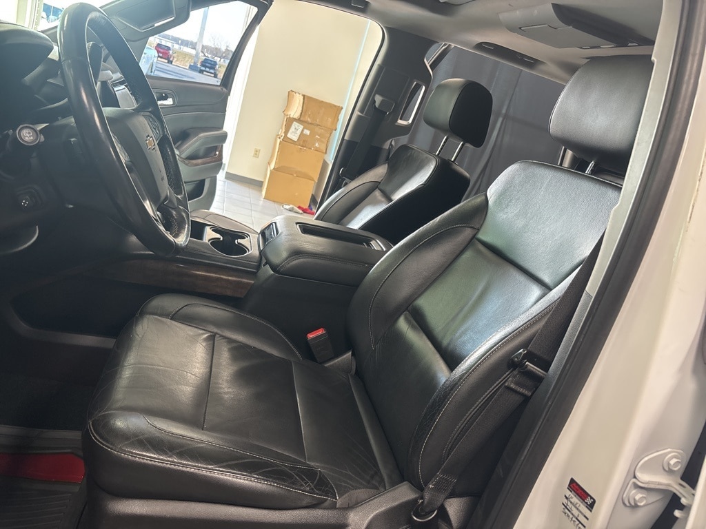 New Price! Clean CARFAX. Summit White LT RWD 6-Speed Automatic Electronic with Overdrive EcoTec3 5.3L V8 **LEATHER INTERIOR**, **KEYLESS ENTRY**, **REMOTE START**, **ADAPTIVE CRUISE CONTROL**, **WE DELIVER ANYWHERE**, **REAR VIEW CAMERA**, **BLUETOOTH HANDES FREE CALLING**, Black Leather, 18" x 8.5" Aluminum Wheels, 1st & 2nd Row Color-Keyed Carpeted Floor Mats, 2nd Row 60/40 Split-Folding Manual Bench, 2nd Row Pwr Release 60/40 Split Folding Bench Seat, 3.08 Rear Axle Ratio, 3rd Row 60/40 Power Fold Split-Bench, 3rd Row Manual 60/40 Split-Folding Fold Flat Bench, 3rd row seats: split-bench, 4-Wheel Antilock Disc Brakes w/Brake Assist, 4-Wheel Disc Brakes, 5 12-Volt Auxiliary Power Outlets, 9 Speakers, ABS brakes, Adjustable pedals, Air Conditioning, Alloy wheels, AM/FM radio: SiriusXM, Apple CarPlay/Android Auto, Auto High-beam Headlights, Auto-Dimming Inside Rear-View Mirror, Auto-dimming Rear-View mirror, Automatic temperature control, Black Assist Steps, Bluetooth® For Phone, Bose Premium 9-Speaker System, Brake assist, Bumpers: body-color, Cargo Net, CD player, Color-Keyed Carpeting Floor Covering, Compass, Delay-off headlights, Driver door bin, Driver Inboard & Front Passenger Airbags, Driver vanity mirror, Dual front impact airbags, Dual front side impact airbags, Electronic Cruise Control w/Set & Resume Speed, Electronic Stability Control, Emergency communication system: OnStar Guidance, Enhanced Driver Alert Package (Y86), Extended-Range Remote Keyless Entry, Exterior Parking Camera Rear, Floor Console, Fog Lamps, Forward Collision Alert, Front & Rear Park Assist, Front anti-roll bar, Front Bucket Seats, Front Center Armrest, Front dual zone A/C, Front Heated Reclining Bucket Seats, Front Passenger 6-Way Power Seat Adjuster, Front reading lights, Front wheel independent suspension, Fully automatic headlights, Garage door transmitter, Hands Free Power Liftgate, HD Radio, Heated 2nd Row Seats, Heated door mirrors, Heated front seats, Heated Leather Wrapped Steering Wheel, Illuminated entry, IntelliBeam Headlamps, Lane Change Alert w/Side Blind Zone Alert, Lane Keep Assist w/Lane Departure Warning, Leather-Appointed Seat Trim, Leather-Wrapped Steering Wheel, Low Speed Forward Automatic Braking, Low tire pressure warning, Luxury Package, Memory seat, Memory Settings, Occupant sensing airbag, OnStar Basic Plan For 5 Years, Outside temperature display, Overhead airbag, Overhead console, Panic alarm, Passenger door bin, Passenger vanity mirror, Passive Entry System, Pedal memory, Power door mirrors, Power driver seat, Power Liftgate, Power passenger seat, Power steering, Power Sunroof, Power Tilt & Telescopic Steering Column w/Memory, Power windows, Power-Adjustable Accelerator & Brake Pedals, Power-Folding Heated Outside Mirrors, Preferred Equipment Group 1LT, Premium audio system: Chevrolet MyLink, Premium Smooth Ride Suspension Package, Push Button Keyless Start, Radio: Chevrolet MyLink AM/FM Stereo, Radio: Chevrolet MyLink w/Nav/AM/FM Stereo, Rain sensing wipers, Rear air conditioning, Rear anti-roll bar, Rear Cross-Traffic Alert, Rear Park Assist w/Audible Warning, Rear reading lights, Rear Seat Blu-Ray/DVD Entertainment System, Rear seat center armrest, Rear window defroster, Rear window wiper, Remote keyless entry, Remote Vehicle Start, Roof rack: rails only, Roof-Mounted Luggage Rack Side Rails, Security system, Single-Slot CD/MP3 Player, SiriusXM NavTraffic, SiriusXM Satellite Radio, Speed control, Speed-sensing steering, Split folding rear seat, Spoiler, Steering wheel mounted audio controls, Sun, Entertainment & Destinations Package, Tachometer, Telescoping steering wheel, Tilt steering wheel, Traction control, Trip computer, Universal Home Remote, Variably intermittent wipers, Voltmeter.