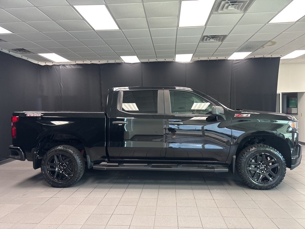 CARFAX One-Owner. Clean CARFAX. Black Custom Trail Boss 4WD 6-Speed Automatic Electronic with Overdrive EcoTec3 5.3L V8 6-Speed Automatic Electronic with Overdrive, 4WD, Black Cloth, 170 Amp Alternator, 3.42 Rear Axle Ratio, 3.5" Diagonal Monochromatic Display, 4G LTE Wi-Fi Hot Spot Capable, All-Weather Floor Liner (LPO) (AAK), Alloy wheels, Auto-Locking Rear Differential, Auxiliary External Transmission Oil Cooler, Black Dual Exhaust Tips, Bluetooth® For Phone, Brake assist, Chevrolet Connected Access Capable, Chevytec Spray-On Black Bedliner, Color-Keyed Carpeting Floor Covering, Compass, Custom Convenience Package, Deep-Tinted Glass, Delay-off headlights, Driver vanity mirror, Dual Exhaust w/Polished Outlets, Dual front impact airbags, Dual front side impact airbags, Electric Rear-Window Defogger, Electronic Cruise Control, Electronic Stability Control, EZ Lift Power Lock & Release Tailgate, Front License Plate Kit, Front Rubberized Vinyl Floor Mats, Front wheel independent suspension, Fully automatic headlights, Heated door mirrors, Heavy-Duty Air Filter, High Gloss Black Grille, Hill Descent Control, Hitch Guidance, Infotainment Package, LED Cargo Area Lighting, Manual Tilt Wheel Steering Column, Midnight Edition, Occupant sensing airbag, OnStar & Chevrolet Connected Services Capable, Overhead console, Panic alarm, Passenger door bin, Passenger vanity mirror, Performance Red Recovery Hooks, Polished Exhaust Tip, Power Door Locks, Power door mirrors, Power Front Windows w/Driver Express Up/Down, Power Front Windows w/Passenger Express Down, Power Rear Windows w/Express Down, Preferred Equipment Group 2CX, Premium audio system: Chevrolet Infotainment 3, Radio data system, Rear 60/40 Folding Bench Seat (Folds Up), Rear Rubberized-Vinyl Floor Mats, Remote Keyless Entry, Remote Vehicle Starter System, Security system, Silver-Hammer Interior Trim Kit (LPO), SiriusXM Radio, Speed control, Standard Tailgate, Suspension Package, Theft Deterrent System (Unauthorized Entry), Trailering Package, Underseat Storage (LPO), Variably intermittent wipers, Wheels: 18" x 8.5" Black Painted Aluminum, Wheels: 20" x 9" High Gloss Black Painted Alum.