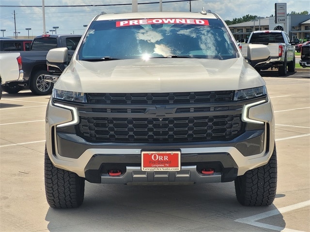 This 2021 Chevrolet Tahoe comes equipped with Advanced Trailering Package (Advanced Trailering System, Hitch Guidance w/Hitch View, and Integrated Trailer Brake Controller), Driver Alert Package (Front & Rear Park Assist, Lane Change Alert w/Side Blind Zone Alert, Lane Keep Assist w/Lane Departure Warning, and Rear Cross Traffic Alert), License Plate Front Mounting Package, Luxury Package (2nd Row Pwr Release 60/40 Split-Folding Bench Seat, 3rd Row 60/40 Power-Folding Split-Bench Seat, Automatic Heated Steering Wheel, HD Surround Vision, Heated 2nd Row Outboard Seats, Memory Settings, Outside Heated Power-Adjustable Mirrors, Power Tilt & Telescopic Steering Column, and Rear Pedestrian Alert), Max Trailering Package (Extra Capacity Cooling System), Off-Road Capability Package (Air Ride Adaptive Suspension, Enhanced Driver Information Center, and Magnetic Ride Control Suspension), Preferred Equipment Group 2Z7 (1st & 2nd Row Color-Keyed Carpeted Floor Mats, 2 USB Data Ports, 2-Speed Active Electronic AutoTrac Transfer Case, Auto-Dimming Inside Rear-View Mirror, Black Tubular Assist Steps, Bright Front & Rear Door Sill Plates, Color-Keyed Carpeting Floor Covering, Driver & Front Outboard Passenger Airbags, Floor Console w/Storage Area, Front High-Approach Angle Fascia, Hands-Free Rear Power Programmable Liftgate, HD Radio, Hill Descent Control, Infotainment Display, Leather-Wrapped Steering Wheel, LED Daytime Running Lamps, Memory Settings for Driver, Red Horizontal-Mounted Recovery Hooks, Remote Start, SiriusXM Radio w/360L, and Universal Home Remote), Rear Media & Nav Package (Radio: Chevrolet Infotainment 3 Premium System, Rear Seat Media System, and SiriusXM NavTraffic), Z71 Off-Road Package, 4WD, Black Leather, 10-Way Power Driver & Passenger Seat Adjusters, 3.23 Rear Axle Ratio, 3rd row seats: split-bench, 4-Wheel Disc Brakes, 9 Speakers, ABS brakes, Air Conditioning, Alloy wheels, AM/FM radio: SiriusXM with 360L, Apple CarPlay/Android Auto, Auto High-beam Headlights, Auto-dimming Rear-View mirror, Automatic temperature control, Bose 9-Speaker Stereo Audio System Feature, Brake assist, Bumpers: body-color, Compass, Delay-off headlights, Driver door bin, Driver vanity mirror, Dual front impact airbags, Dual front side impact airbags, Dual-Pane Power Panoramic Sunroof, Electronic Stability Control, Emergency communication system: OnStar and Chevrolet connected services capable, Four wheel independent suspension, Front anti-roll bar, Front Bucket Seats, Front Center Armrest, Front dual zone A/C, Front High-Back Reclining Bucket Seats, Front reading lights, Fully automatic headlights, Garage door transmitter, Heated door mirrors, Heated Driver & Front Passenger Seats, Heated front seats, Illuminated entry, Leather Seat Trim, Leather steering wheel, Low tire pressure warning, Memory seat, Occupant sensing airbag, Outside temperature display, Overhead airbag, Overhead console, Panic alarm, Passenger door bin, Passenger vanity mirror, Power door mirrors, Power driver seat, Power Liftgate, Power passenger seat, Power Release 2nd Row Bucket Seats, Power steering, Power windows, Premium audio system: Chevrolet Infotainment 3, Premium Smooth Ride Suspension, Radio: Chevrolet Infotainment 3 Plus System, Rain sensing wipers, Rear air conditioning, Rear anti-roll bar, Rear reading lights, Rear seat center armrest, Rear window defroster, Rear window wiper, Remote keyless entry, Roof rack: rails only, Security system, Speed control, Speed-sensing steering, Split folding rear seat, Spoiler, Steering wheel mounted audio controls, Tachometer, Telescoping steering wheel, Tilt steering wheel, Traction control, Trip computer, Variably intermittent wipers, Voltmeter, and Wheels: 20" x 9" Machined Aluminum. 4WD, Black Leather, 1st & 2nd Row Color-Keyed Carpeted Floor Mats, 2 USB Data Ports, 2-Speed Active Electronic AutoTrac Transfer Case, 2nd Row Pwr Release 60/40 Split-Folding Bench Seat, 3rd Row 60/40 Power-Folding Split-Bench Seat, Advanced Tr