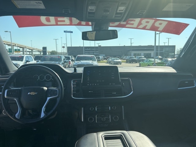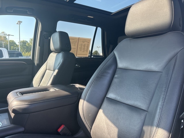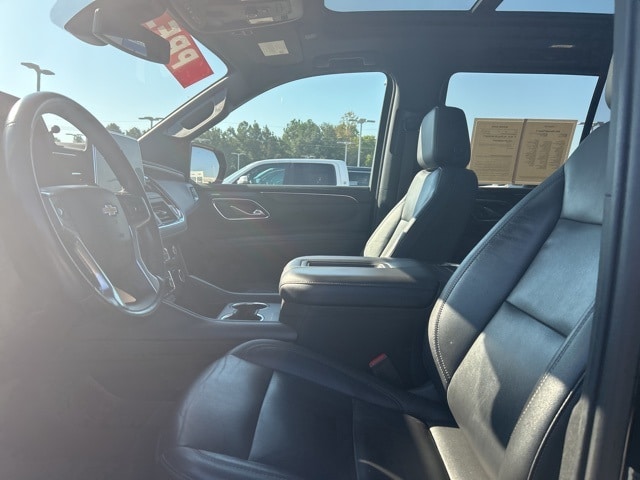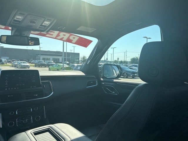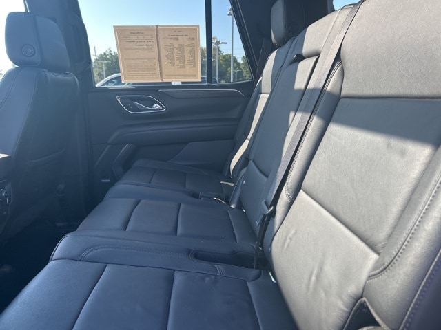 The 2021 Chevrolet Tahoe comes with the following features; License Plate Front Mounting Package, Preferred Equipment Group 1LT (1st & 2nd Row Color-Keyed Carpeted Floor Mats, 2 USB Data Ports, Auto-Dimming Inside Rear-View Mirror, Bright Front & Rear Door Sill Plates, Color-Keyed Carpeting Floor Covering, Driver & Front Outboard Passenger Airbags, Floor Console w/Storage Area, Hands-Free Rear Power Programmable Liftgate, HD Radio, Infotainment Display, Leather-Wrapped Steering Wheel, LED Daytime Running Lamps, Memory Settings for Driver, Remote Start, SiriusXM Radio w/360L, and Universal Home Remote), Black Leather, 10-Way Power Driver & Passenger Seat Adjusters, 3.23 Rear Axle Ratio, 3rd row seats: split-bench, 4-Wheel Disc Brakes, 9 Speakers, ABS brakes, Air Conditioning, Alloy wheels, AM/FM radio: SiriusXM with 360L, Apple CarPlay/Android Auto, Auto High-beam Headlights, Auto-dimming Rear-View mirror, Automatic temperature control, Bose 9-Speaker Stereo Audio System Feature, Brake assist, Bumpers: body-color, Compass, Delay-off headlights, Driver door bin, Driver vanity mirror, Dual front impact airbags, Dual front side impact airbags, Dual-Pane Power Panoramic Sunroof, Electronic Stability Control, Emergency communication system: OnStar and Chevrolet connected services capable, Four wheel independent suspension, Front anti-roll bar, Front Bucket Seats, Front Center Armrest, Front dual zone A/C, Front High-Back Reclining Bucket Seats, Front reading lights, Fully automatic headlights, Garage door transmitter, Heated door mirrors, Heated Driver & Front Passenger Seats, Heated front seats, Illuminated entry, Leather Seat Trim, Leather steering wheel, Low tire pressure warning, Memory seat, Occupant sensing airbag, Outside temperature display, Overhead airbag, Overhead console, Panic alarm, Passenger door bin, Passenger vanity mirror, Power door mirrors, Power driver seat, Power Liftgate, Power passenger seat, Power steering, Power windows, Premium audio system: Chevrolet Infotainment 3, Premium Smooth Ride Suspension, Radio: Chevrolet Infotainment 3 Plus System, Rain sensing wipers, Rear air conditioning, Rear anti-roll bar, Rear reading lights, Rear seat center armrest, Rear window defroster, Rear window wiper, Remote keyless entry, Roof rack: rails only, Security system, Speed control, Speed-sensing steering, Split folding rear seat, Spoiler, Steering wheel mounted audio controls, Tachometer, Telescoping steering wheel, Tilt steering wheel, Traction control, Trip computer, Variably intermittent wipers, Voltmeter, and Wheels: 18" x 8.5" Bright Silver Painted Aluminum. Black Leather.