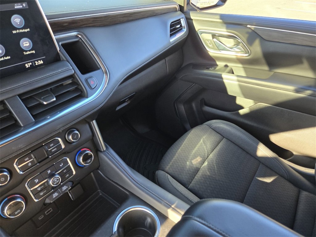 This 2021 Chevrolet Tahoe comes equipped with, 4WD, Jet Black Cloth, 1st & 2nd Row Color-Keyed Carpeted Floor Mats, 2 USB Data Ports, 3.23 Rear Axle Ratio, 3rd row seats: split-bench, 4-Wheel Disc Brakes, 6 Speakers, 6-Speaker Audio System Feature, ABS brakes, Air Conditioning, Alloy wheels, AM/FM radio: SiriusXM with 360L, Apple CarPlay/Android Auto, Auto High-beam Headlights, Automatic temperature control, Brake assist, Bumpers: body-color, Color-Keyed Carpeting Floor Covering, Compass, Delay-off headlights, Driver & Front Outboard Passenger Airbags, Driver door bin, Driver vanity mirror, Dual front impact airbags, Dual front side impact airbags, Electronic Stability Control, Emergency communication system: OnStar and Chevrolet connected services capable, Floor Console w/Storage Area, Four wheel independent suspension, Front anti-roll bar, Front Bucket Seats, Front Center Armrest, Front dual zone A/C, Front High-Back Reclining Bucket Seats, Front reading lights, Fully automatic headlights, HD Radio, Heated door mirrors, Illuminated entry, Infotainment Display, Leather steering wheel, Leather-Wrapped Steering Wheel, LED Daytime Running Lamps, License Plate Front Mounting Package, Low tire pressure warning, Occupant sensing airbag, Outside temperature display, Overhead airbag, Overhead console, Panic alarm, Passenger door bin, Passenger vanity mirror, Power door mirrors, Power driver seat, Power passenger seat, Power steering, Power windows, Preferred Equipment Group 1LS, Premium audio system: Chevrolet Infotainment 3, Premium Cloth Seat Trim, Premium Smooth Ride Suspension, Radio: Chevrolet Infotainment 3 Plus System, Rain sensing wipers, Rear air conditioning, Rear anti-roll bar, Rear reading lights, Rear seat center armrest, Rear window defroster, Rear window wiper, Remote keyless entry, Remote Start, Roof rack: rails only, Security system, SiriusXM Radio w/360L, Speed control, Speed-sensing steering, Split folding rear seat, Spoiler, Steering wheel mounted audio controls, Tachometer, Telescoping steering wheel, Tilt steering wheel, Traction control, Trip computer, Variably intermittent wipers, Voltmeter, Wheels: 18" x 8.5" Bright Silver Painted Aluminum, 4WD, Jet Black Cloth.