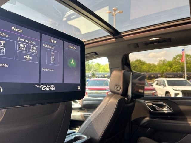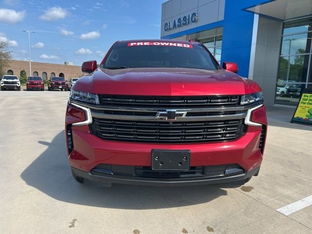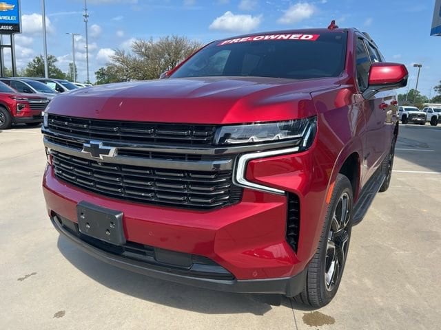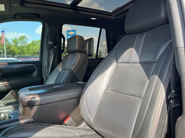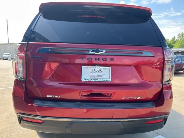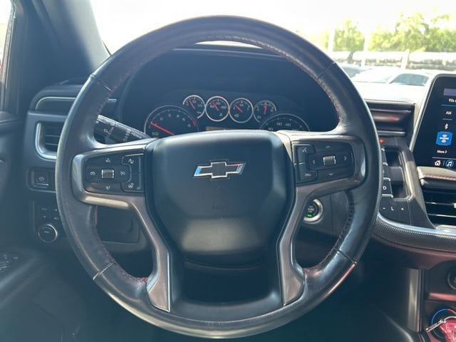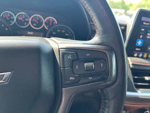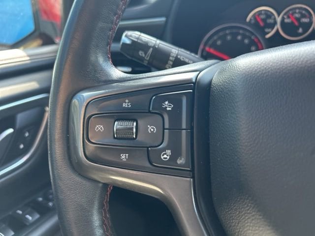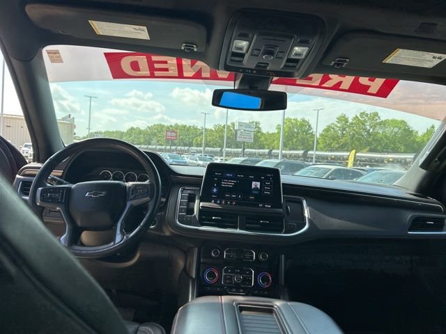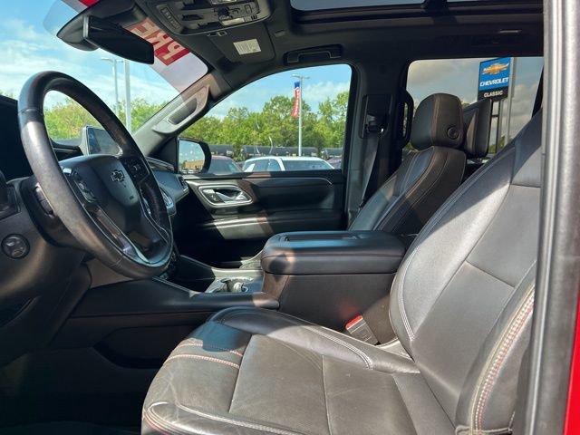 Clean CARFAX. 20/26 City/Highway MPG Cherry Red 2021 Chevrolet Tahoe RST 3.0L I6 4WD 10-Speed Automatic with Overdrive The 2021 Chevrolet Tahoe comes with the following features; Driver Alert Package (Front & Rear Park Assist, Lane Change Alert w/Side Blind Zone Alert, Lane Keep Assist w/Lane Departure Warning, and Rear Cross Traffic Alert), License Plate Front Mounting Package, Luxury Package (2nd Row Pwr Release 60/40 Split-Folding Bench Seat, 3rd Row 60/40 Power-Folding Split-Bench Seat, Automatic Heated Steering Wheel, HD Surround Vision, Heated 2nd Row Outboard Seats, Memory Settings, Outside Heated Power-Adjustable Mirrors, Power Tilt & Telescopic Steering Column, and Rear Pedestrian Alert), Preferred Equipment Group 1SP (1st & 2nd Row Color-Keyed Carpeted Floor Mats, 2 USB Data Ports, Auto-Dimming Inside Rear-View Mirror, Bright Front & Rear Door Sill Plates, Color-Keyed Carpeting Floor Covering, Driver & Front Outboard Passenger Airbags, Floor Console w/Storage Area, Hands-Free Rear Power Programmable Liftgate, HD Radio, Infotainment Display, Leather-Wrapped Steering Wheel, LED Daytime Running Lamps, Memory Settings for Driver, Remote Start, SiriusXM Radio w/360L, and Universal Home Remote), Rear Media & Nav Package (Radio: Chevrolet Infotainment 3 Premium System, Rear Seat Media System, and SiriusXM NavTraffic), 4WD, Gideon/Very Dark Atmosphere w/Leather Seat Trim, 1.5 kW Heater/Defrost Air System, 10-Way Power Driver & Passenger Seat Adjusters, 250-Amp Alternator, 3.23 Rear Axle Ratio, 3rd row seats: split-bench, 4-Wheel Disc Brakes, 9 Speakers, 900 Cold-Cranking Amps Battery, ABS brakes, Air Conditioning, All-Weather Cargo Mat (LPO), Alloy wheels, AM/FM radio: SiriusXM with 360L, Apple CarPlay/Android Auto, Auto High-beam Headlights, Auto-dimming Rear-View mirror, Automatic temperature control, Black Roof Rack Cross Rails, Bose 9-Speaker Stereo Audio System Feature, Brake assist, Bumpers: body-color, Compass, Delay-off headlights, Diesel B20 Fuel, Driver door bin, Driver vanity mirror, Dual front impact airbags, Dual front side impact airbags, Dual-Pane Power Panoramic Sunroof, Electronic Stability Control, Emergency communication system: OnStar and Chevrolet connected services capable, Four wheel independent suspension, Front anti-roll bar, Front Bucket Seats, Front Center Armrest, Front dual zone A/C, Front High-Back Reclining Bucket Seats, Front reading lights, Fully automatic headlights, Garage door transmitter, Heated door mirrors, Heated Driver & Front Passenger Seats, Heated front seats, Illuminated entry, Leather steering wheel, Low tire pressure warning, Memory seat, Occupant sensing airbag, Outside temperature display, Overhead airbag, Overhead console, Panic alarm, Passenger door bin, Passenger vanity mirror, Perforated Leather Seat Trim, Power door mirrors, Power driver seat, Power Liftgate, Power passenger seat, Power Release 2nd Row Bucket Seats, Power steering, Power windows, Premium audio system: Chevrolet Infotainment 3, Premium Smooth Ride Suspension, Radio: Chevrolet Infotainment 3 Plus System, Rain sensing wipers, Rear air conditioning, Rear anti-roll bar, Rear reading lights, Rear seat center armrest, Rear window defroster, Rear window wiper, Remote keyless entry, Roof rack: rails only, Security system, Set of 4 Wheel Locks (LPO), Speed control, Speed-sensing steering, Split folding rear seat, Spoiler, Steering wheel mounted audio controls, Tachometer, Telescoping steering wheel, Tilt steering wheel, Traction control, Trip computer, Upper & Lower Active Aero Shutters, Variably intermittent wipers, Voltmeter, and Wheels: 22 x 9 Bright Machined. 4WD, Gideon/Very Dark Atmosphere w/Leather Seat Trim.