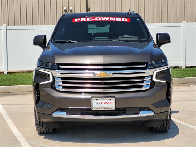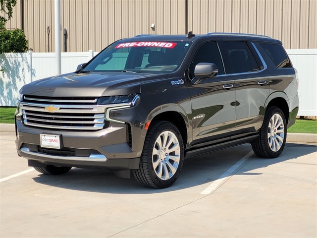 This 2021 Chevrolet Tahoe comes equipped with Advanced Trailering Package (Advanced Trailering System, Hitch Guidance w/Hitch View, Integrated Trailer Brake Controller, and Trailer Side Blind Zone Alert), License Plate Front Mounting Package, Max Trailering Package (Extra Capacity Cooling System), Preferred Equipment Group 3LZ (15" Diagonal Multi-Color Head-Up Display, 1st & 2nd Row Color-Keyed Carpeted Floor Mats, 2 USB Data Ports, 2-Speed Active Electronic AutoTrac Transfer Case, 3rd Row 60/40 Power-Folding Split-Bench Seat, Automatic Heated Steering Wheel, Bright Front & Rear Door Sill Plates, Chrome Door Handles w/Body-Color Strip, Color-Keyed Carpeting Floor Covering, Driver & Front Outboard Passenger Airbags, Dual Exhaust System, Enhanced Driver Information Center, Floor Console w/Storage Area, Front & Rear Park Assist, Hands-Free Rear Power Programmable Liftgate, HD Radio, HD Surround Vision, Heated 2nd Row Outboard Seats, Hill Descent Control, Infotainment Display, Inside Rearview Auto-Dimming Rear Camera Mirror, Lane Change Alert w/Side Blind Zone Alert, Lane Keep Assist w/Lane Departure Warning, Leather-Wrapped Steering Wheel, LED Daytime Running Lamps, Memory Settings, Outside Heated Power-Adjustable Mirrors, Power Release 2nd Row Bucket Seats, Power Tilt & Telescopic Steering Column, Rear Camera Mirror Washer, Rear Cross Traffic Alert, Rear Pedestrian Alert, Remote Start, Safety Alert Seat, SiriusXM NavTraffic, SiriusXM Radio w/360L, and Universal Home Remote), Premium Package (Adaptive Cruise Control, Dual-Pane Power Panoramic Sunroof, Power-Retractable Assist Steps, and Enhanced Automatic Emergency Braking), 4WD, Jet Black/Mocha Leather, Navigation System, 10 Speakers, 12-Way Power Driver & Passenger Seat Adjusters, 3.23 Rear Axle Ratio, 3rd row seats: split-bench, 4-Wheel Disc Brakes, ABS brakes, Adaptive suspension, Air Conditioning, Alloy wheels, AM/FM radio: SiriusXM with 360L, Apple CarPlay/Android Auto, Auto High-beam Headlights, Auto-dimming door mirrors, Auto-dimming Rear-View mirror, Auto-leveling suspension, Automatic temperature control, Bose 10-Speaker Centerpoint Surround Audio Sys Ft, Brake assist, Bumpers: body-color, Compass, Delay-off headlights, Driver door bin, Driver vanity mirror, Dual front impact airbags, Dual front side impact airbags, Electronic Stability Control, Emergency communication system: OnStar and Chevrolet connected services capable, Four wheel independent suspension, Front anti-roll bar, Front Bucket Seats, Front Center Armrest, Front dual zone A/C, Front High-Back Reclining Bucket Seats, Front reading lights, Fully automatic headlights, Garage door transmitter, Heads-Up Display, Heated & Ventilated Driver & Front Passenger Seats, Heated door mirrors, Heated Driver & Front Passenger Seats, Heated front seats, Heated rear seats, Heated steering wheel, Illuminated entry, Leather steering wheel, Low tire pressure warning, Magnetic Ride Control Suspension, Memory seat, Occupant sensing airbag, Outside temperature display, Overhead airbag, Overhead console, Panic alarm, Passenger door bin, Passenger vanity mirror, Perforated Leather Seat Trim, Power door mirrors, Power driver seat, Power Liftgate, Power passenger seat, Power steering, Power windows, Premium audio system: Chevrolet Infotainment 3, Radio: Chevrolet Infotainment 3 Premium System, Rain sensing wipers, Rear air conditioning, Rear anti-roll bar, Rear reading lights, Rear window defroster, Rear window wiper, Remote keyless entry, Roof rack: rails only, Security system, Set of 4 Wheel Locks (LPO), Speed control, Speed-sensing steering, Split folding rear seat, Spoiler, Steering wheel memory, Steering wheel mounted audio controls, Tachometer, Telescoping steering wheel, Tilt steering wheel, Traction control, Trip computer, Turn signal indicator mirrors, Variably intermittent wipers, Ventilated front seats, Voltmeter, and Wheels: 22" x 9" Sterling Silver Premium Painted. 4WD, Jet Black/Mocha Leather, 15" Diagonal Multi-Color
