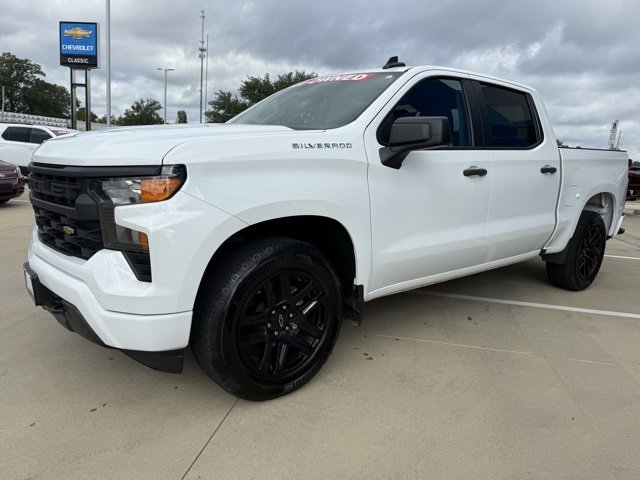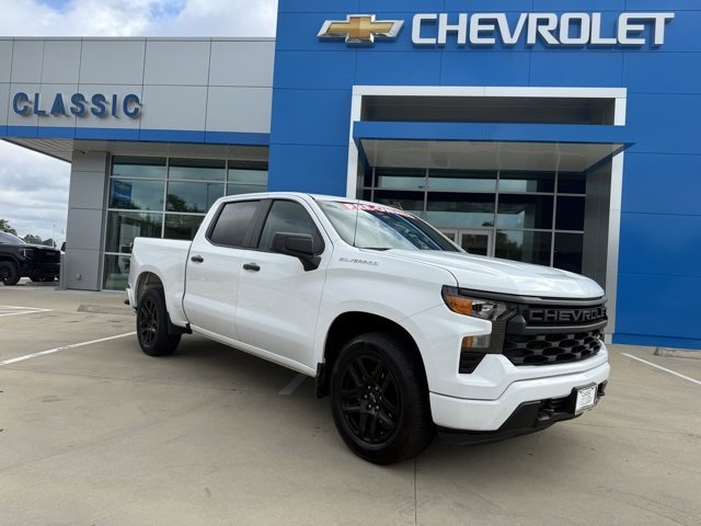 CARFAX One-Owner. Summit White 2022 Chevrolet Silverado 1500 Custom 2.7L Turbo RWD 8-Speed Automatic The 2022 Chevrolet Silverado 1500 comes with the following features; Custom Convenience Package (Electric Rear-Window Defogger, EZ Lift Power Lock & Release Tailgate, LED Cargo Area Lighting, and Remote Vehicle Starter System), Custom Value Package, High Capacity Suspension Package, Preferred Equipment Group 1CX (10-Way Power Driver Seat w/Lumbar, 120-Volt Bed Mounted Power Outlet, 120-Volt Instrument Panel Power Outlet, 3.5 Monochromatic Display Driver Info Center, Bluetooth® For Phone, Chevrolet Connected Access Capable, Color-Keyed Carpeting Floor Covering, Compass, Deep-Tinted Glass, Dual Rear USB Ports (Charge Only), Electrical Steering Column Lock, Electronic Cruise Control, Front Frame-Mounted Black Recovery Hooks, Front Rubberized Vinyl Floor Mats, HD Rear Vision Camera, Manual Tilt Wheel Steering Column, OnStar & Chevrolet Connected Services Capable, Power Front Windows w/Driver Express Up/Down, Power Front Windows w/Passenger Express Down, Power Rear Windows w/Express Down, Rear 60/40 Folding Bench Seat (Folds Up), Rear Rubberized-Vinyl Floor Mats, Remote Keyless Entry, SiriusXM Radio, Standard Tailgate, Theft Deterrent System (Unauthorized Entry), Wi-Fi Hot Spot Capable, and Wireless Phone Projection), Trailering Package (Hitch Guidance), 8-Speed Automatic, Black Cloth, 3.42 Rear Axle Ratio, 4-Wheel Disc Brakes, 40/20/40 Front Split-Bench Seat, 6 Speakers, 6-Speaker Audio System, ABS brakes, Air Conditioning, Alloy wheels, AM/FM radio: SiriusXM, Apple CarPlay/Android Auto, Auto High-beam Headlights, Auto-Locking Rear Differential, Automatic Emergency Braking, Brake assist, Bumpers: body-color, Cloth Seat Trim, Delay-off headlights, Driver door bin, Driver vanity mirror, Dual front impact airbags, Dual front side impact airbags, Electronic Stability Control, Following Distance Indicator, Forward Collision Alert, Front anti-roll bar, Front Center Armrest w/Storage, Front License Plate Kit, Front Pedestrian Braking, Front reading lights, Front wheel independent suspension, Fully automatic headlights, Heated door mirrors, Illuminated entry, IntelliBeam Automatic High Beam On/Off, Lane Keep Assist w/Lane Departure Warning, Low tire pressure warning, Not Equipped w/Rear USB Ports, Not Equipped w/Steering Column Lock, Occupant sensing airbag, Outside temperature display, Overhead airbag, Overhead console, Panic alarm, Passenger door bin, Passenger vanity mirror, Power door mirrors, Power driver seat, Power steering, Power windows, Premium audio system: Chevrolet Infotainment 3, Radio data system, Radio: Chevrolet Infotainment 3 System, Rear reading lights, Rear step bumper, Rear window defroster, Remote keyless entry, Security system, Speed control, Speed-sensing steering, Split folding rear seat, Tachometer, Tilt steering wheel, Traction control, Trip computer, Variably intermittent wipers, Voltmeter, Wheels: 20 x 9 Bright Silver Painted Aluminum, and Wheels: 20 x 9 High Gloss Black Painted Alum. One owner Carfax, Back up camera, Bluetooth, 8-Speed Automatic, Black Cloth.
