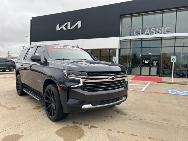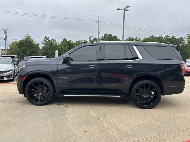 The 2022 Chevrolet Tahoe comes with the following features; License Plate Front Mounting Package, Preferred Equipment Group 1LT (1st & 2nd Row Color-Keyed Carpeted Floor Mats, Auto-Dimming Inside Rear-View Mirror, Automatic Stop/Start, Bose 9-Speaker Stereo Audio System Feature, Bright Front & Rear Door Sill Plates, Color-Keyed Carpeting Floor Covering, Driver & Front Outboard Passenger Airbags, Enhanced Driver Information Center, Floor Console w/Storage Area, Hands-Free Rear Power Programmable Liftgate, Infotainment Display, Leather-Wrapped Steering Wheel, LED Daytime Running Lamps, Memory Settings for Driver, Remote Start, SiriusXM Radio w/360L, Start/Stop System Disable Button, Universal Home Remote, and Wireless Charging), Black Leather, 10-Way Power Driver & Passenger Seat Adjusters, 2nd Row Manual Bucket Seats, 3.23 Rear Axle Ratio, 3rd row seats: split-bench, 4-Wheel Disc Brakes, 9 Speakers, ABS brakes, Air Conditioning, Alloy wheels, AM/FM radio: SiriusXM with 360L, Apple CarPlay/Android Auto, Auto High-beam Headlights, Auto-dimming Rear-View mirror, Automatic temperature control, Brake assist, Bumpers: body-color, Compass, Delay-off headlights, Driver door bin, Driver vanity mirror, Dual front impact airbags, Dual front side impact airbags, Electronic Stability Control, Emergency communication system: OnStar and Chevrolet connected services capable, Four wheel independent suspension, Front anti-roll bar, Front Bucket Seats, Front Center Armrest, Front dual zone A/C, Front High-Back Reclining Bucket Seats, Front reading lights, Fully automatic headlights, Garage door transmitter, Heated door mirrors, Heated Driver & Front Passenger Seats, Heated front seats, Illuminated entry, Leather steering wheel, Leather-Appointed Seat Trim, Low tire pressure warning, Memory seat, Navigation System, Not Equipped w/Steering Column Lock, Occupant sensing airbag, Outside temperature display, Overhead airbag, Overhead console, Panic alarm, Passenger door bin, Passenger vanity mirror, Power door mirrors, Power driver seat, Power Liftgate, Power passenger seat, Power steering, Power windows, Premium audio system: Chevrolet Infotainment System 3, Premium Smooth Ride Suspension, Radio: Chevrolet Infotainment 3 Premium System, Rain sensing wipers, Rear air conditioning, Rear anti-roll bar, Rear reading lights, Rear seat center armrest, Rear window defroster, Rear window wiper, Remote keyless entry, Roof rack: rails only, Security system, Set of 4 Wheel Locks (LPO), Speed control, Speed-sensing steering, Split folding rear seat, Spoiler, Steering wheel mounted audio controls, Tachometer, Telescoping steering wheel, Tilt steering wheel, Traction control, Trip computer, Variably intermittent wipers, Voltmeter, and Wheels: 18" x 8.5" Bright Silver Painted Aluminum. Black Leather.