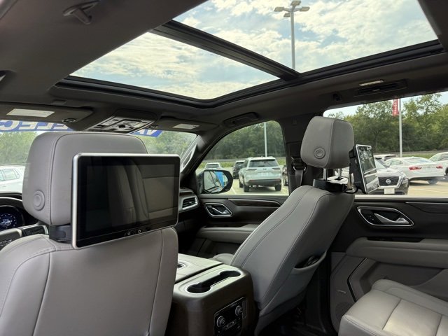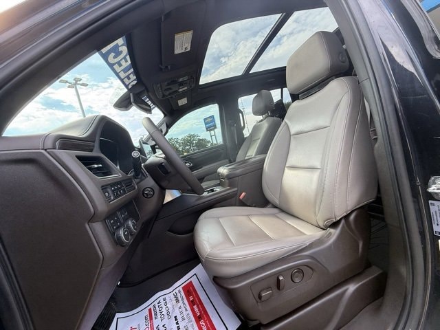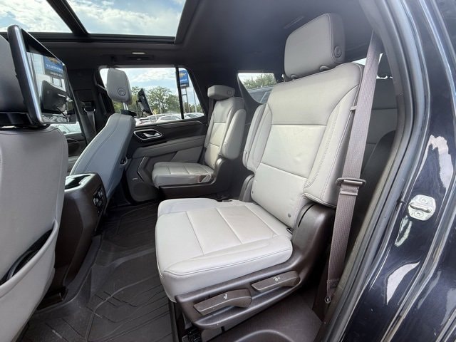 CARFAX One-Owner. Clean CARFAX. Dark Ash Metallic 2022 Chevrolet Tahoe Z71 EcoTec3 5.3L V8 4WD 10-Speed Automatic with Overdrive The 2022 Chevrolet Tahoe comes with the following features; Driver Alert Package (Lane Change Alert w/Side Blind Zone Alert and Rear Cross Traffic Alert), License Plate Front Mounting Package, Luxury Package (2nd Row Pwr Release 60/40 Split-Folding Bench Seat, 3rd Row 60/40 Power-Folding Split-Bench Seat, HD Surround Vision, Heated 2nd Row Outboard Seats, Heated Steering Wheel, Memory Settings, Outside Heated Power-Adjustable Mirrors, Power Tilt & Telescopic Steering Column, and Rear Pedestrian Alert), Preferred Equipment Group 2Z7 (1st & 2nd Row Color-Keyed Carpeted Floor Mats, 2-Speed Active Electronic AutoTrac Transfer Case, Auto-Dimming Inside Rear-View Mirror, Automatic Stop/Start, Black Tubular Assist Steps, Bose 9-Speaker Stereo Audio System Feature, Bright Front & Rear Door Sill Plates, Color-Keyed Carpeting Floor Covering, Driver & Front Outboard Passenger Airbags, Enhanced Driver Information Center, Floor Console w/Storage Area, Front High-Approach Angle Fascia, Hands-Free Rear Power Programmable Liftgate, Hill Descent Control, Infotainment Display, Leather-Wrapped Steering Wheel, LED Daytime Running Lamps, Memory Settings for Driver, Red Horizontal-Mounted Recovery Hooks, Remote Start, SiriusXM Radio w/360L, Start/Stop System Disable Button, Universal Home Remote, and Wireless Charging), 4WD, Gideon/Very Dark Atmosphere Leather, 10-Way Power Driver & Passenger Seat Adjusters, 3.23 Rear Axle Ratio, 3rd row seats: split-bench, 4-Wheel Disc Brakes, 9 Speakers, ABS brakes, Air Conditioning, Alloy wheels, AM/FM radio: SiriusXM with 360L, Apple CarPlay/Android Auto, Auto High-beam Headlights, Auto-dimming Rear-View mirror, Automatic temperature control, Brake assist, Bumpers: body-color, Compass, Delay-off headlights, Driver door bin, Driver vanity mirror, Dual front impact airbags, Dual front side impact airbags, Dual-Pane Power Panoramic Sunroof, Electronic Stability Control, Emergency communication system: OnStar and Chevrolet connected services capable, Four wheel independent suspension, Front anti-roll bar, Front Bucket Seats, Front Center Armrest, Front dual zone A/C, Front High-Back Reclining Bucket Seats, Front reading lights, Fully automatic headlights, Garage door transmitter, Heated door mirrors, Heated Driver & Front Passenger Seats, Heated front seats, Illuminated entry, Leather steering wheel, Leather-Appointed Seat Trim, Low tire pressure warning, Memory seat, Navigation System, Not Equipped w/Front & Rear Park Assist, Not Equipped w/Steering Column Lock, Occupant sensing airbag, Outside temperature display, Overhead airbag, Overhead console, Panic alarm, Passenger door bin, Passenger vanity mirror, Power door mirrors, Power driver seat, Power Liftgate, Power passenger seat, Power Release 2nd Row Bucket Seats, Power steering, Power windows, Premium audio system: Chevrolet Infotainment System 3, Premium Smooth Ride Suspension, Radio: Chevrolet Infotainment 3 Premium System, Rain sensing wipers, Rear air conditioning, Rear anti-roll bar, Rear reading lights, Rear seat center armrest, Rear window defroster, Rear window wiper, Remote keyless entry, Roof rack: rails only, Security system, Speed control, Speed-sensing steering, Split folding rear seat, Spoiler, Steering wheel mounted audio controls, Tachometer, Telescoping steering wheel, Tilt steering wheel, Traction control, Trip computer, Variably intermittent wipers, Voltmeter, and Wheels: 20 x 9 Machined Aluminum. One owner Carfax, Carfax no accidents, Back up camera, Bluetooth, Second row buckets seats, Keyless entry, Remote start, 4WD, Gideon/Very Dark Atmosphere Leather.