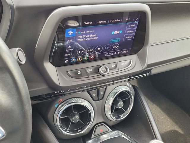 This 2023 Chevrolet Camaro comes equipped with Black Wheel Lug Nuts & Locks Package (LPO) (Black Lug Nuts (LPO) and Black Wheel Locks (LPO)), Preferred Equipment Group LT1, RS Package (Dark Tint LED Tail Lamps and Decklid-Mounted Lip Spoiler), Technology Package (Bose Premium 9-Speaker Audio System Feature, Radio: Chevrolet Infotainment 3 Plus System, 6-Speaker Audio System Feature, Bluetooth® For Phone, and SiriusXM w/360L), 2.77 Rear Axle Ratio, 4-Wheel Disc Brakes, 6 Speakers, 6-Way Power Front Passenger Seat Adjuster, 8-Way Power Driver Seat Adjuster, ABS brakes, Air Conditioning, Alloy wheels, AM/FM radio: SiriusXM, Apple CarPlay/Android Auto, Automatic temperature control, Brake assist, Bumpers: body-color, Cloth Seat Trim, Compass, Delay-off headlights, Driver door bin, Driver vanity mirror, Dual front impact airbags, Dual front side impact airbags, Dual Mode Exhaust, Electronic Stability Control, Exterior Parking Camera Rear, Four wheel independent suspension, Front anti-roll bar, Front Bucket Seats, Front Center Armrest, Front License Plate Bracket, Front reading lights, Front Sport Bucket Seats, Fully automatic headlights, Illuminated entry, Knee airbag, Leather Shift Knob, Low tire pressure warning, Occupant sensing airbag, Overhead airbag, Paddle-Shift Manual Controls, Panic alarm, Passenger door bin, Passenger vanity mirror, Power door mirrors, Power driver seat, Power passenger seat, Power steering, Power Sunroof, Power windows, Premium audio system: Chevrolet Infotainment System, Radio data system, Radio: Chevrolet Infotainment 3 System, Rear anti-roll bar, Rear window defroster, Red Seat Belt Color, Red-Painted Calipers, Remote keyless entry, Remote Vehicle Starter System, Security system, SiriusXM Radio, Speed control, Speed-sensing steering, Steering wheel mounted audio controls, Tachometer, Telescoping steering wheel, Tilt steering wheel, Traction control, Trip computer, Variably intermittent wipers, Voltmeter, Wheels: 20" Silver-Painted Aluminum, and Wheels: LT 20" 5-Split Spoke (LPO) CARFAX One-Owner. 16/26 City/Highway MPG Black Lug Nuts (LPO), Black Wheel Locks (LPO), Black Wheel Lug Nuts & Locks Package (LPO), Bose Premium 9-Speaker Audio System Feature, Dark Tint LED Tail Lamps, Decklid-Mounted Lip Spoiler, Preferred Equipment Group LT1, Radio: Chevrolet Infotainment 3 Plus System, RS Package, Technology Package.