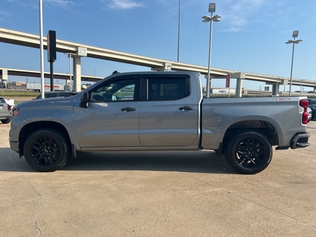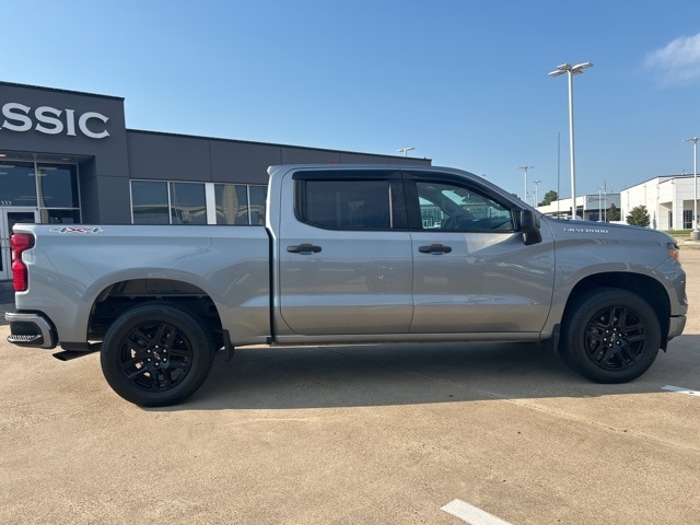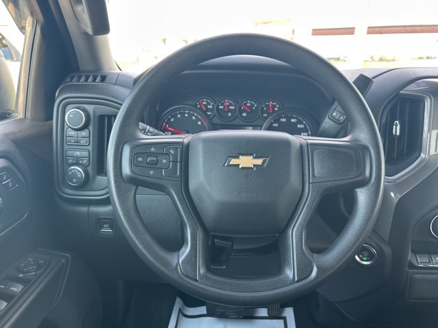This 2023 Chevrolet Silverado 1500 comes equipped with the following features Custom Convenience Package (Electric Rear-Window Defogger, EZ Lift Power Lock & Release Tailgate, LED Cargo Area Lighting, Remote Vehicle Starter System, and Theft Deterrent System (Unauthorized Entry)), Custom Value Package, High Capacity Suspension Package, Preferred Equipment Group 1CX (10-Way Power Driver Seat w/Lumbar, 120-Volt Bed Mounted Power Outlet, 120-Volt Instrument Panel Power Outlet, 3.5" Monochromatic Display Driver Info Center, Bluetooth® For Phone, Chevrolet Connected Access Capable, Color-Keyed Carpeting Floor Covering, Compass, Deep-Tinted Glass, Dual Rear USB Ports (Charge Only), Electrical Steering Column Lock, Electronic Cruise Control, Front Frame-Mounted Black Recovery Hooks, Front Rubberized Vinyl Floor Mats, HD Rear Vision Camera, Manual Tilt Wheel Steering Column, OnStar & Chevrolet Connected Services Capable, Power Front Windows w/Driver Express Up/Down, Power Front Windows w/Passenger Express Down, Power Rear Windows w/Express Down, Rear 60/40 Folding Bench Seat (Folds Up), Rear Rubberized-Vinyl Floor Mats, Remote Keyless Entry, SiriusXM Radio, Standard Tailgate, Wi-Fi Hot Spot Capable, and Wireless Phone Projection), Trailering Package (Hitch Guidance), 8-Speed Automatic, 4WD, Jet Black w/Cloth Seat Trim, 3.42 Rear Axle Ratio, 4-Wheel Disc Brakes, 40/20/40 Front Split-Bench Seat, 6 Speakers, 6-Speaker Audio System, ABS brakes, Air Conditioning, All-Weather Floor Liner (LPO), Alloy wheels, AM/FM radio: SiriusXM, Apple CarPlay/Android Auto, Auto High-beam Headlights, Automatic Emergency Braking, Brake assist, Bumpers: body-color, Cloth Seat Trim, Delay-off headlights, Driver door bin, Driver vanity mirror, Dual front impact airbags, Dual front side impact airbags, Electronic Stability Control, Following Distance Indicator, Forward Collision Alert, Front anti-roll bar, Front Center Armrest w/Storage, Front License Plate Kit, Front Pedestrian Braking, Front reading lights, Front wheel independent suspension, Fully automatic headlights, Heated door mirrors, Illuminated entry, IntelliBeam Automatic High Beam On/Off, Lane Keep Assist w/Lane Departure Warning, Low tire pressure warning, Not Equipped w/Rear USB Ports, Not Equipped w/Steering Column Lock, Occupant sensing airbag, Outside temperature display, Overhead airbag, Overhead console, Panic alarm, Passenger door bin, Passenger vanity mirror, Power door mirrors, Power driver seat, Power steering, Power windows, Premium audio system: Chevrolet Infotainment 3, Radio data system, Radio: Chevrolet Infotainment 3 System, Rear reading lights, Rear step bumper, Rear window defroster, Remote keyless entry, Security system, Speed control, Speed-sensing steering, Split folding rear seat, Tachometer, Tilt steering wheel, Traction control, Trip computer, Variably intermittent wipers, Voltmeter, Wheels: 20" x 9" Bright Silver Painted Aluminum, and Wheels: 20" x 9" High Gloss Black Painted Alum. 8-Speed Automatic, 4WD, Jet Black w/Cloth Seat Trim. Clean CARFAX. CARFAX One-Owner. 2023 Chevrolet Silverado 1500 Custom 4WD 2.7L Turbo