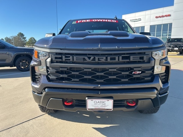 CARFAX One-Owner. Clean CARFAX. Classic CDJR in Texarkana is proud to offer this dependable 2023 Chevrolet Silverado 1500 in Dark Ash Metallic. This 2023 Chevrolet Silverado 1500 comes with the following features; Custom Convenience Package (Electric Rear-Window Defogger, EZ Lift Power Lock & Release Tailgate, LED Cargo Area Lighting, Remote Vehicle Starter System, and Theft Deterrent System (Unauthorized Entry)), Preferred Equipment Group 2CX (10-Way Power Driver Seat w/Lumbar, 120-Volt Bed Mounted Power Outlet, 120-Volt Instrument Panel Power Outlet, 3.5" Monochromatic Display Driver Info Center, Auto-Locking Rear Differential, Bluetooth® For Phone, Chevrolet Connected Access Capable, Color-Keyed Carpeting Floor Covering, Compass, Deep-Tinted Glass, Dual Rear USB Ports (Charge Only), Electrical Steering Column Lock, Electronic Cruise Control, Front Rubberized Vinyl Floor Mats, HD Rear Vision Camera, Manual Tilt Wheel Steering Column, OnStar & Chevrolet Connected Services Capable, Performance Red Recovery Hooks, Power Front Windows w/Driver Express Up/Down, Power Front Windows w/Passenger Express Down, Power Rear Windows w/Express Down, Rear 60/40 Folding Bench Seat (Folds Up), Rear Rubberized-Vinyl Floor Mats, Remote Keyless Entry, SiriusXM Radio, Standard Tailgate, Wi-Fi Hot Spot Capable, and Wireless Phone Projection), Suspension Package (Heavy-Duty Air Filter and Hill Descent Control), Trailering Package (Hitch Guidance), 10-Speed Automatic, 4WD, Black Cloth, 170 Amp Alternator, 220 Amp Alternator, 4-Wheel Disc Brakes, 40/20/40 Front Split-Bench Seat, 6 Speakers, 6-Speaker Audio System, ABS brakes, Air Conditioning, Alloy wheels, AM/FM radio: SiriusXM, Apple CarPlay/Android Auto, Auto High-beam Headlights, Automatic Emergency Braking, Auxiliary External Transmission Oil Cooler, Brake assist, Cloth Seat Trim, Delay-off headlights, Driver door bin, Driver vanity mirror, Dual Exhaust w/Polished Outlets, Dual front impact airbags, Dual front side impact airbags, Electronic Stability Control, External Engine Oil Cooler, Following Distance Indicator, Forward Collision Alert, Front anti-roll bar, Front Center Armrest w/Storage, Front License Plate Kit, Front Pedestrian Braking, Front reading lights, Front wheel independent suspension, Fully automatic headlights, Heated door mirrors, Illuminated entry, IntelliBeam Automatic High Beam On/Off, Lane Keep Assist w/Lane Departure Warning, Low tire pressure warning, Not Equipped w/Rear USB Ports, Not Equipped w/Steering Column Lock, Occupant sensing airbag, Outside temperature display, Overhead airbag, Overhead console, Panic alarm, Passenger door bin, Passenger vanity mirror, Power door mirrors, Power driver seat, Power steering, Power windows, Premium audio system: Chevrolet Infotainment 3, Radio data system, Radio: Chevrolet Infotainment 3 System, Rear reading lights, Rear step bumper, Rear window defroster, Remote keyless entry, Security system, Speed control, Speed-sensing steering, Split folding rear seat, Tachometer, Tilt steering wheel, Traction control, Trip computer, Variably intermittent wipers, Voltmeter, and Wheels: 18" x 8.5" Black Painted Aluminum. 10-Speed Automatic, 4WD, Black Cloth.