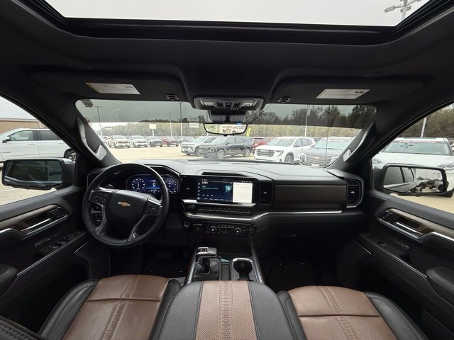 Clean CARFAX. 22/27 City/Highway MPG Harvest Bronze Metallic 2023 Chevrolet Silverado 1500 High Country 3.0L I6 4WD 10-Speed Automatic The 2023 Chevrolet Silverado 1500 comes with the following features; High Capacity Suspension Package, Preferred Equipment Group 3LZ (10-Way Power Driver Seat w/Lumbar, 10-Way Power Passenger Seat Adjuster w/Lumbar, 12.3 Multicolor Reconfigurable Digital Display, 120-Volt Bed Mounted Power Outlet, 120-Volt Instrument Panel Power Outlet, 2 USB Data Ports, 2nd Row Heated Outboard Seats, Auto-Dimming Inside Rear-View Mirror, Auto-Locking Rear Differential, Bed View Camera, Bluetooth® For Phone, Body-Color Painted Mirror Caps, Chevrolet Connected Access Capable, Chevytec Spray-On Black Bedliner, Chrome Assist Steps, Chrome Recovery Hooks, Color-Keyed Carpeting Floor Covering, Compass, Deep-Tinted Glass, Driver Memory, Dual Exhaust w/Polished Outlets, Dual Rear USB Ports (Charge Only), Electric Rear-Window Defogger, Electrical Steering Column Lock, Electronic Cruise Control, Floor Mounted Center Console, Front Carpeted Floor Mats, Front LED Fog Lamps, Front Rainsensing Wipers, HD Surround Vision, Heated Driver & Front Outboard Passenger Seats, Heated Steering Wheel, Hitch Guidance w/Hitch View, Integrated Trailer Brake Controller, Keyless Open & Start, LED Cargo Area Lighting, OnStar & Chevrolet Connected Services Capable, Outside Heated Power-Adjustable Mirrors, Perimeter Lighting, Power Front Passenger Windows w/Express Up/Down, Power Front Windows w/Driver Express Up/Down, Power Rear Windows w/Express Down, Power Sliding Rear Window w/Rear Defogger, Power Tailgate, Power Tilt & Telescoping Steering Column, Rear Carpeted Floor Mats, Rear Cross Traffic Alert-Braking, Rear Pedestrian Alert, Rear Wheelhouse Liners, Remote Vehicle Starter System, Safety Alert Seat, SiriusXM w/360L, Standard Tailgate, Steering Wheel Audio Controls, Theft Deterrent System (Unauthorized Entry), Trailer Camera Provisions, Trailer Side Blind Zone Alert, Trailering App, Ultrasonic Front & Rear Park Assist, Universal Home Remote, Ventilated Driver & Front Passenger Seats, Wi-Fi Hot Spot Capable, Wireless Charging, Wireless Phone Projection, and Wrapped Steering Wheel), Technology Package (15 Diagonal Multicolor Head-Up Display, Adaptive Cruise Control, and Rear Camera Mirror), Trailering Package (Hitch Guidance), Up-Level Rear Seat w/Storage Package, 10-Speed Automatic, 4WD, Jet Black/Umber Leather, 170 Amp Alternator, 220 Amp Alternator, 3.23 Rear Axle Ratio, 4-Wheel Disc Brakes, 7 Speakers, ABS brakes, Adaptive Ride Control Suspension, Air Conditioning, Alloy wheels, AM/FM radio: SiriusXM with 360L, Apple CarPlay/Android Auto, Auto High-beam Headlights, Auto-dimming door mirrors, Auto-dimming Rear-View mirror, Automatic Emergency Braking, Automatic temperature control, Bodyside moldings, Brake assist, Bumpers: body-color, Delay-off headlights, Driver door bin, Driver vanity mirror, Dual front impact airbags, Dual front side impact airbags, Electronic Stability Control, Electronic Transmission Range Selector Shifter, Engine Block Heater, Floor Liners w/Front Removable Carpet Inserts, Floor Liners w/Rear Removable Carpet Inserts, Following Distance Indicator, Forward Collision Alert, Front anti-roll bar, Front Bucket Seats, Front Center Armrest, Front dual zone A/C, Front fog lights, Front License Plate Kit, Front Pedestrian Braking, Front reading lights, Front wheel independent suspension, Fully automatic headlights, Garage door transmitter, Genuine wood console insert, Genuine wood dashboard insert, Genuine wood door panel insert, Heated door mirrors, Heated front seats, Heated rear seats, Heated steering wheel, Illuminated entry, IntelliBeam Automatic High Beam On/Off, Lane Keep Assist w/Lane Departure Warning, Low tire pressure warning, Memory seat, Not Equipped w/Steering Column Lock, Occupant sensing airbag, Outside temperature display, Overhead airbag, Overhead console