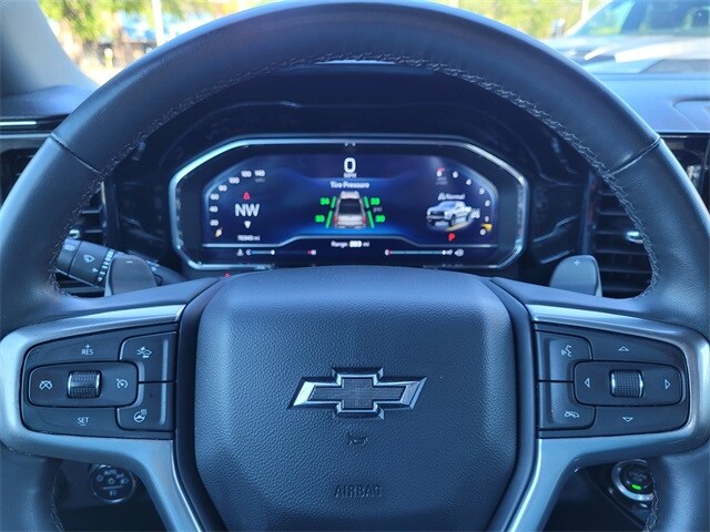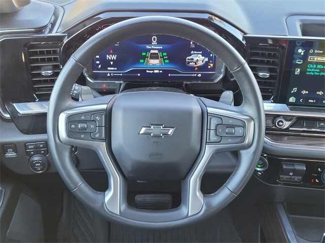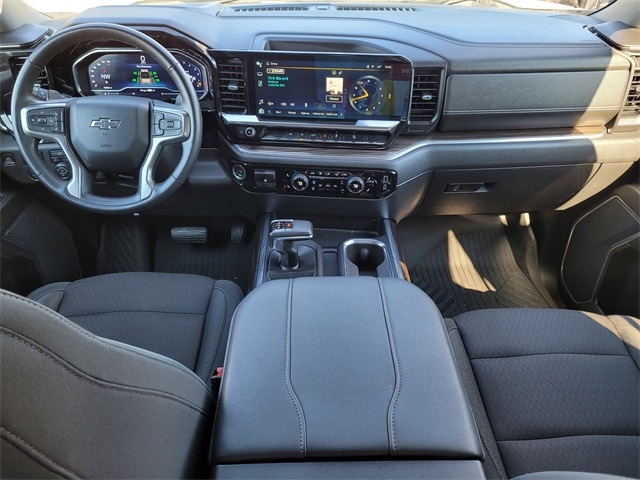 This 2023 Chevrolet Silverado 1500 comes equipped with Convenience Package (10-Way Power Driver Seat w/Lumbar, 120-Volt Instrument Panel Power Outlet, Dual Rear USB Ports (Charge Only), Dual-Zone Automatic Climate Control, Electric Rear-Window Defogger, Heated Driver & Front Outboard Passenger Seats, Heated Steering Wheel, Keyless Open & Start, Remote Vehicle Starter System, Theft Deterrent System (Unauthorized Entry), Wrapped Steering Wheel, and 120-Volt Bed Mounted Power Outlet), Preferred Equipment Group 2LT (12.3" Multicolor Reconfigurable Digital Display, 6-Speaker Audio System, All-Weather Floor Liner (LPO) (AAK), Auto-Locking Rear Differential, Bluetooth® For Phone, Color-Keyed Carpeting Floor Covering, Compass, Deep-Tinted Glass, Electrical Steering Column Lock, Electronic Cruise Control, EZ Lift Power Lock & Release Tailgate, Front LED Fog Lamps, HD Rear Vision Camera, Heated Power-Adjustable Outside Mirrors, High Gloss Black Mirror Caps, Inside Rear-View Mirror w/Tilt, LED Cargo Area Lighting, OnStar & Chevrolet Connected Services Capable, Performance Red Recovery Hooks, Power Front Windows w/Driver Express Up/Down, Power Front Windows w/Passenger Express Down, Power Rear Windows w/Express Down, Rear 60/40 Folding Bench Seat (Folds Up), SiriusXM w/360L, Standard Tailgate, Steering Wheel Audio Controls, Wireless Phone Projection, Chevrolet Connected Access Capable, and Wi-Fi Hot Spot Capable), Protection Package (Chevytec Spray-On Black Bedliner and Rear Wheelhouse Liners), Suspension Package (Heavy-Duty Air Filter and Hill Descent Control), Trailering Package (Hitch Guidance), 10-Speed Automatic, 4WD, Black Cloth, 170 Amp Alternator, 2 USB Data Ports, 220 Amp Alternator, 4-Wheel Disc Brakes, 40/20/40 Front Split-Bench Seat, 6 Speakers, 6" Rectangular Black Tubular Assist Steps (LPO), ABS brakes, Air Conditioning, Alloy wheels, AM/FM radio: SiriusXM with 360L, Apple CarPlay/Android Auto, Auto High-beam Headlights, Automatic Emergency Braking, Automatic temperature control, Auxiliary External Transmission Oil Cooler, Brake assist, Cloth Seat Trim, Delay-off headlights, Driver door bin, Driver vanity mirror, Dual Exhaust w/Polished Outlets, Dual front impact airbags, Dual front side impact airbags, Electronic Stability Control, Electronic Transmission Range Selector Shifter, External Engine Oil Cooler, Floor Mounted Center Console, Following Distance Indicator, Forward Collision Alert, Front anti-roll bar, Front Bucket Seats, Front Center Armrest w/Storage, Front dual zone A/C, Front fog lights, Front License Plate Kit, Front Pedestrian Braking, Front reading lights, Front wheel independent suspension, Fully automatic headlights, Heated door mirrors, Heated front seats, Heated steering wheel, Illuminated entry, Integrated Trailer Brake Controller, IntelliBeam Automatic High Beam On/Off, Lane Keep Assist w/Lane Departure Warning, Low tire pressure warning, Not Equipped w/Steering Column Lock, Occupant sensing airbag, Outside temperature display, Overhead airbag, Overhead console, Panic alarm, Passenger door bin, Passenger vanity mirror, Power door mirrors, Power driver seat, Power steering, Power windows, Premium audio system: Chevrolet Infotainment 3 Premium, Radio data system, Radio: Chevrolet Infotainment 3 Premium System, Rear reading lights, Rear step bumper, Rear window defroster, Remote keyless entry, Security system, Speed control, Speed-sensing steering, Split folding rear seat, Steering wheel mounted audio controls, Tachometer, Telescoping steering wheel, Tilt steering wheel, Traction control, Trip computer, Variably intermittent wipers, Voltmeter, Wheels: 18" x 8.5" Black Painted Aluminum, and Wireless Charging. CARFAX One-Owner. Clean CARFAX. One Owner Carfax, 10-Speed Automatic, 4WD, Black Cloth, 10-Way Power Driver Seat w/Lumbar, 12.3" Multicolor Reconfigurable Digital Display, 120-Volt Instrument Panel Power Outlet, 6-Speaker Audio System, All-Weather Floor Liner (LPO) (AAK), Auto-Locking Rear Differentia