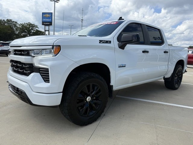 Clean CARFAX. 22/27 City/Highway MPG Summit White 2023 Chevrolet Silverado 1500 RST 3.0L I6 4WD 10-Speed Automatic The 2023 Chevrolet Silverado 1500 comes with the following features; Convenience Package (10-Way Power Driver Seat w/Lumbar, 120-Volt Bed Mounted Power Outlet, 120-Volt Instrument Panel Power Outlet, Dual Rear USB Ports (Charge Only), Dual-Zone Automatic Climate Control, Electric Rear-Window Defogger, Heated Driver & Front Outboard Passenger Seats, Heated Steering Wheel, Keyless Open & Start, Remote Vehicle Starter System, Theft Deterrent System (Unauthorized Entry), and Wrapped Steering Wheel), Dark Essentials Package (LPO) (Black Name Plates (LPO)), Preferred Equipment Group 1SP (12.3 Multicolor Reconfigurable Digital Display, 6-Speaker Audio System, All-Star Edition, Auto-Locking Rear Differential, Bluetooth® For Phone, Chevrolet Connected Access Capable, Color-Keyed Carpeting Floor Covering, Compass, Deep-Tinted Glass, Electrical Steering Column Lock, Electronic Cruise Control, EZ Lift Power Lock & Release Tailgate, Front Frame-Mounted Black Recovery Hooks, Front LED Fog Lamps, Front Rubberized Vinyl Floor Mats, HD Rear Vision Camera, Heated Power-Adjustable Outside Mirrors, High Gloss Black Mirror Caps, Inside Rear-View Mirror w/Tilt, LED Cargo Area Lighting, OnStar & Chevrolet Connected Services Capable, Power Front Windows w/Driver Express Up/Down, Power Front Windows w/Passenger Express Down, Power Rear Windows w/Express Down, Rear 60/40 Folding Bench Seat (Folds Up), Rear Rubberized-Vinyl Floor Mats, SiriusXM w/360L, Standard Tailgate, Steering Wheel Audio Controls, Wi-Fi Hot Spot Capable, and Wireless Phone Projection), Protection Package (Chevytec Spray-On Black Bedliner and Rear Wheelhouse Liners), Standard Suspension Package, Trailering Package (Hitch Guidance), Z71 Off-Road & Protection Package (All-Weather Floor Liner (LPO) (AAK)), Z71 Off-Road Package (Dual Exhaust w/Polished Outlets, Heavy-Duty Air Filter, Hill Descent Control, and Off-Road Suspension), 10-Speed Automatic, 4WD, Black Cloth, 220 Amp Alternator, 3.23 Rear Axle Ratio, 4-Wheel Disc Brakes, 40/20/40 Front Split-Bench Seat, 6 Speakers, ABS brakes, Air Conditioning, Alloy wheels, AM/FM radio: SiriusXM with 360L, Apple CarPlay/Android Auto, Auto High-beam Headlights, Automatic Emergency Braking, Automatic temperature control, Black Tailgate CHEVROLET Lettering (LPO), Brake assist, Bumpers: body-color, Cloth Seat Trim, Delay-off headlights, Driver door bin, Driver vanity mirror, Dual front impact airbags, Dual front side impact airbags, Electronic Stability Control, Engine Block Heater, Following Distance Indicator, Forward Collision Alert, Front anti-roll bar, Front Center Armrest w/Storage, Front dual zone A/C, Front fog lights, Front License Plate Kit, Front Pedestrian Braking, Front reading lights, Front wheel independent suspension, Fully automatic headlights, Heated door mirrors, Heated front seats, Heated steering wheel, Illuminated entry, Integrated Trailer Brake Controller, IntelliBeam Automatic High Beam On/Off, Lane Keep Assist w/Lane Departure Warning, Low tire pressure warning, Not Equipped w/Steering Column Lock, Occupant sensing airbag, Outside temperature display, Overhead airbag, Overhead console, Panic alarm, Passenger door bin, Passenger vanity mirror, Power door mirrors, Power driver seat, Power steering, Power windows, Premium audio system: Chevrolet Infotainment 3 Premium, Radio data system, Radio: Chevrolet Infotainment 3 Premium System, Rear reading lights, Rear step bumper, Rear window defroster, Remote keyless entry, Security system, Speed control, Speed-sensing steering, Split folding rear seat, Steering wheel mounted audio controls, Tachometer, Telescoping steering wheel, Texas Edition Badging, Tilt steering wheel, Traction control, Trip computer, Underseat Storage (LPO), Variably intermittent wipers, Voltmeter, Wheels: 18 x 8.5 Bright Silver Painted Aluminum, an
