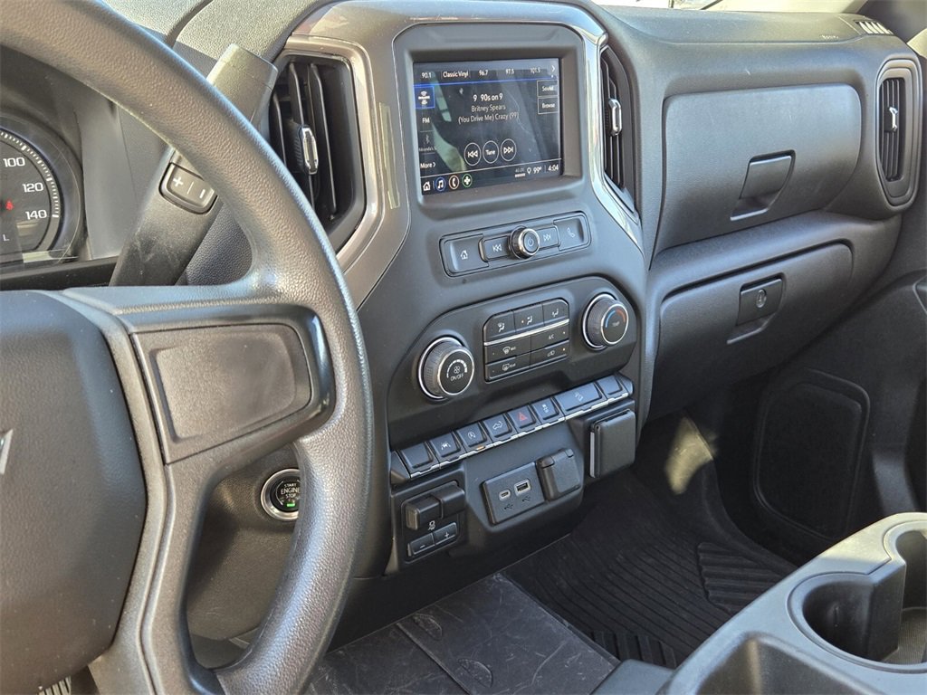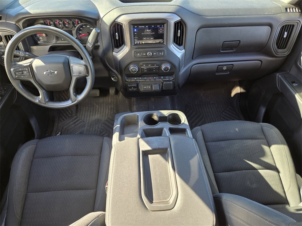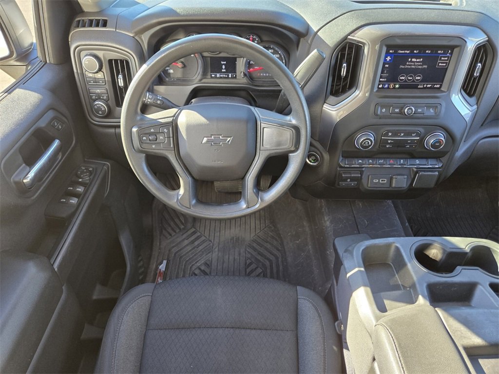 This 2023 Chevrolet Silverado 1500 comes equipped with, 10-Speed Automatic, 4WD, Black Cloth, 10-Way Power Driver Seat w/Lumbar, 120-Volt Bed Mounted Power Outlet, 120-Volt Instrument Panel Power Outlet, 170 Amp Alternator, 220 Amp Alternator, 3.5" Monochromatic Display Driver Info Center, 4-Wheel Disc Brakes, 40/20/40 Front Split-Bench Seat, 6 Speakers, 6-Speaker Audio System, ABS brakes, Air Conditioning, Alloy wheels, AM/FM radio: SiriusXM, Apple CarPlay/Android Auto, Auto High-beam Headlights, Auto-Locking Rear Differential, Automatic Emergency Braking, Auxiliary External Transmission Oil Cooler, Black Name Plates (LPO), Black Tailgate CHEVROLET Lettering (LPO), Bluetooth® For Phone, Brake assist, Chevrolet Connected Access Capable, Cloth Seat Trim, Color-Keyed Carpeting Floor Covering, Compass, Custom Convenience Package, Dark Essentials Package (LPO), Deep-Tinted Glass, Delay-off headlights, Driver door bin, Driver vanity mirror, Dual Exhaust w/Polished Outlets, Dual front impact airbags, Dual front side impact airbags, Dual Rear USB Ports (Charge Only), Electric Rear-Window Defogger, Electrical Steering Column Lock, Electronic Cruise Control, Electronic Stability Control, External Engine Oil Cooler, EZ Lift Power Lock & Release Tailgate, Following Distance Indicator, Forward Collision Alert, Front anti-roll bar, Front Center Armrest w/Storage, Front License Plate Kit, Front Pedestrian Braking, Front reading lights, Front Rubberized Vinyl Floor Mats, Front wheel independent suspension, Fully automatic headlights, HD Rear Vision Camera, Heated door mirrors, Heavy-Duty Air Filter, Hill Descent Control, Hitch Guidance, Illuminated entry, Integrated Trailer Brake Controller, IntelliBeam Automatic High Beam On/Off, Lane Keep Assist w/Lane Departure Warning, LED Cargo Area Lighting, Low tire pressure warning, Manual Tilt Wheel Steering Column, Not Equipped w/Rear USB Ports, Not Equipped w/Steering Column Lock, Occupant sensing airbag, OnStar & Chevrolet Connected Services Capable, Outside temperature display, Overhead airbag, Overhead console, Panic alarm, Passenger door bin, Passenger vanity mirror, Performance Red Recovery Hooks, Power door mirrors, Power driver seat, Power Front Windows w/Driver Express Up/Down, Power Front Windows w/Passenger Express Down, Power Rear Windows w/Express Down, Power steering, Power windows, Preferred Equipment Group 2CX, Premium audio system: Chevrolet Infotainment 3, Radio data system, Radio: Chevrolet Infotainment 3 System, Rear 60/40 Folding Bench Seat (Folds Up), Rear reading lights, Rear Rubberized-Vinyl Floor Mats, Rear step bumper, Rear window defroster, Remote Keyless Entry, Remote keyless entry, Remote Vehicle Starter System, Security system, SiriusXM Radio, Speed control, Speed-sensing steering, Split folding rear seat, Standard Tailgate, Suspension Package, Tachometer, Theft Deterrent System (Unauthorized Entry), Tilt steering wheel, Traction control, Trailering Package, Trip computer, Variably intermittent wipers, Voltmeter, Wheels: 18" x 8.5" Black Painted Aluminum, Wheels: 20" x 9" High Gloss Black Painted Alum, Wi-Fi Hot Spot Capable, Wireless Phone Projection, 10-Speed Automatic, 4WD, Black Cloth.